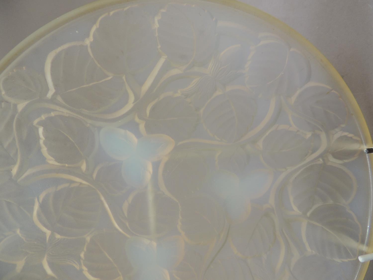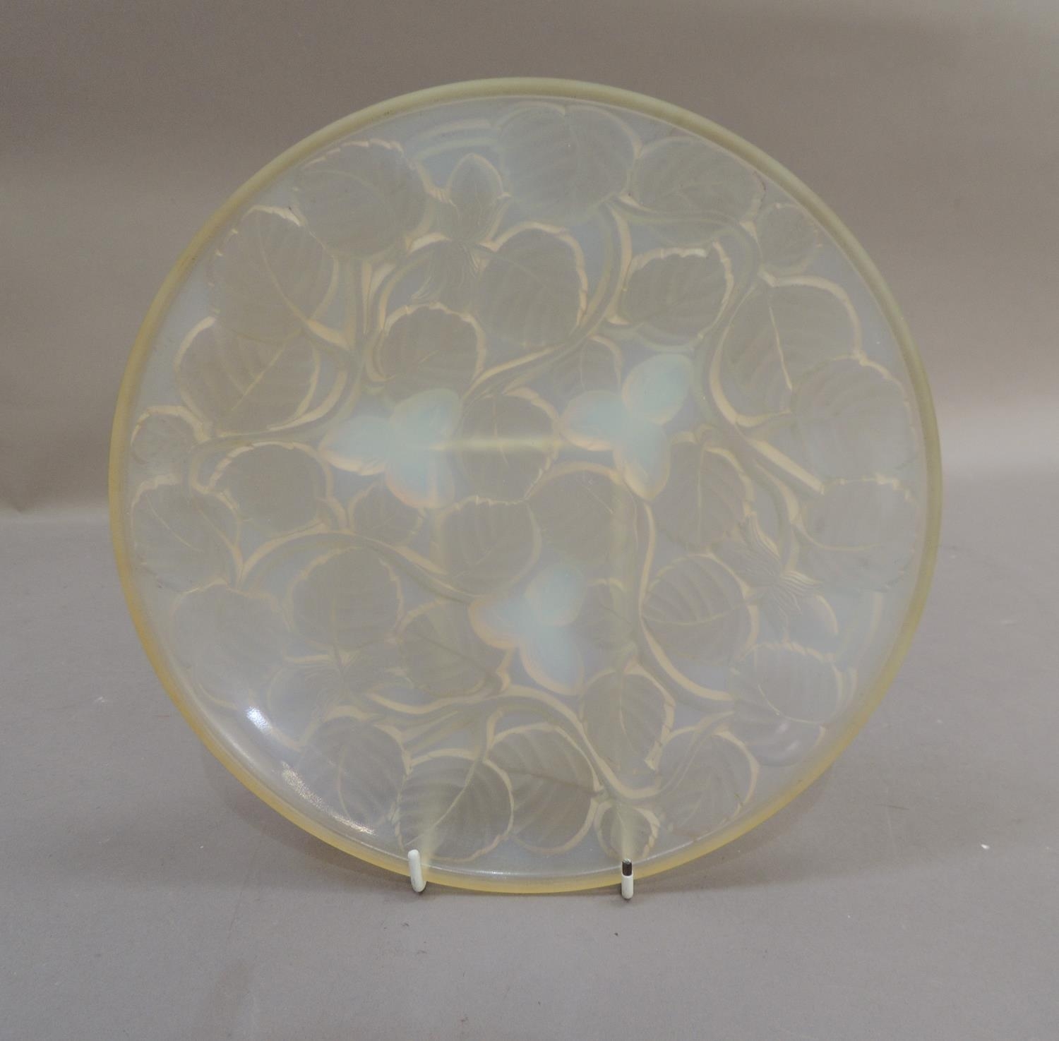 An Arxere opalescent glass circular bowl, the reverse moulded in relief with leaves and hazelnuts, 24cm diameter