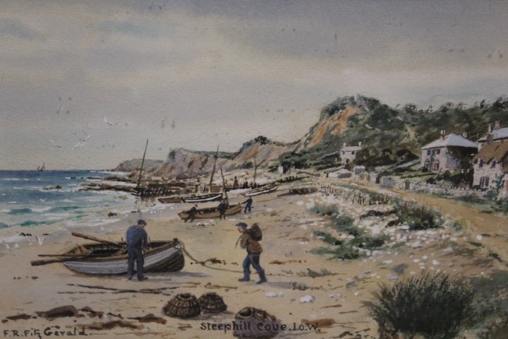 FREDERICK R FITZGERALD (1869-1944). Steeplehill Cove, I-O-W' and 'The Companion', signed lower left and dated 1906, watercolours, a pair, gilt framed and glazed, 17.5 x 27.5 cm (2)