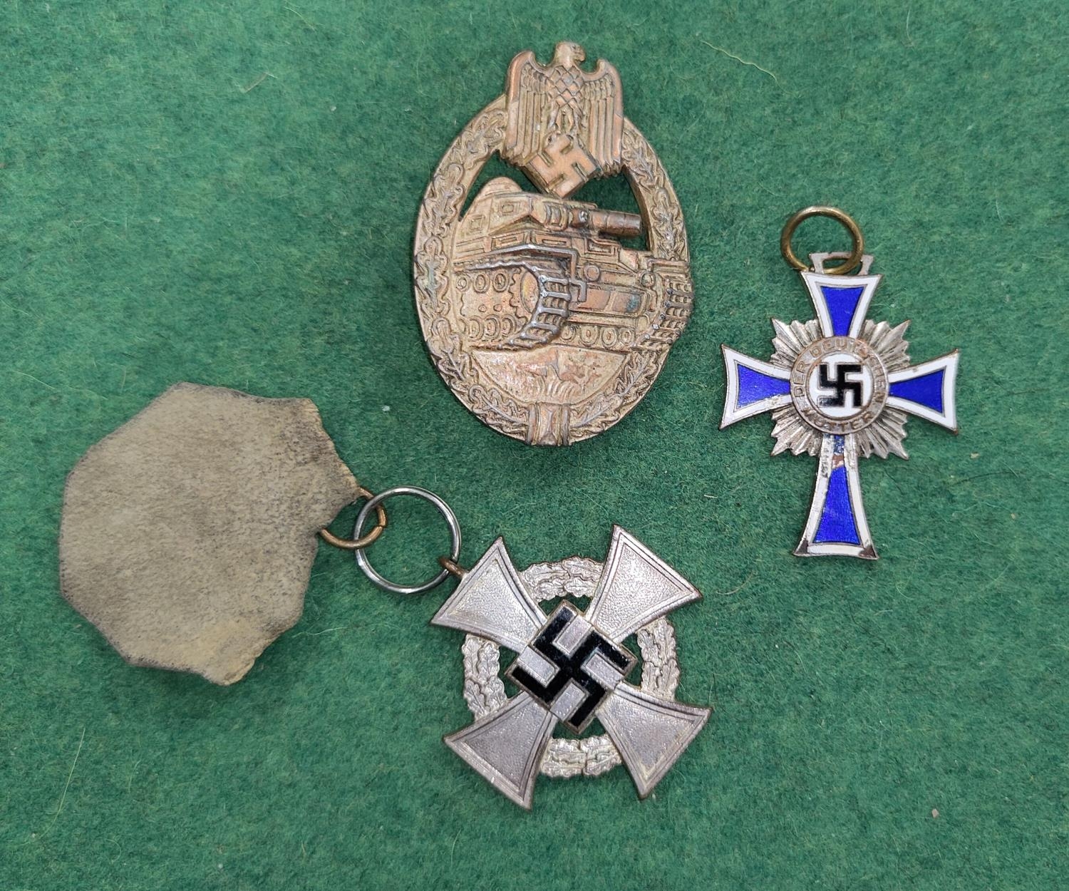 A German WWII period tank badge and 2 medals