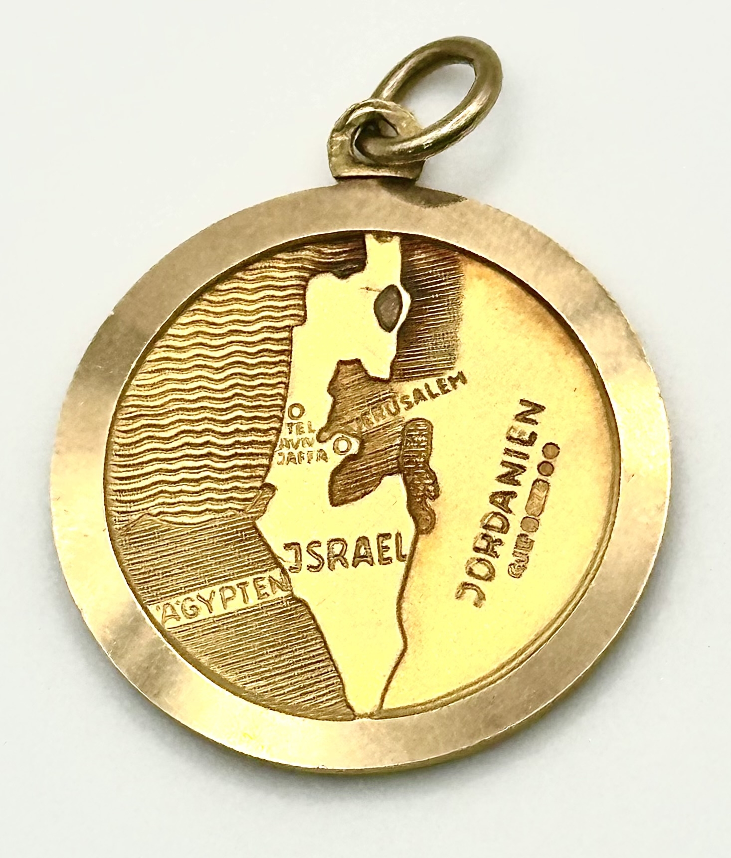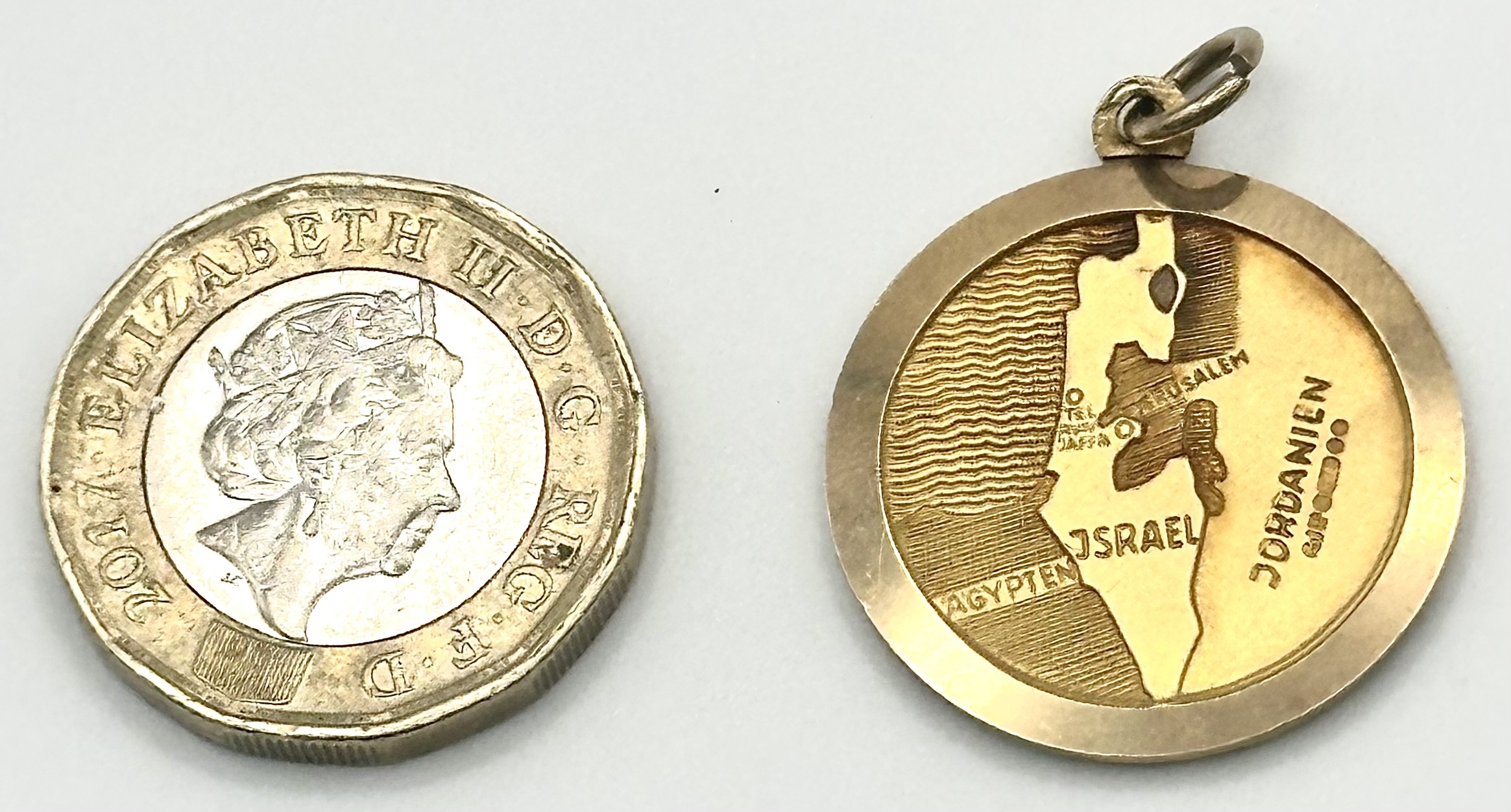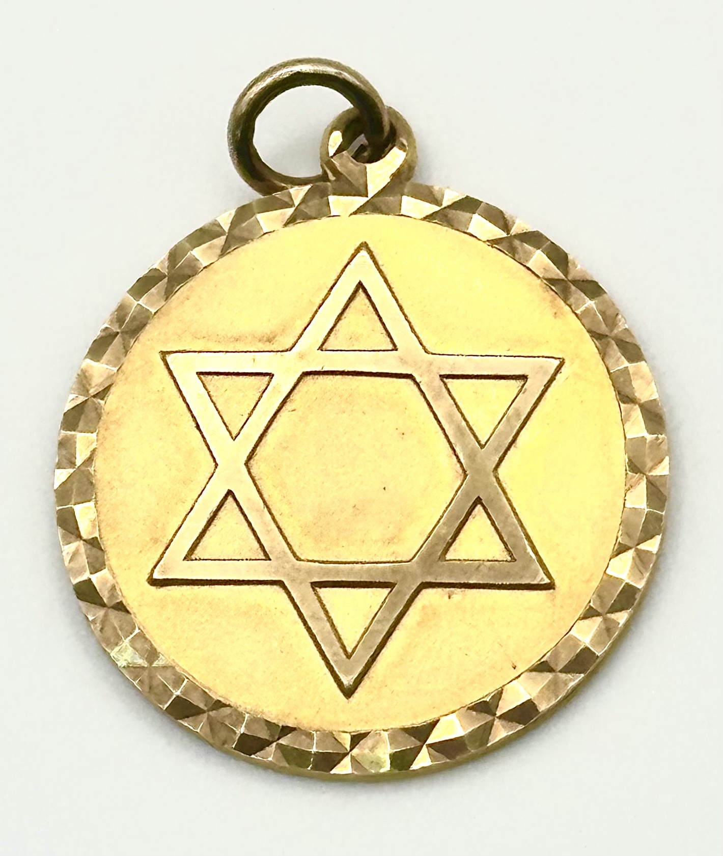 A 9K Yellow Gold Star of David Pendant with Map on Reverse. 22mm diameter. 7g.