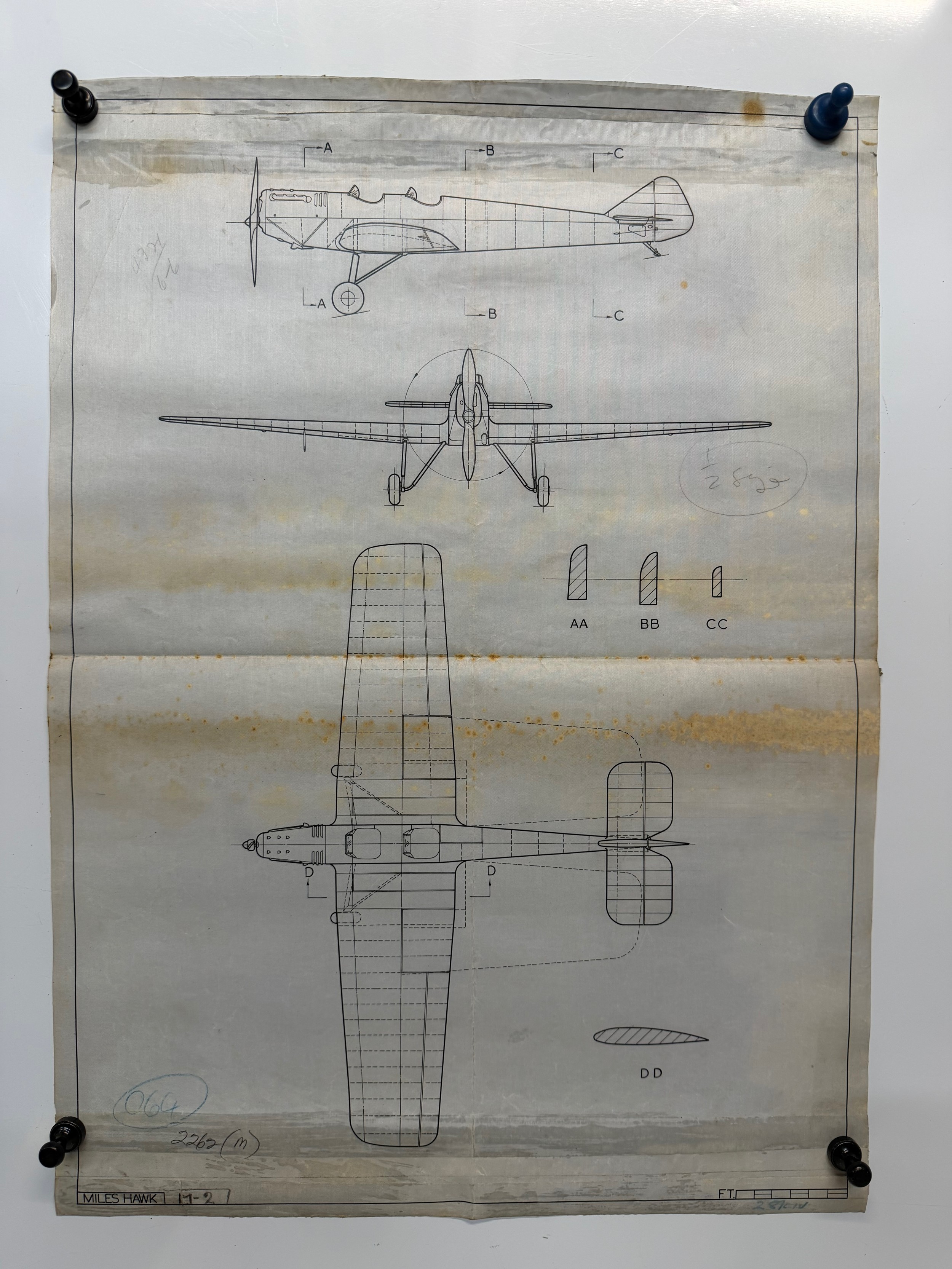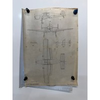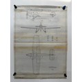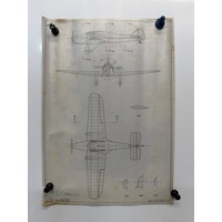 British aviation WWI planes, Vintage aircraft plans on linen of a Miles Hawk M-2, 27cm x 39 cm.