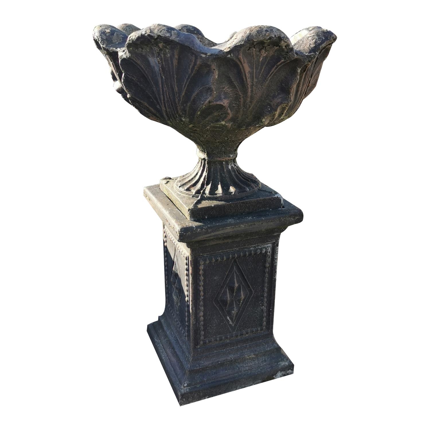 20th C. composition urn on pedestal {91 cm H x 56 cm Dia.}.