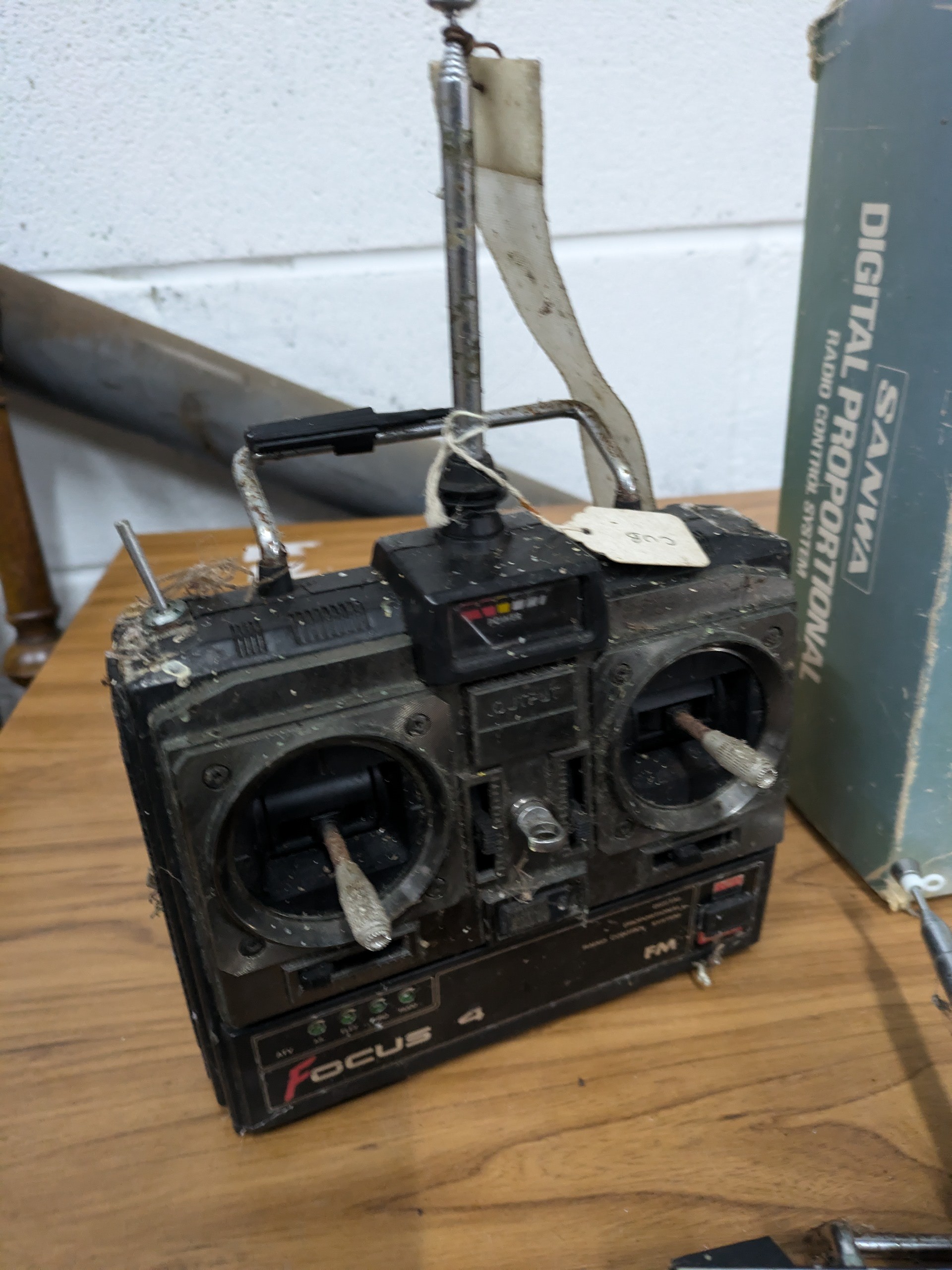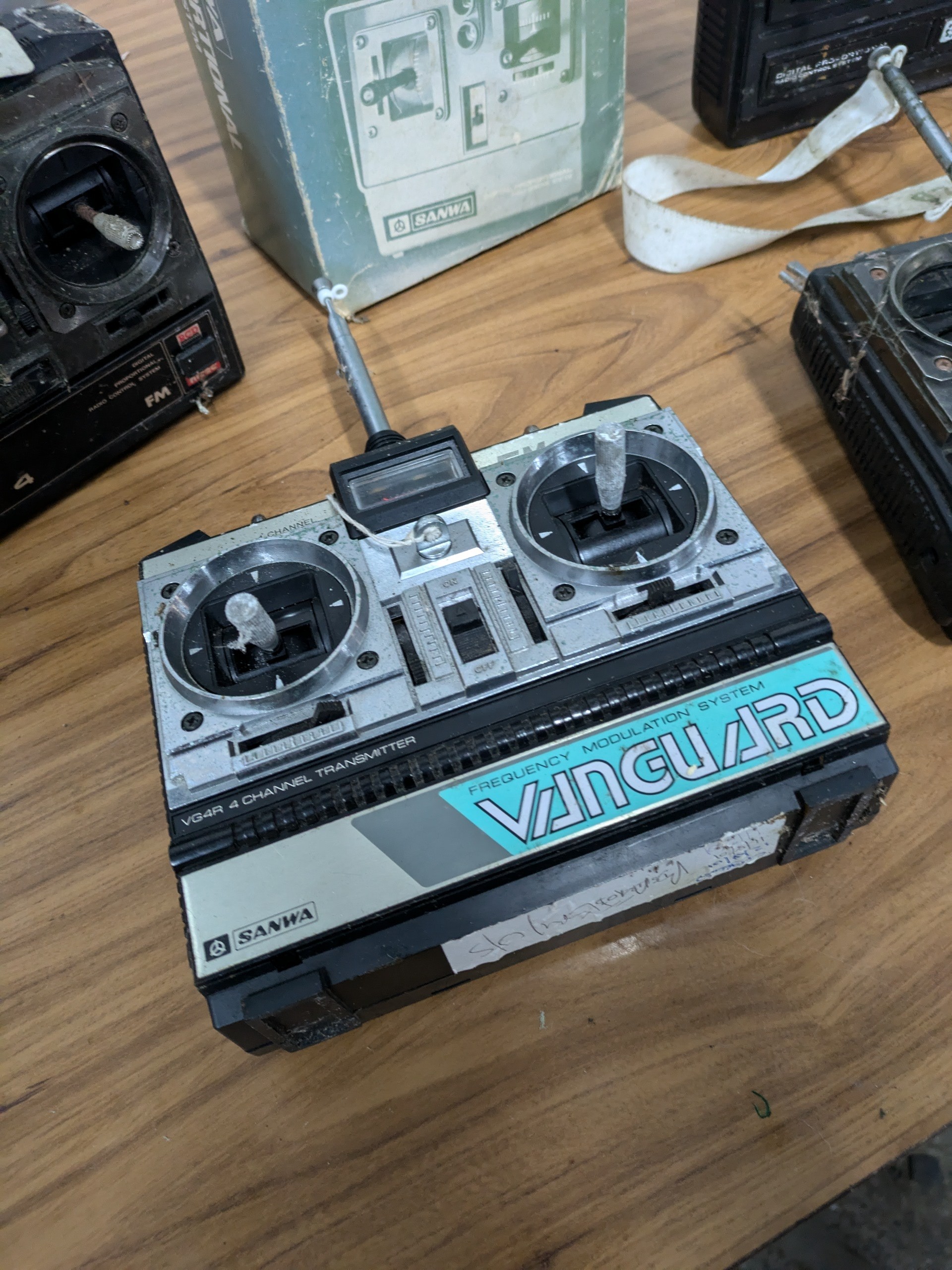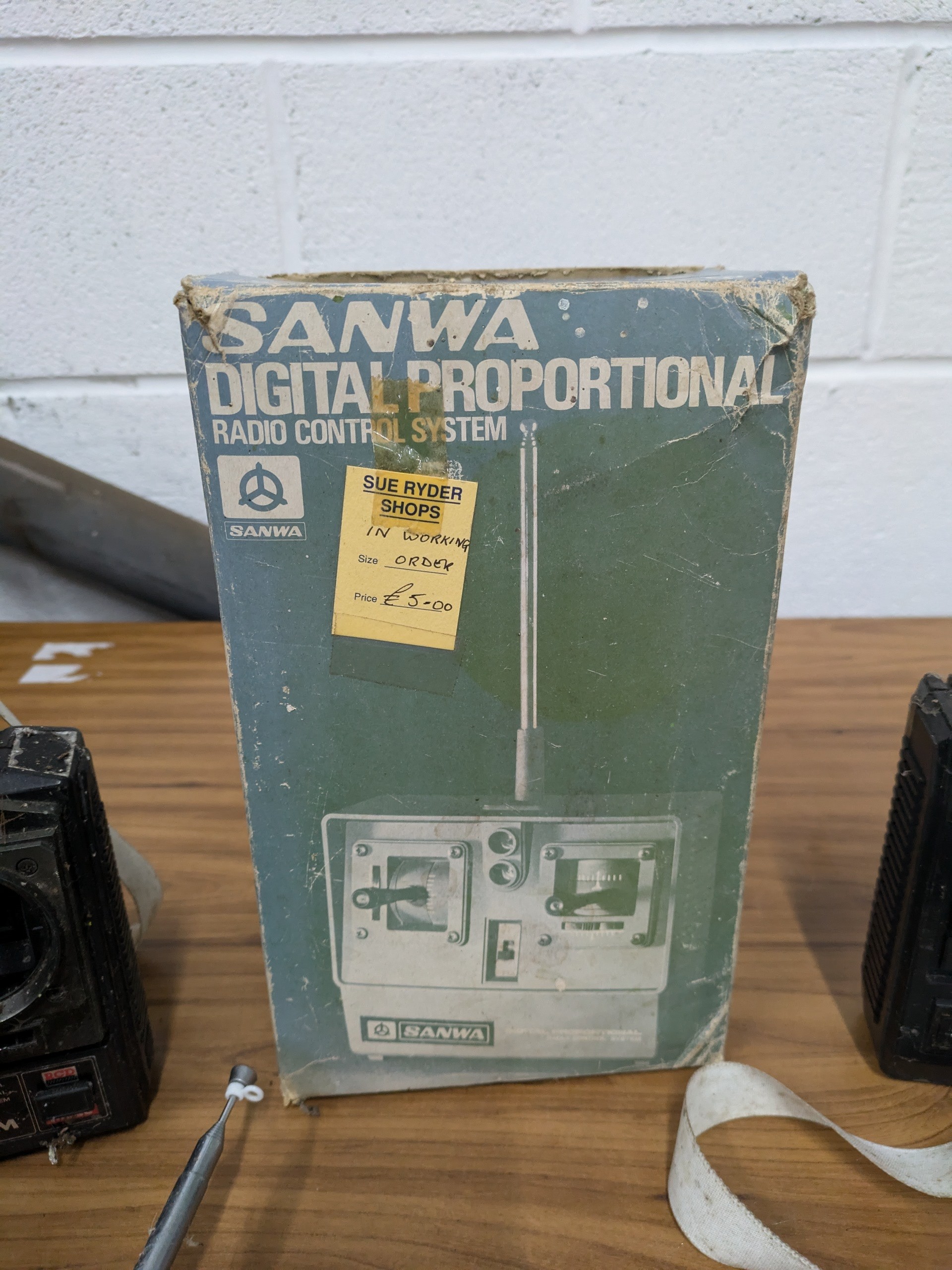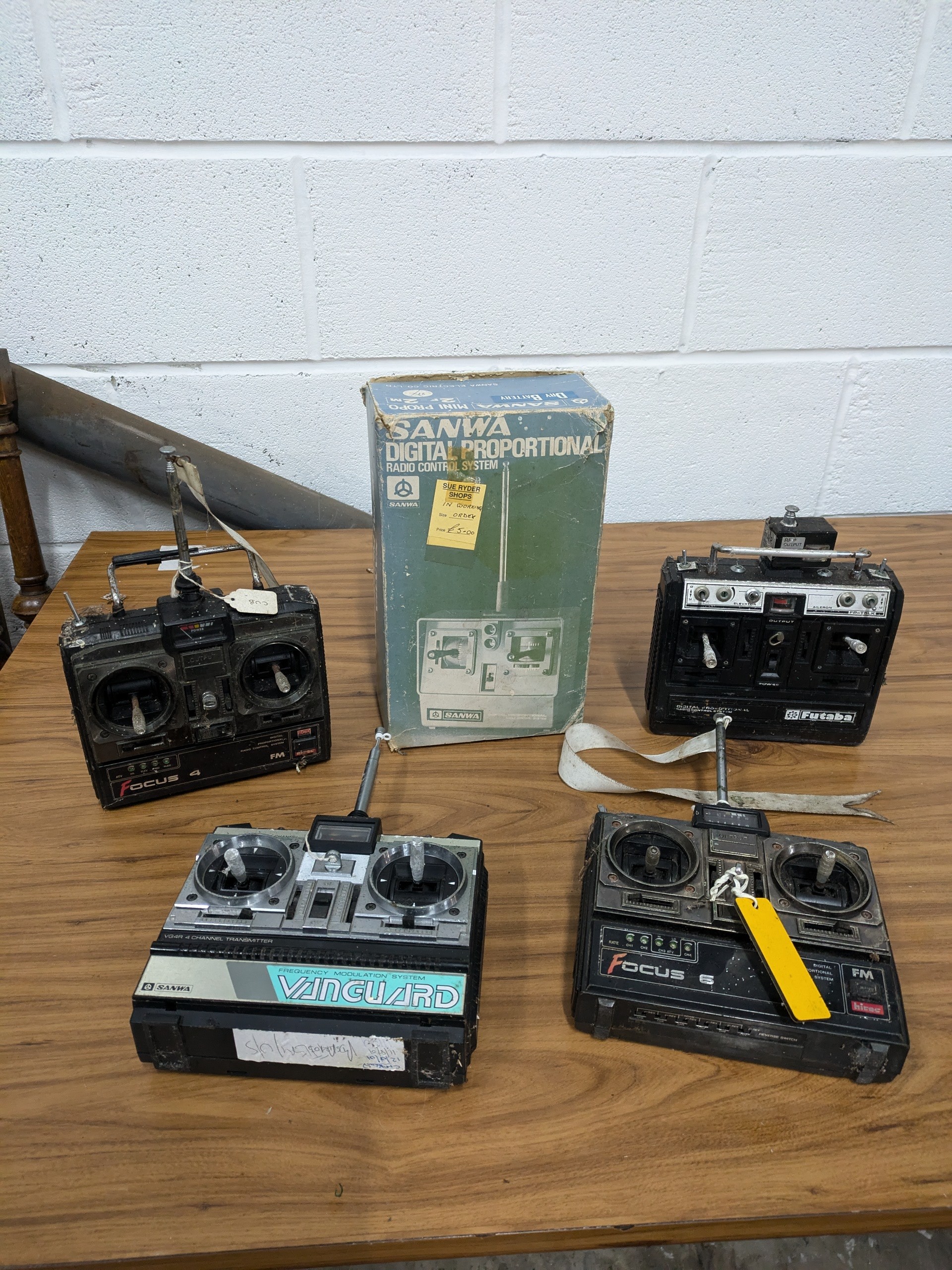 A Selection of 5 RC Handheld Remotes including a Boxed Sanwa Mini Propo