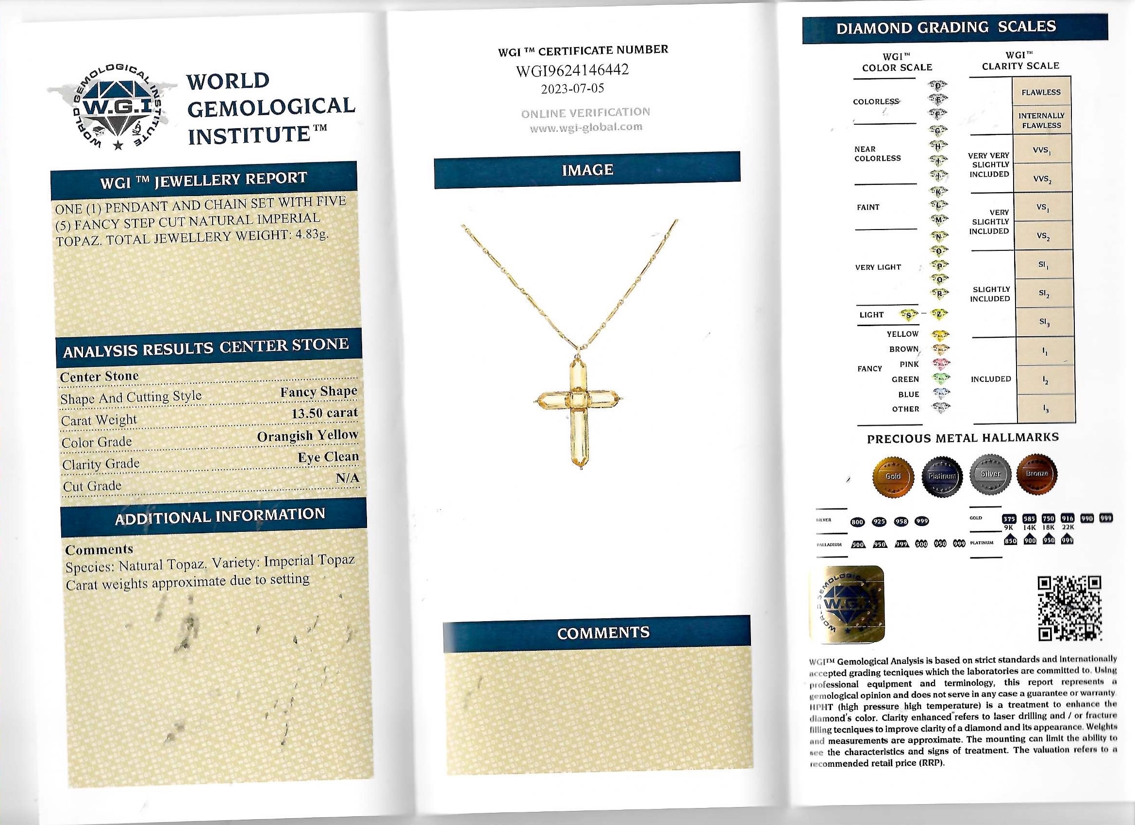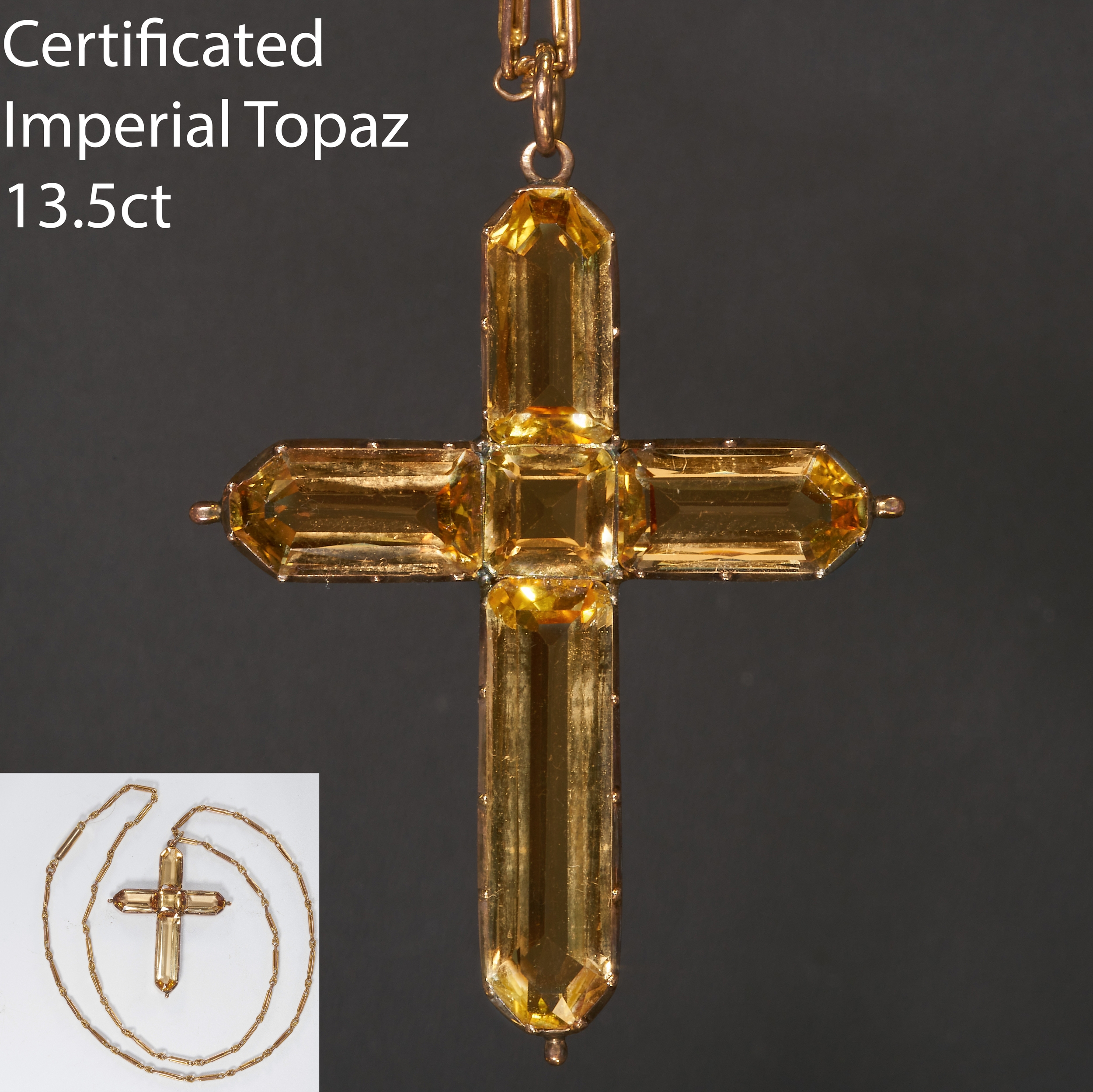 CERTIFICATED IMPERIAL TOPAZ CROSS PENDANT AND A CHAIN.