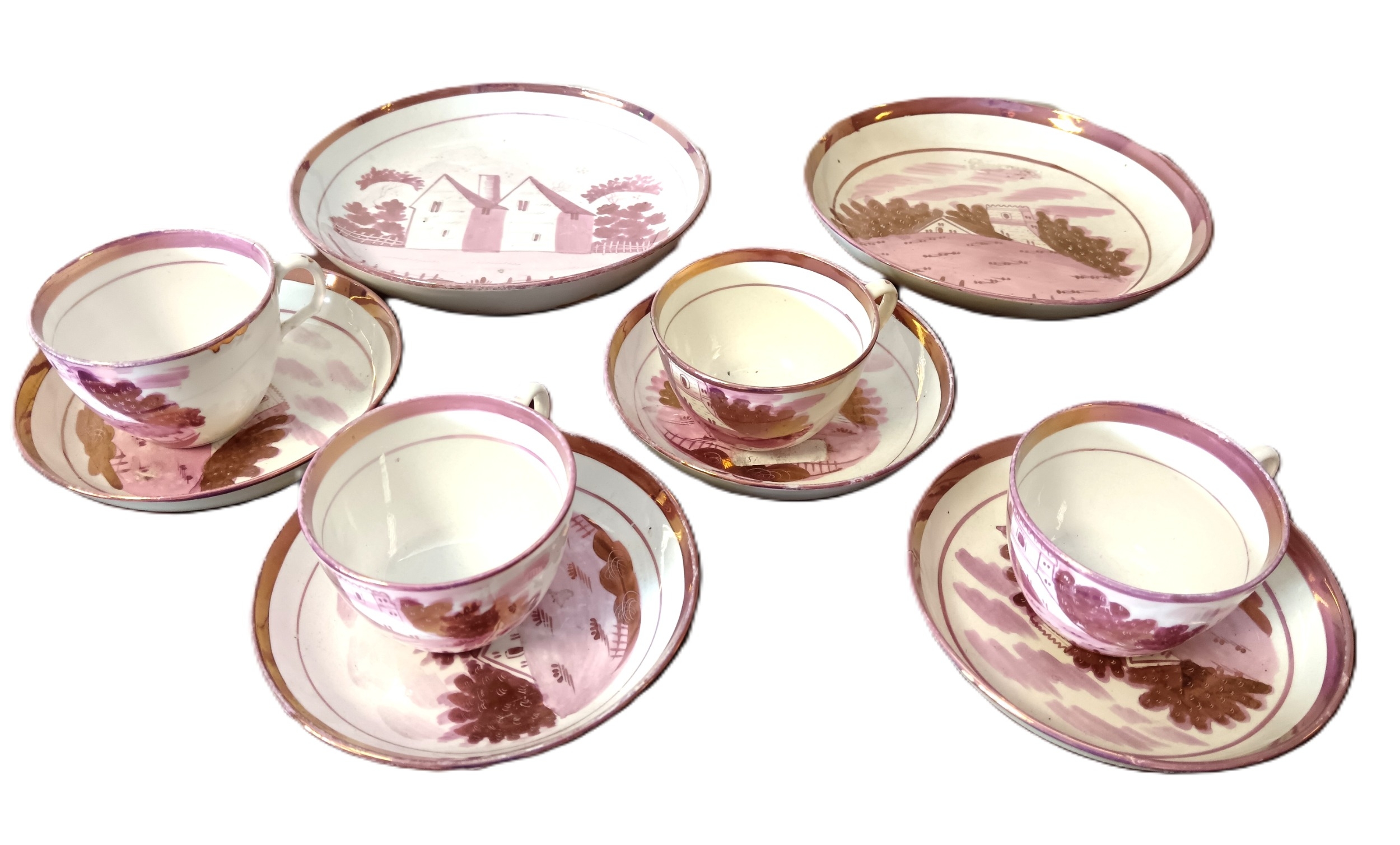 A collection of Sunderland luster cups saucers and bowls (a lot)