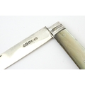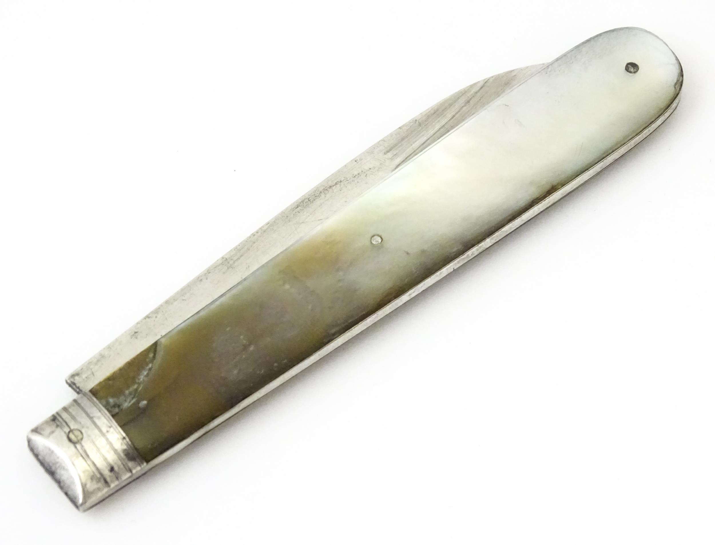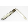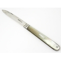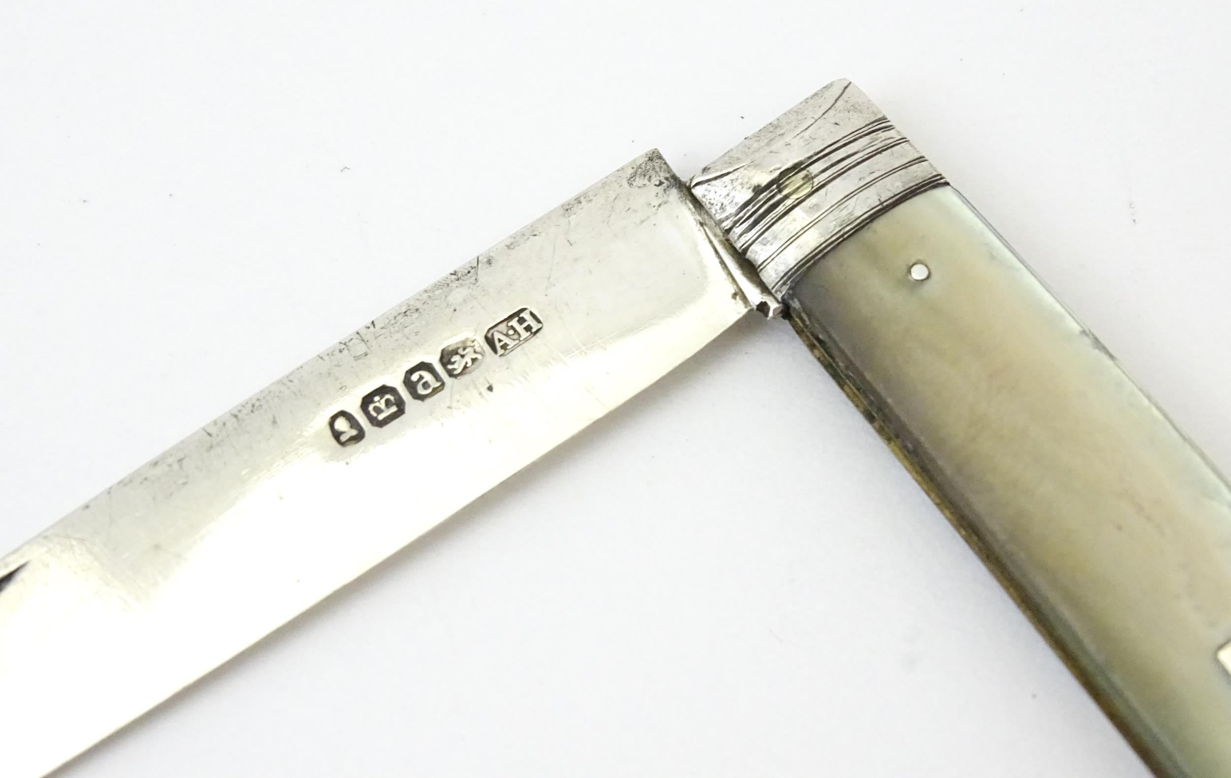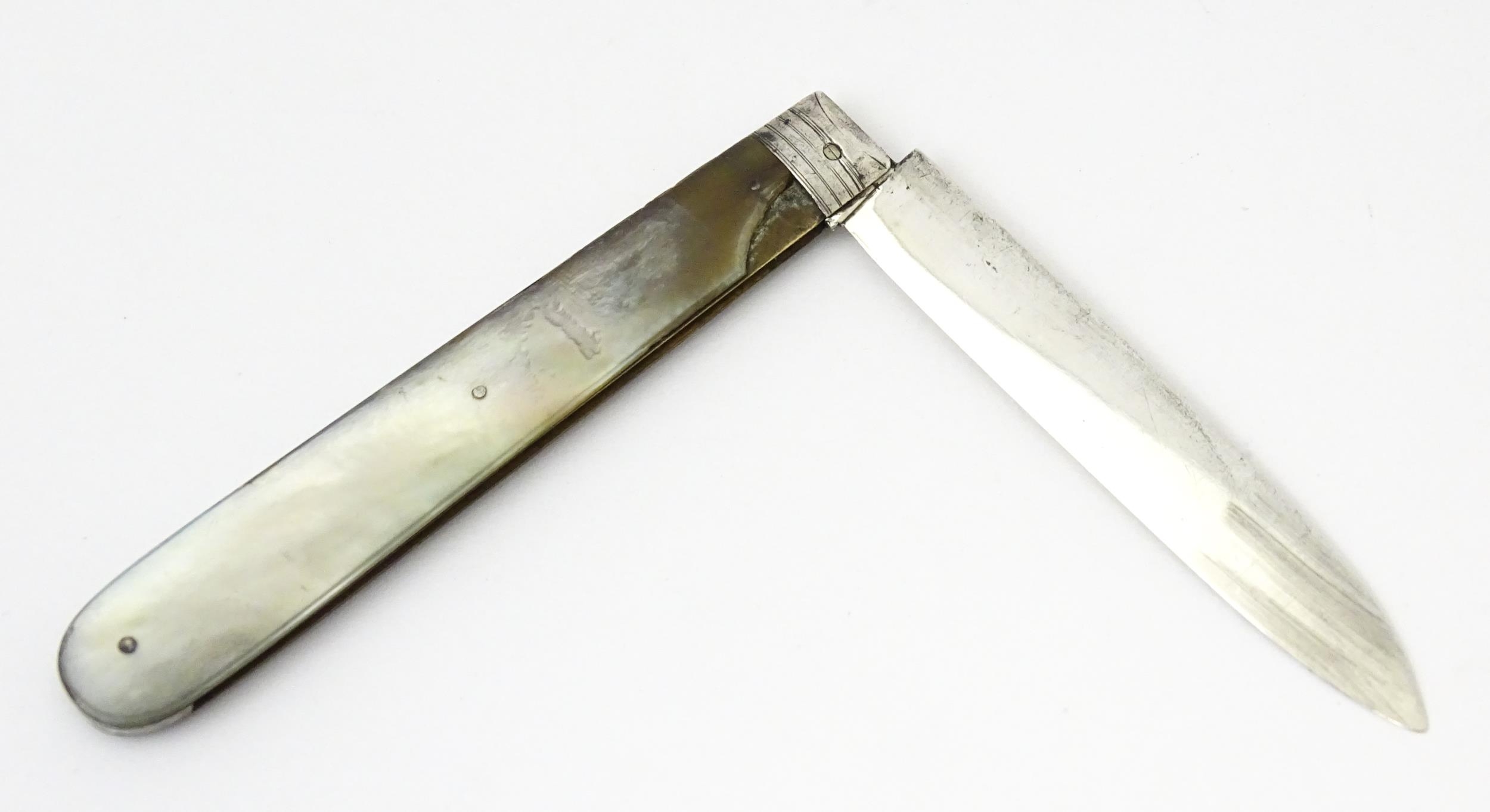 A George IV silver folding fruit knife with mother of pearl handle, hallmarked Sheffield 1824, maker Aaron Hadfield. Approx. 3 1/4" long (closed)