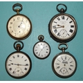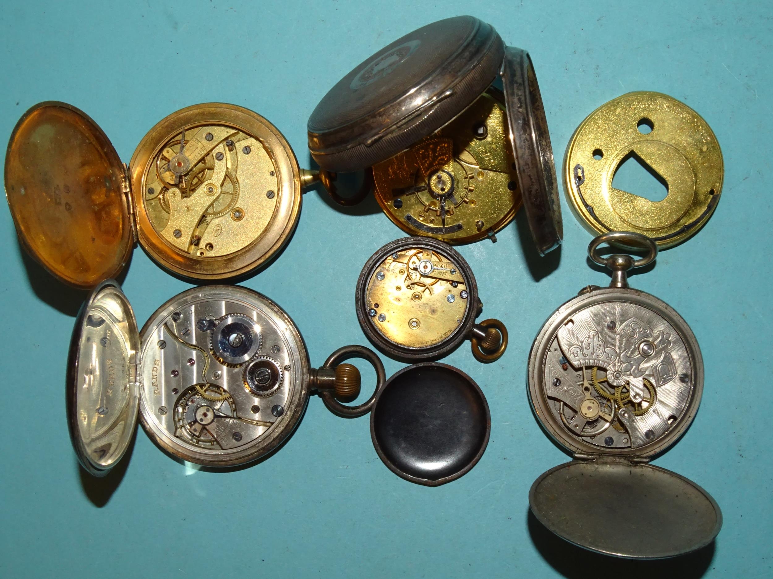 A silver-cased open-faced pocket watch by A Yewdall, Leeds, the lever movement numbered 715368, a silver-cased keyless pocket watch by Rands and three other pocket watches, (5).