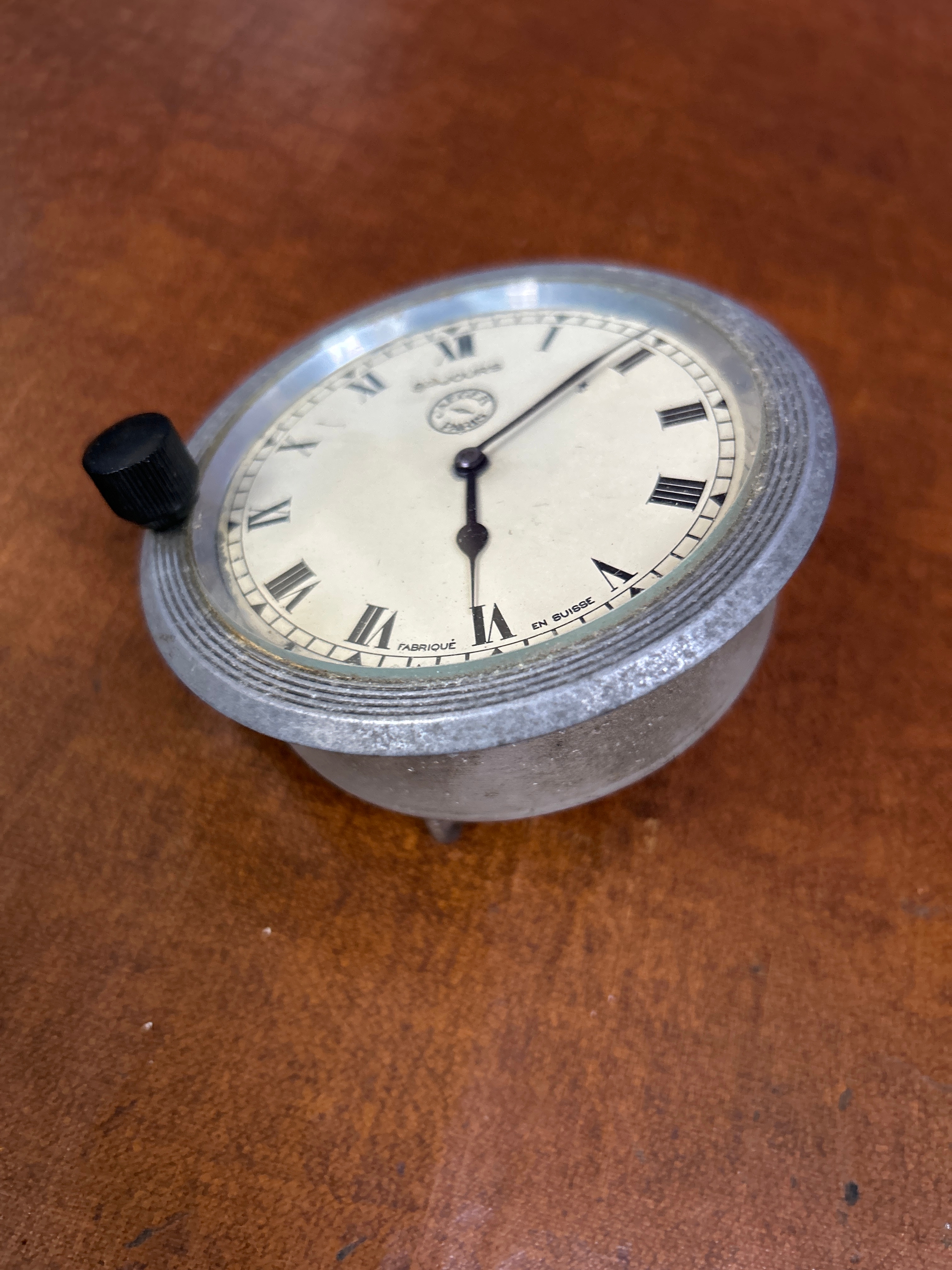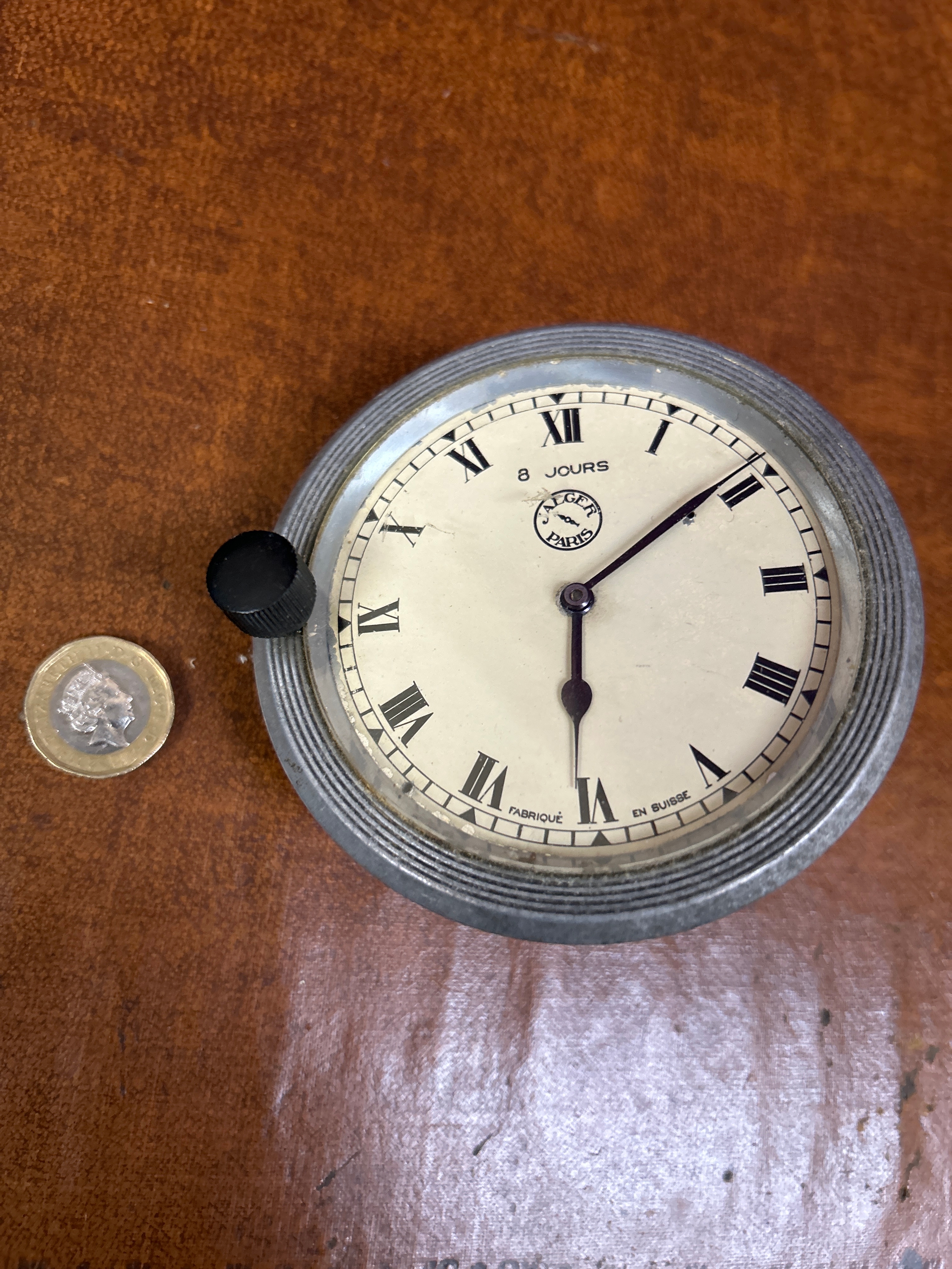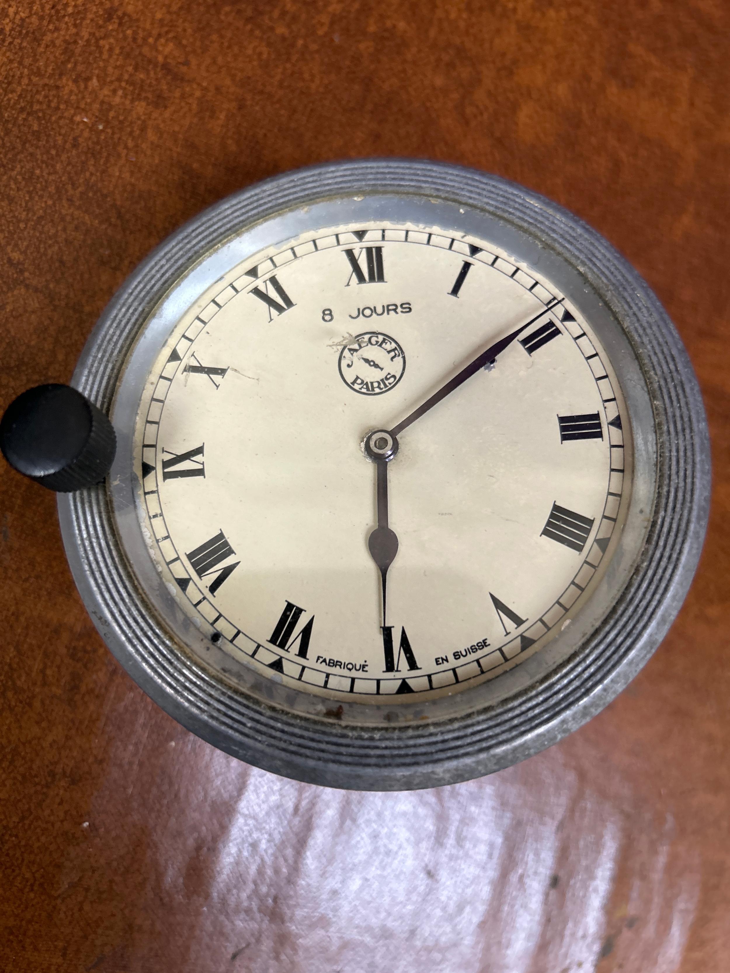 A circa 1930 Jaeger of Paris classic car clock with Swiss movement. Winding button is loose. 9 dia