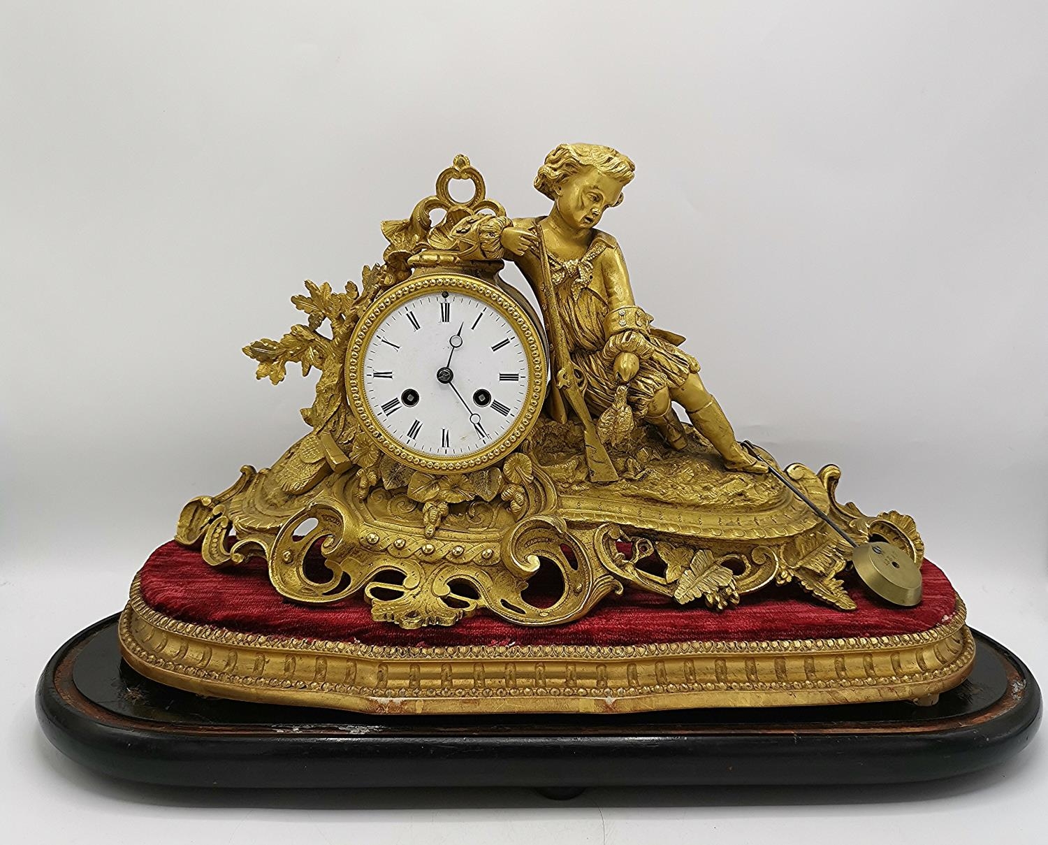VICTORIAN GILT BRONZE CLOCK WITH HUNTER BOY With BRACE OF PHEASANTS Signed L.Brocet (Regulated Arbor Movement) (No Key)(Please Note This Lot WILL NOT BE PACKED OR SHIPPED...PICK UP ONLY!!!)
