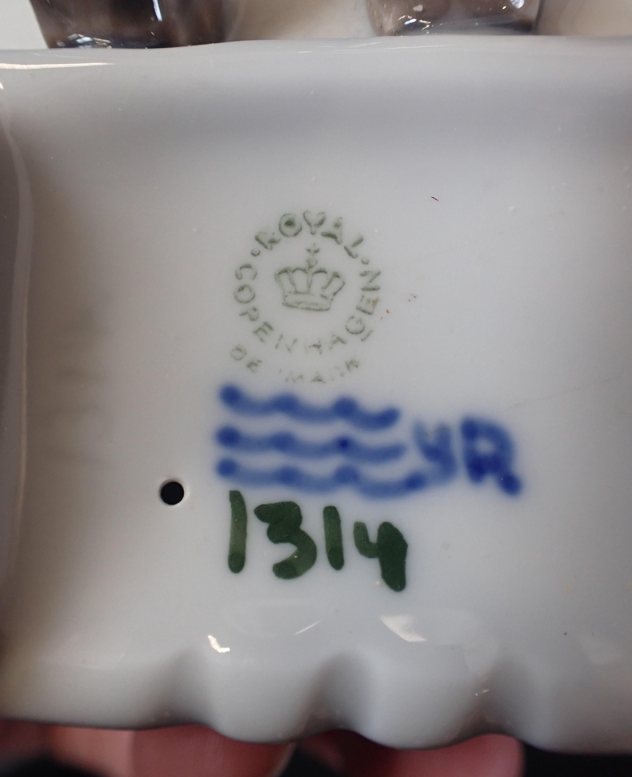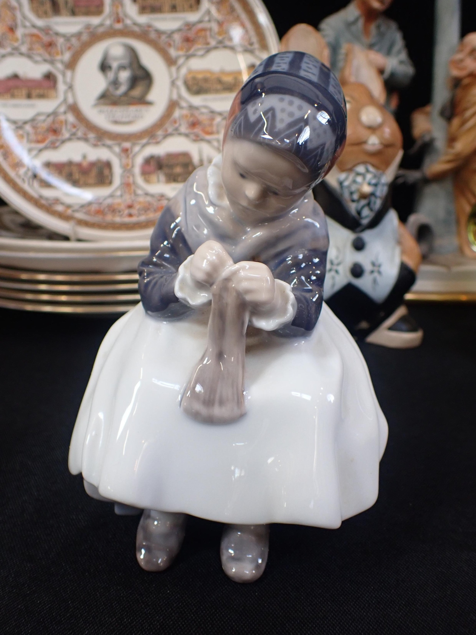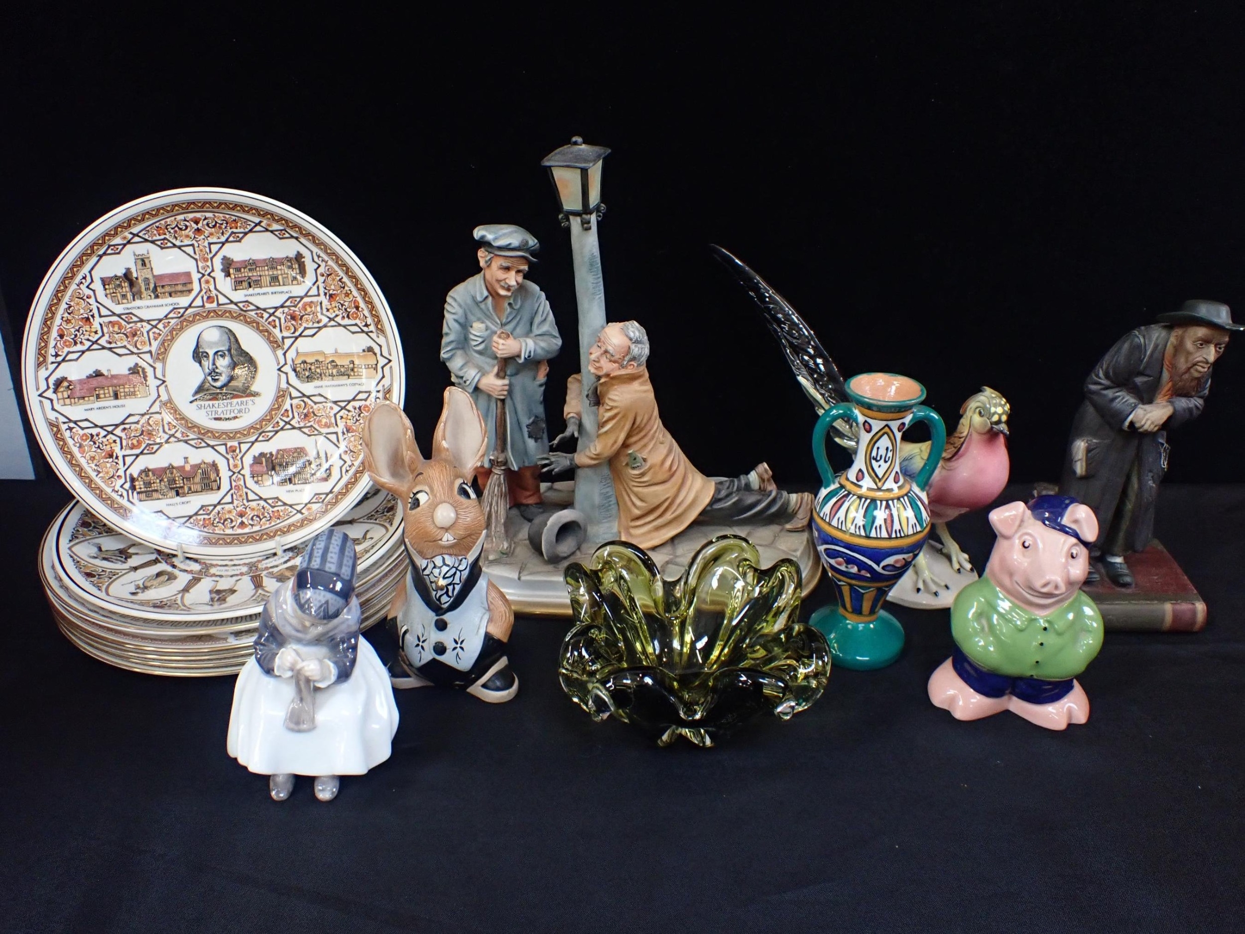 A ROYAL COPENHEGEN FIGUREwith a Canadian glass bowl, Wade pig and other mixed ceramics.