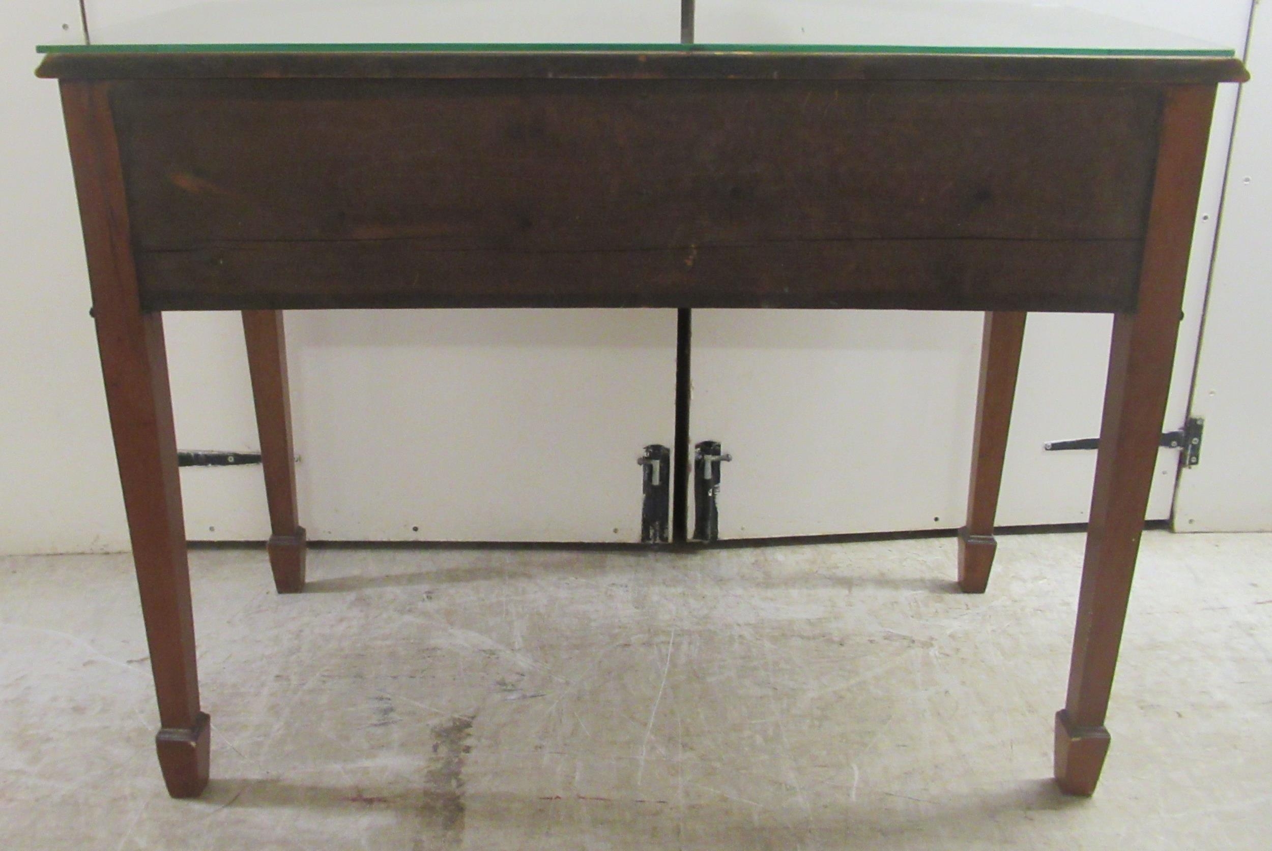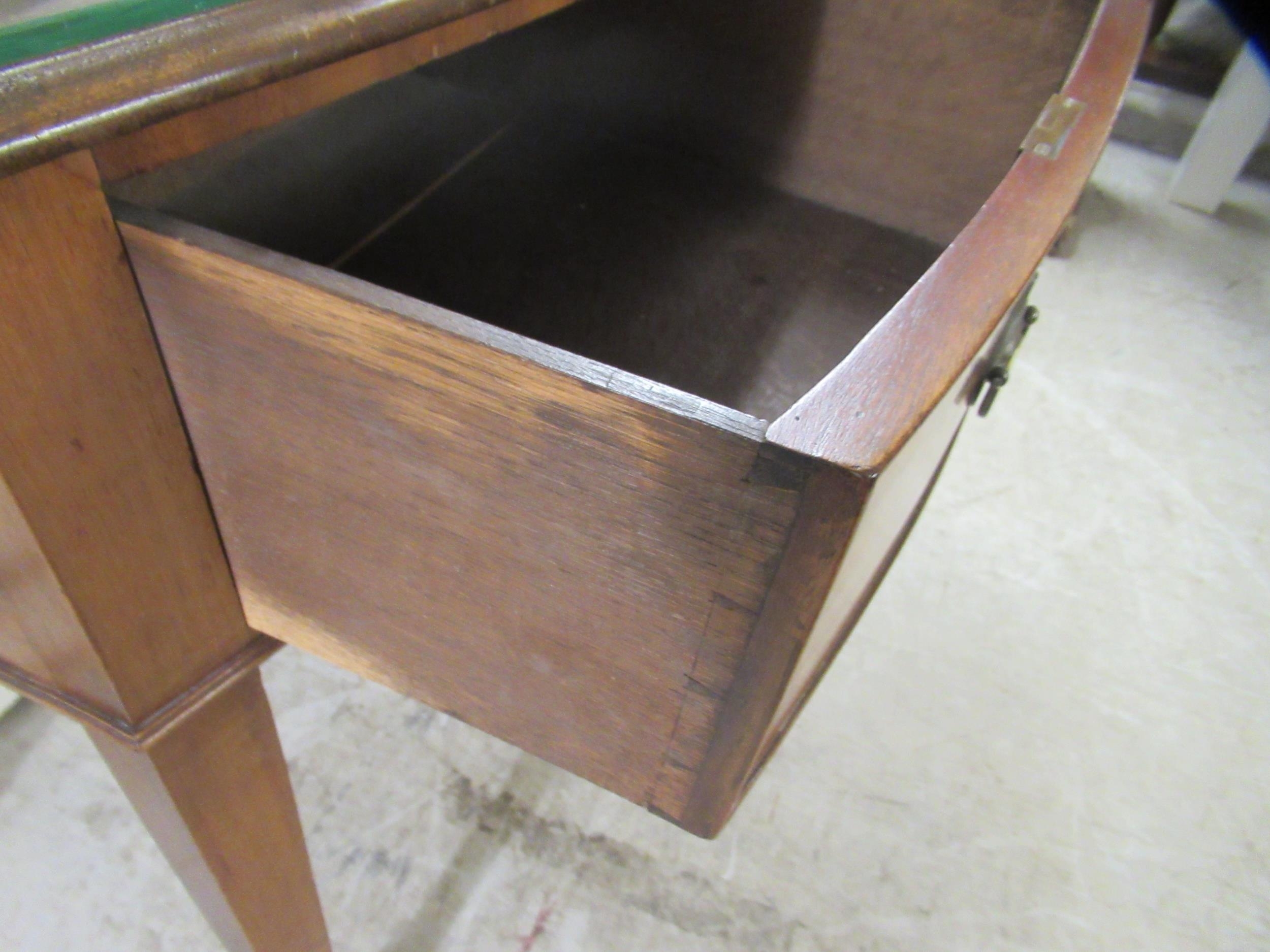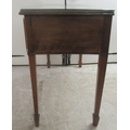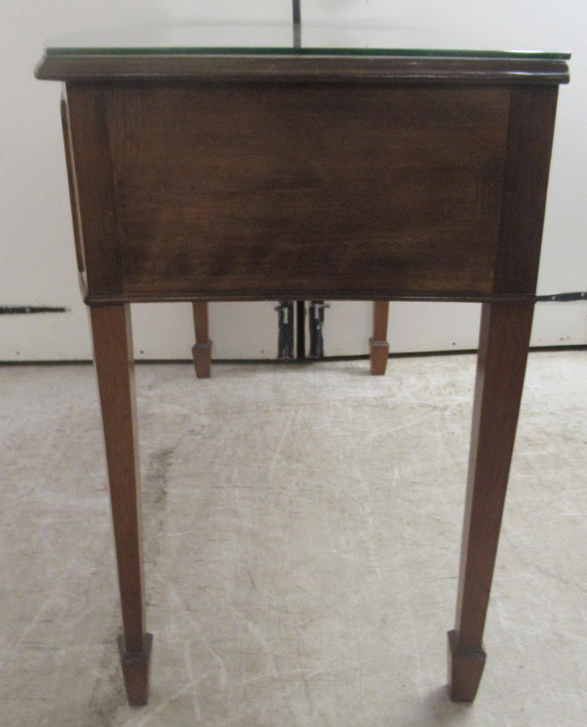 An early 20thC mahogany bow front, two drawer sideboard, raised on square, tapered legs and spade feet 30"h 42"w