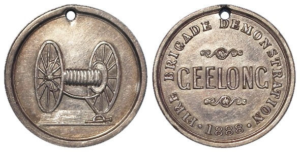 Australian Commemorative Medal, unmarked silver d.22.5mm, 5.11g: Geelong Fire Brigade Demonstration 1888, C# 1888/15, nEF, holed (as issued?)