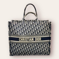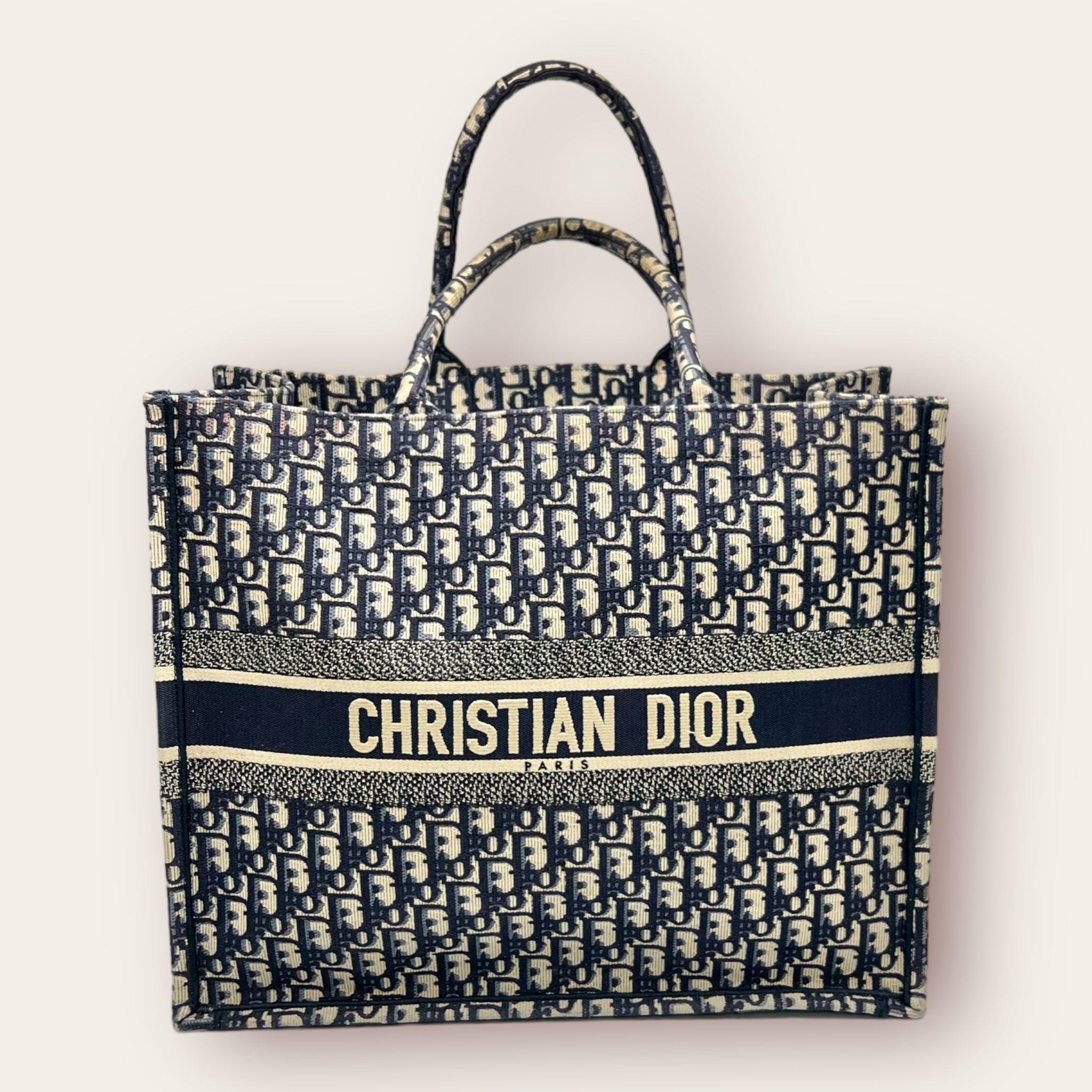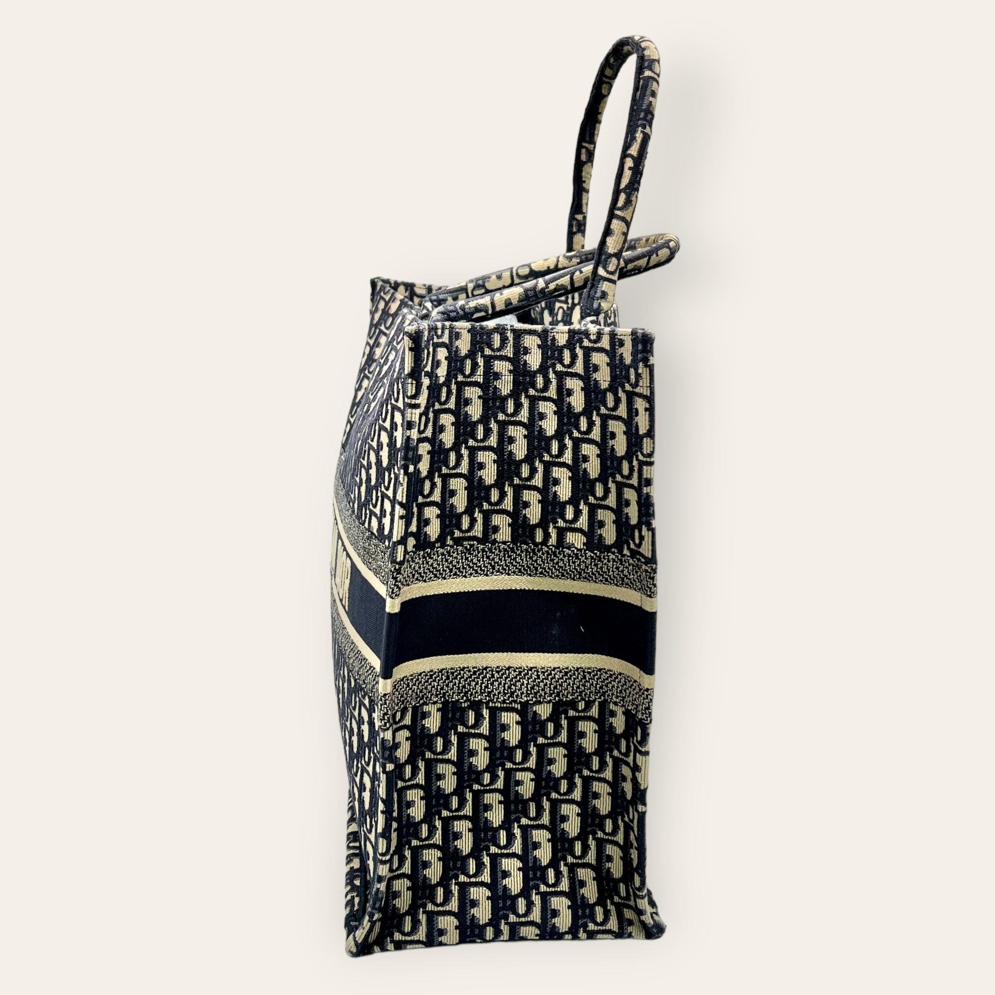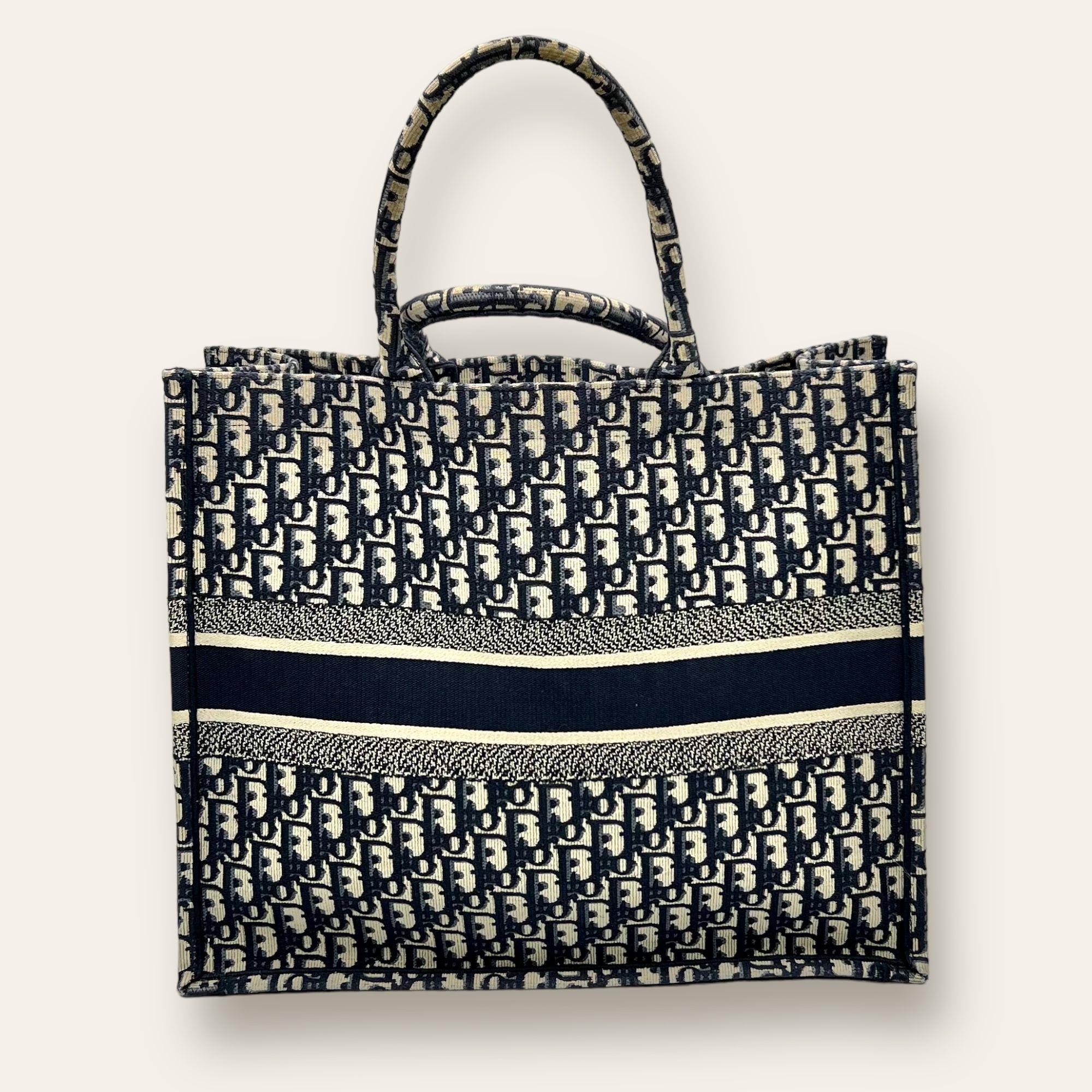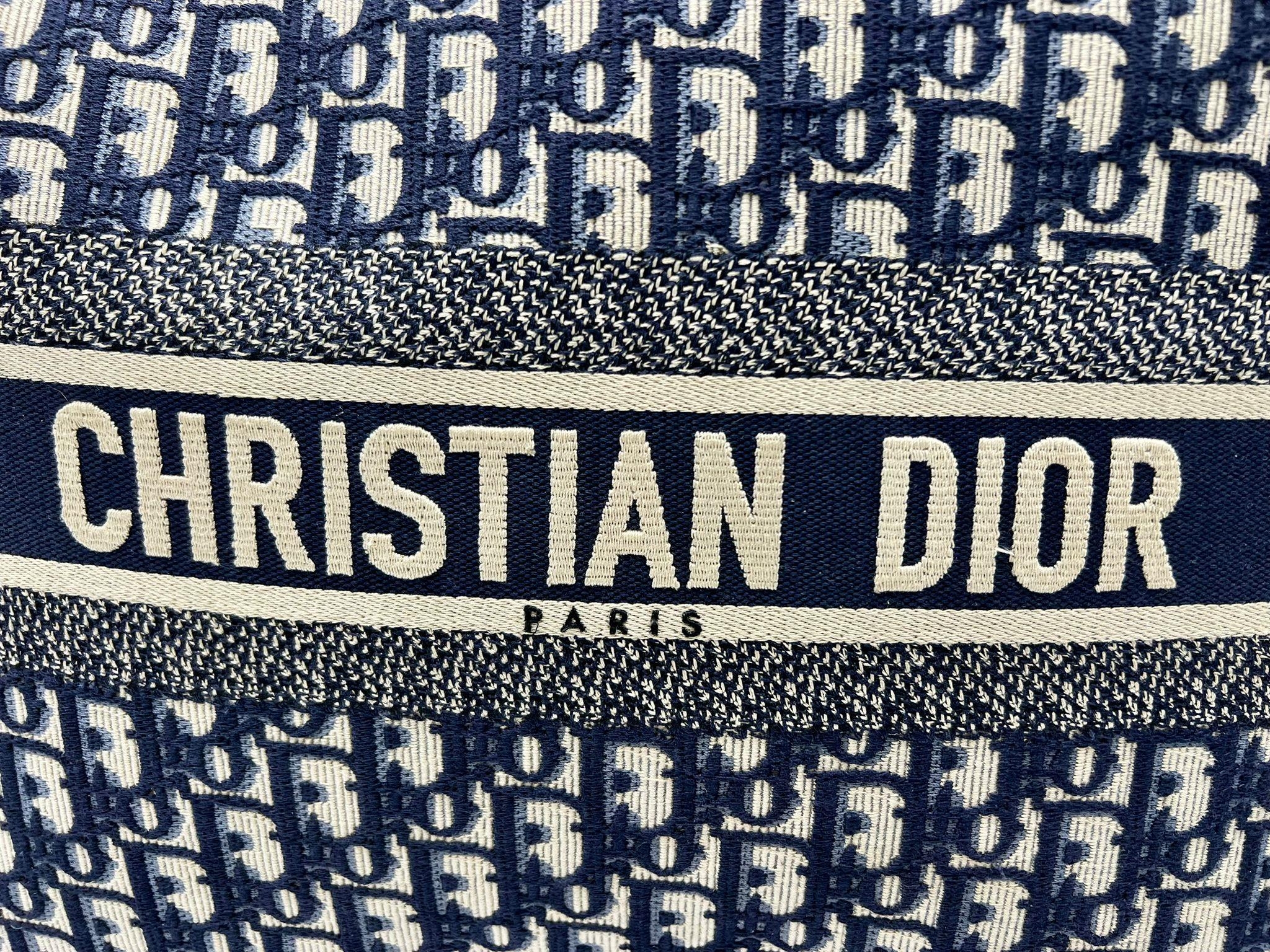 A Christian Dior Grey Oblique Book Tote Bag. Embroidered exterior, spacious interior. Ref: 13139. 41cm x 35cm. In good condition but please see photos for conditions.