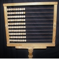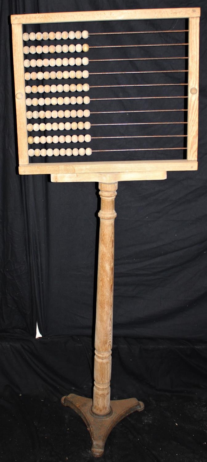 PINE STANDING ABACUS ON TURNED STAND AND CAST METAL BASE (WORM AFFECTED) (H156, W59, D36cm)