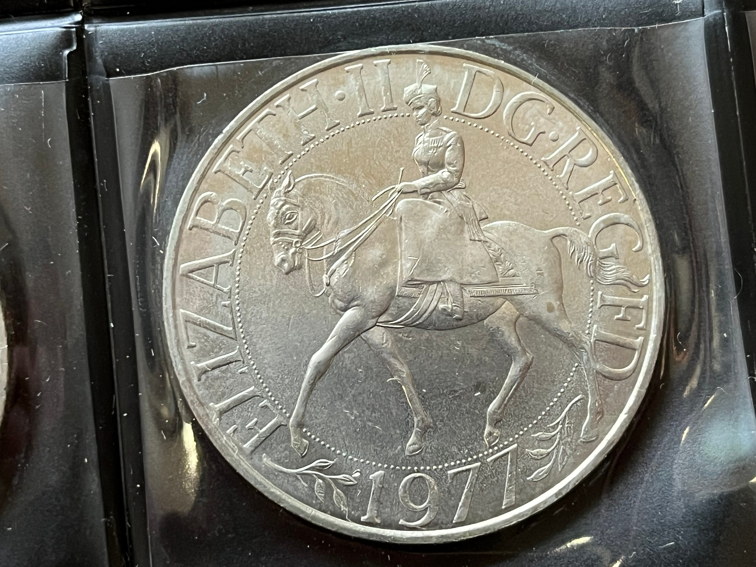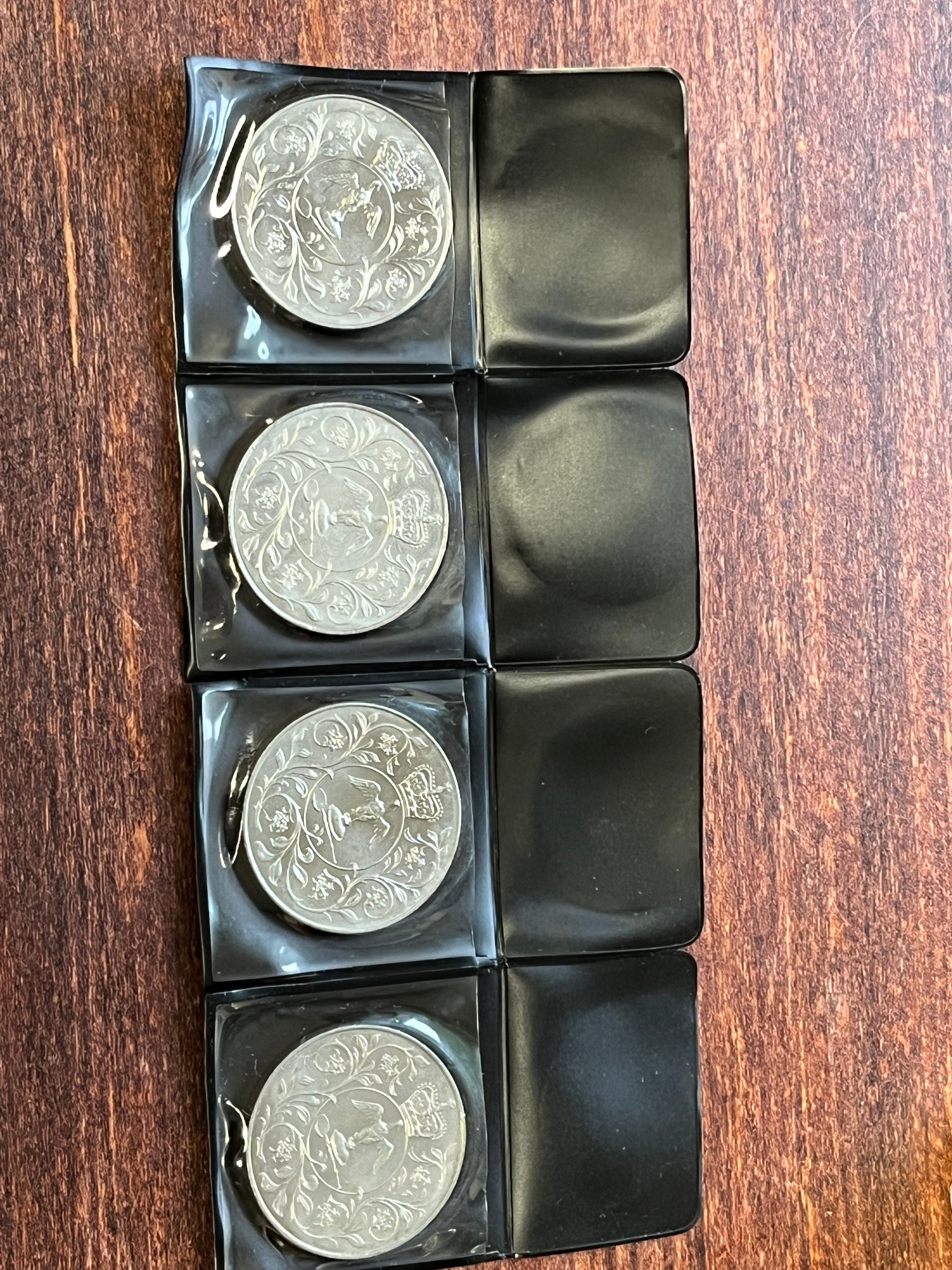 Collection of four Jubilee crowns in wallets, uncirculated Midland bank