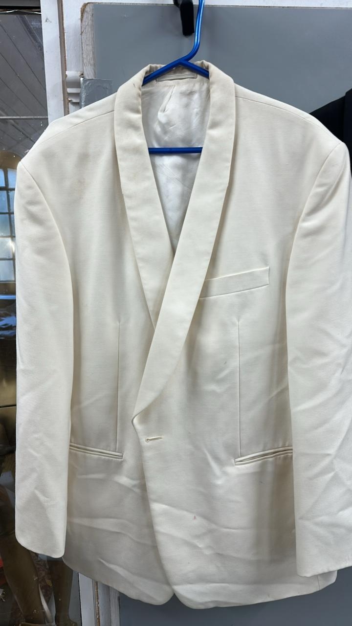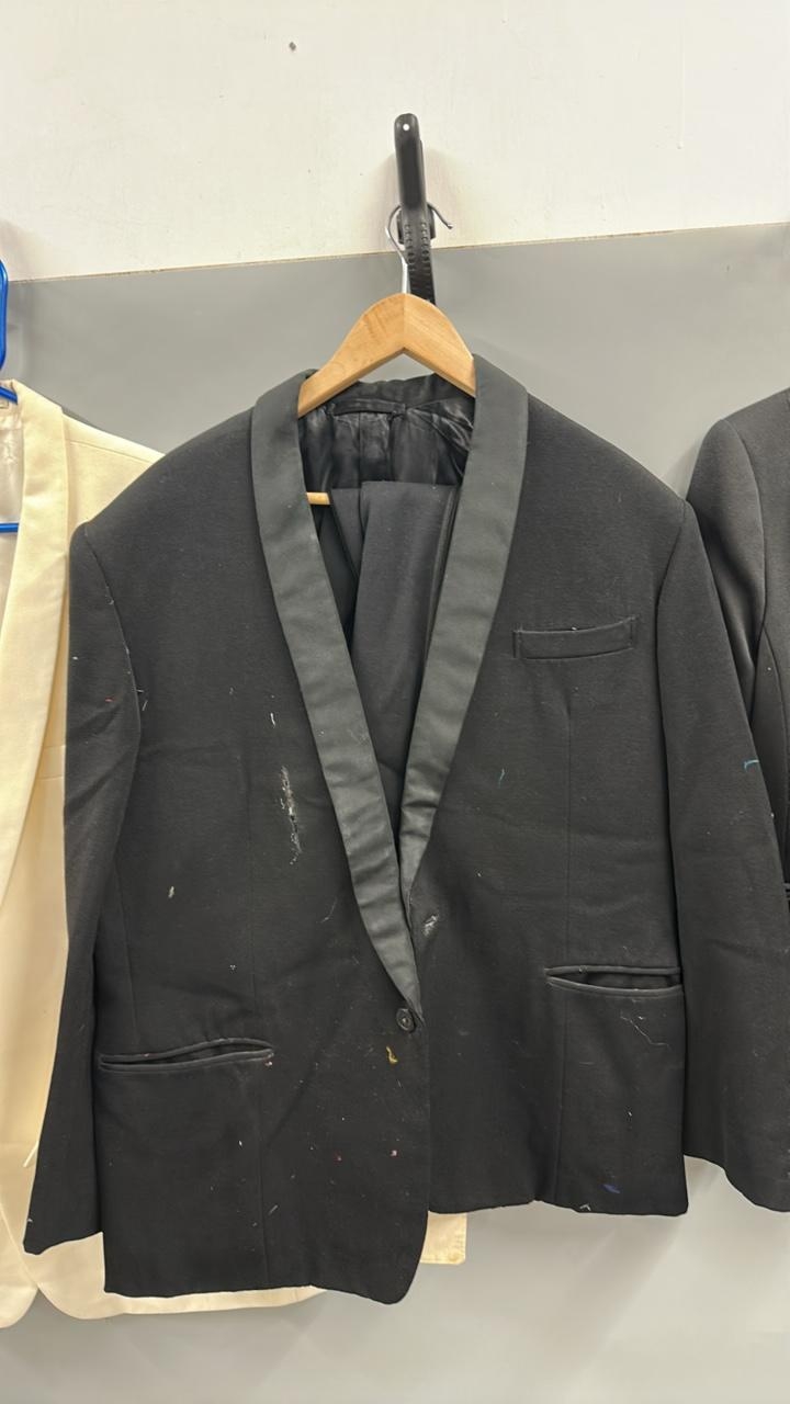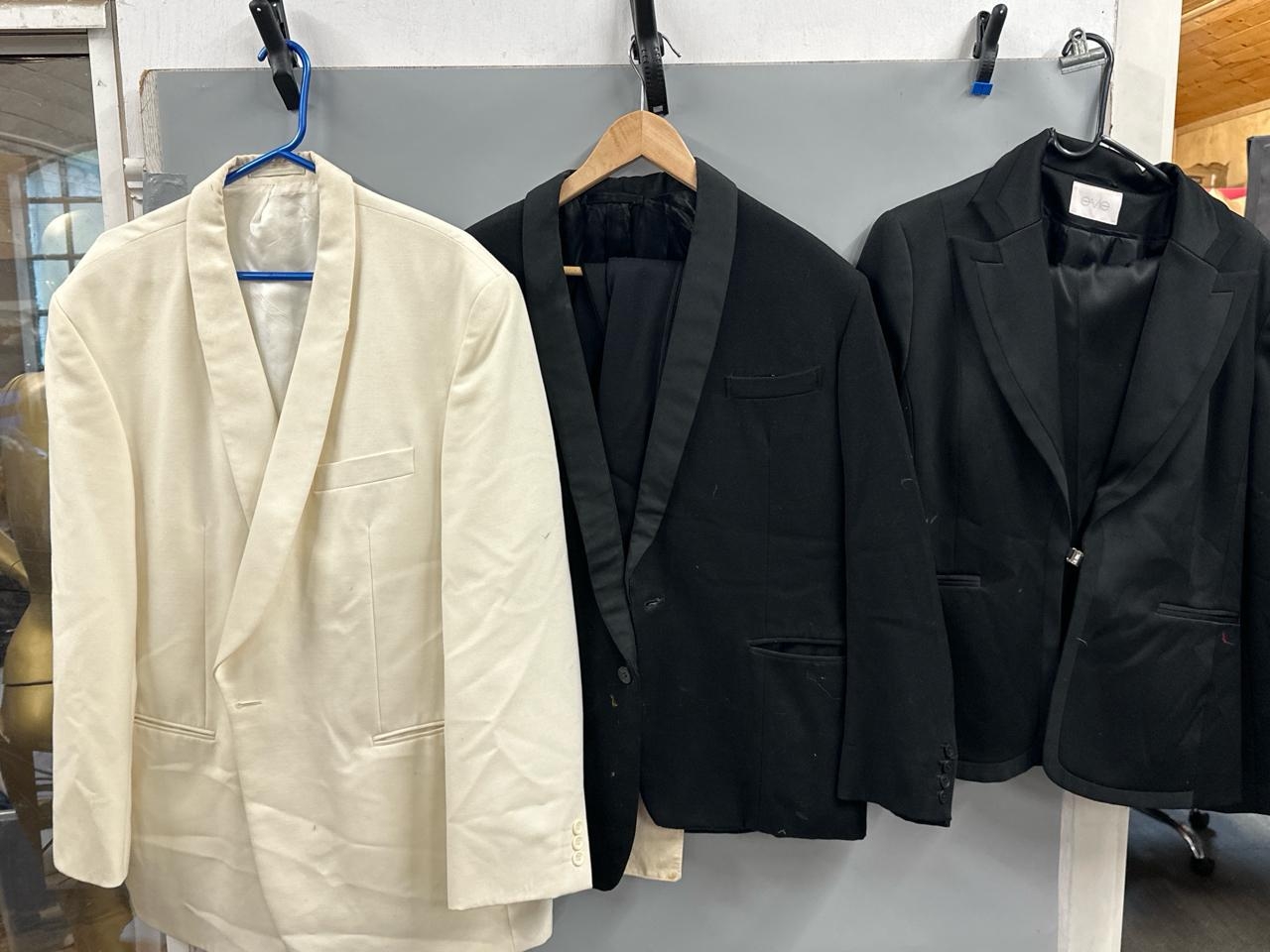 Collection of 'stage worn' dinner suits and a white dinner jacket. /Rail 4