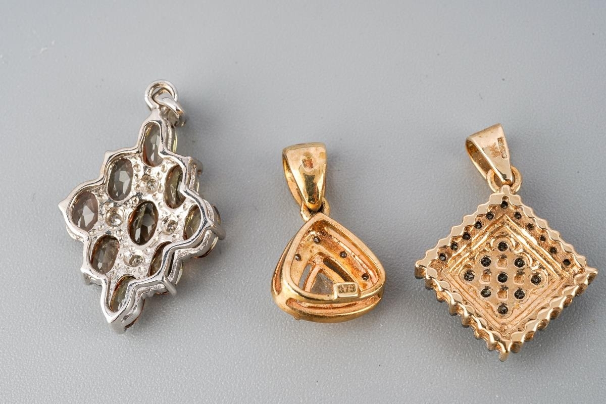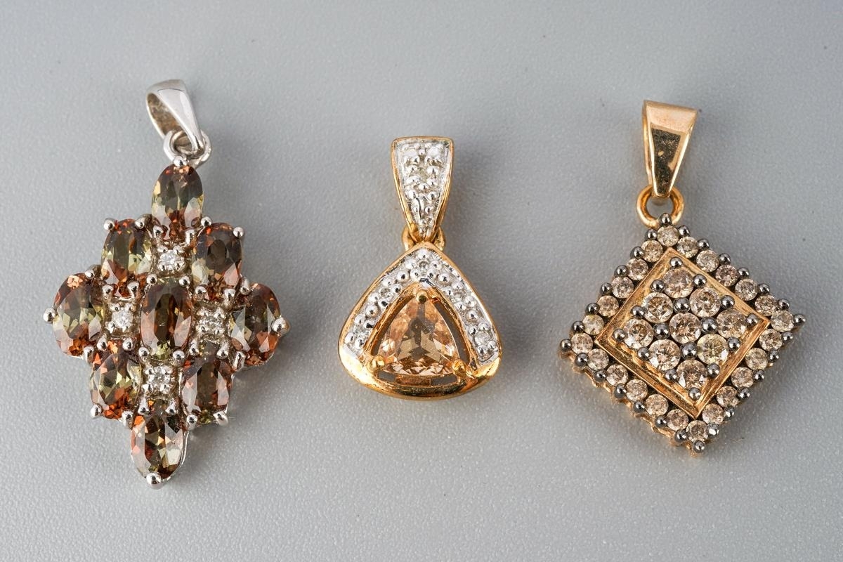 Collection of 3 pendants to include 9 ct gold natural champagne diamond set one, 9 ct gold Andalusite and diamond one and 9 ct gold and imperial beryl and diamond one. gross weight approx. 4.66g