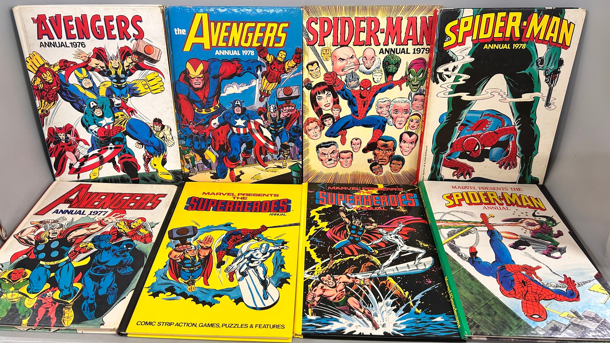 Eight Marvel Bronze Age Annuals 1976-1980, three Spiderman, three Avengers, two Marvel Super Heroes