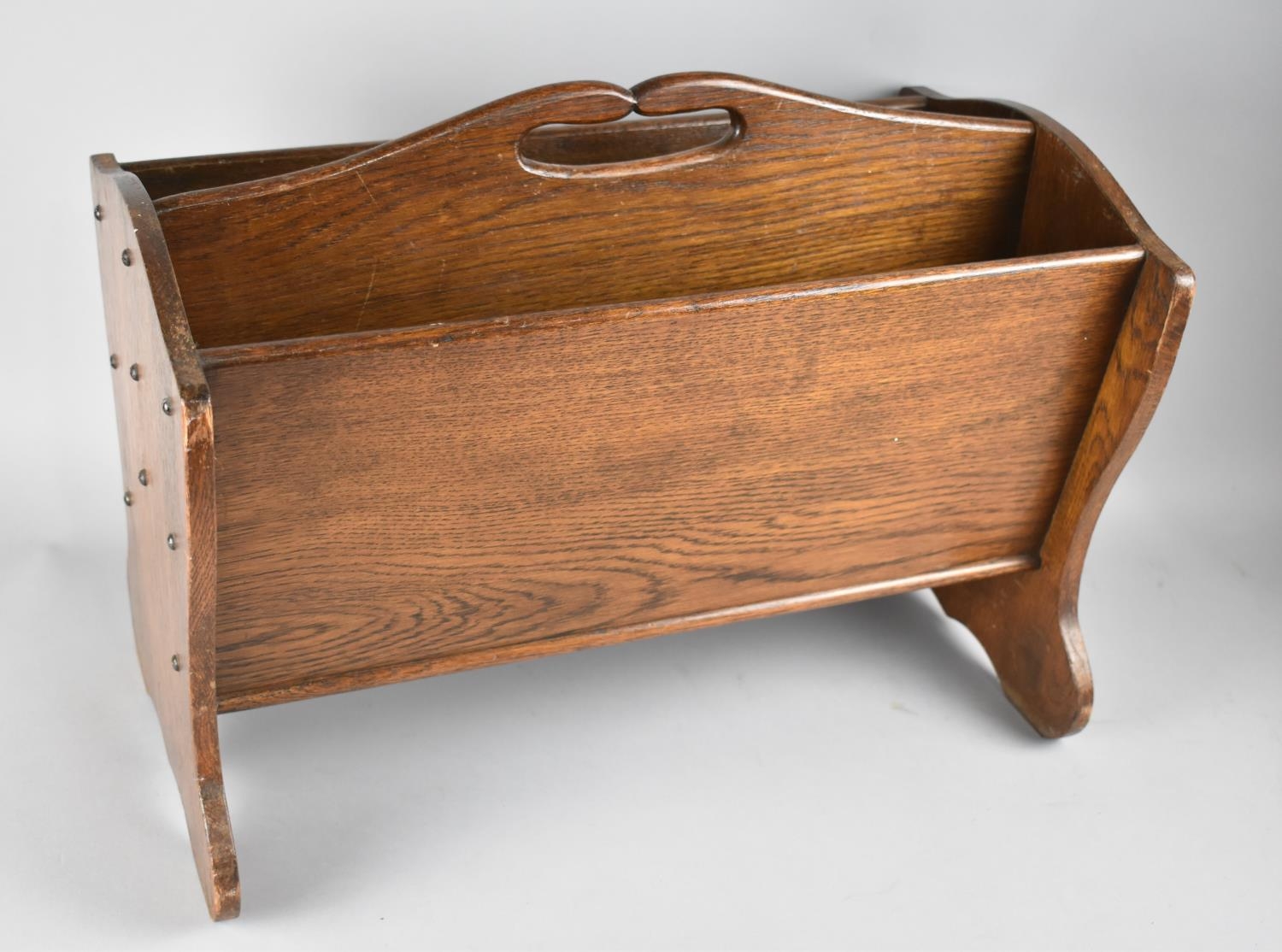 A Mid 20th Century Oak Two Division Magazine Rack, 48cm wide