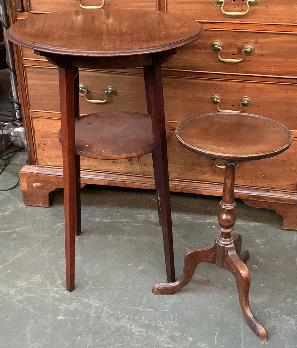 A mahogany circular occasional table, with undershelf, bears label for 'William Whiteley Ltd, London W', 45.5cmD 67cmH; together with a tripod wine table (2)