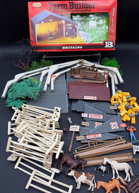 Britains Farm Builder Set & Fencing. Includes Farm Builder Set Box (Set appears complete), Fencing, Gates and Animals.