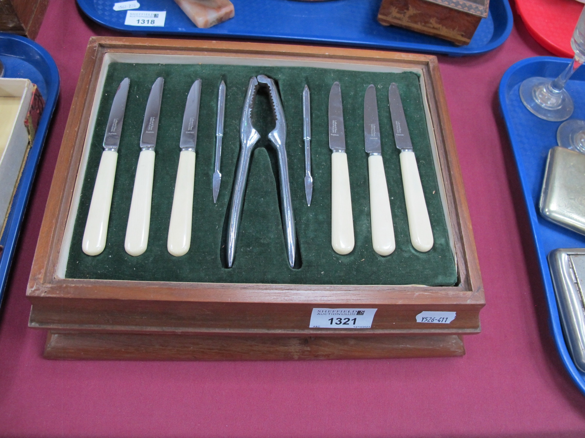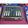 A Latham & Owen fruit knife set in fitted wooden box 29cm w.