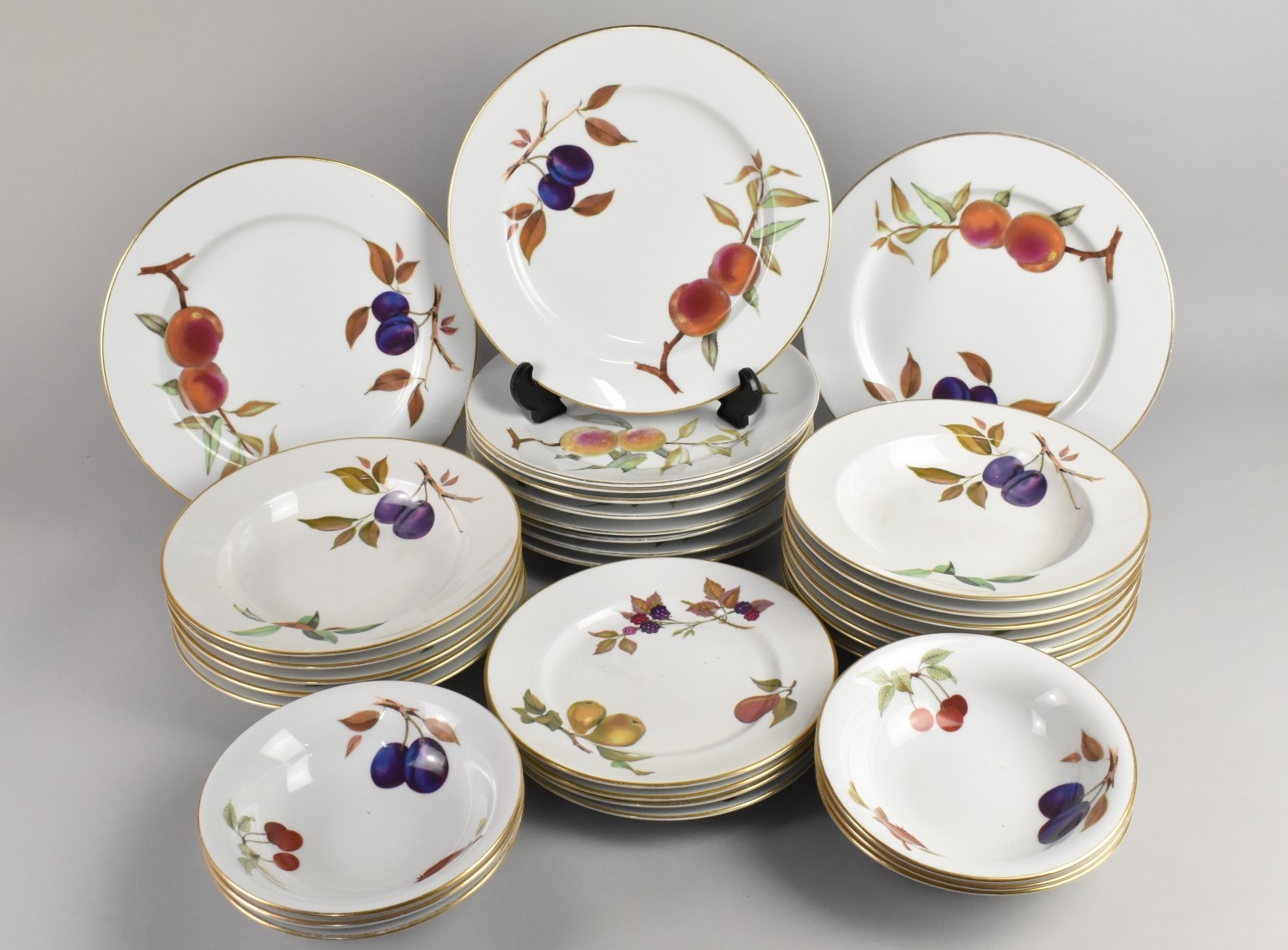 A Royal Worcester Evesham Thirty-Three Dinner Service to Comprise Large Dinner Plates, Small Plates and Bowls