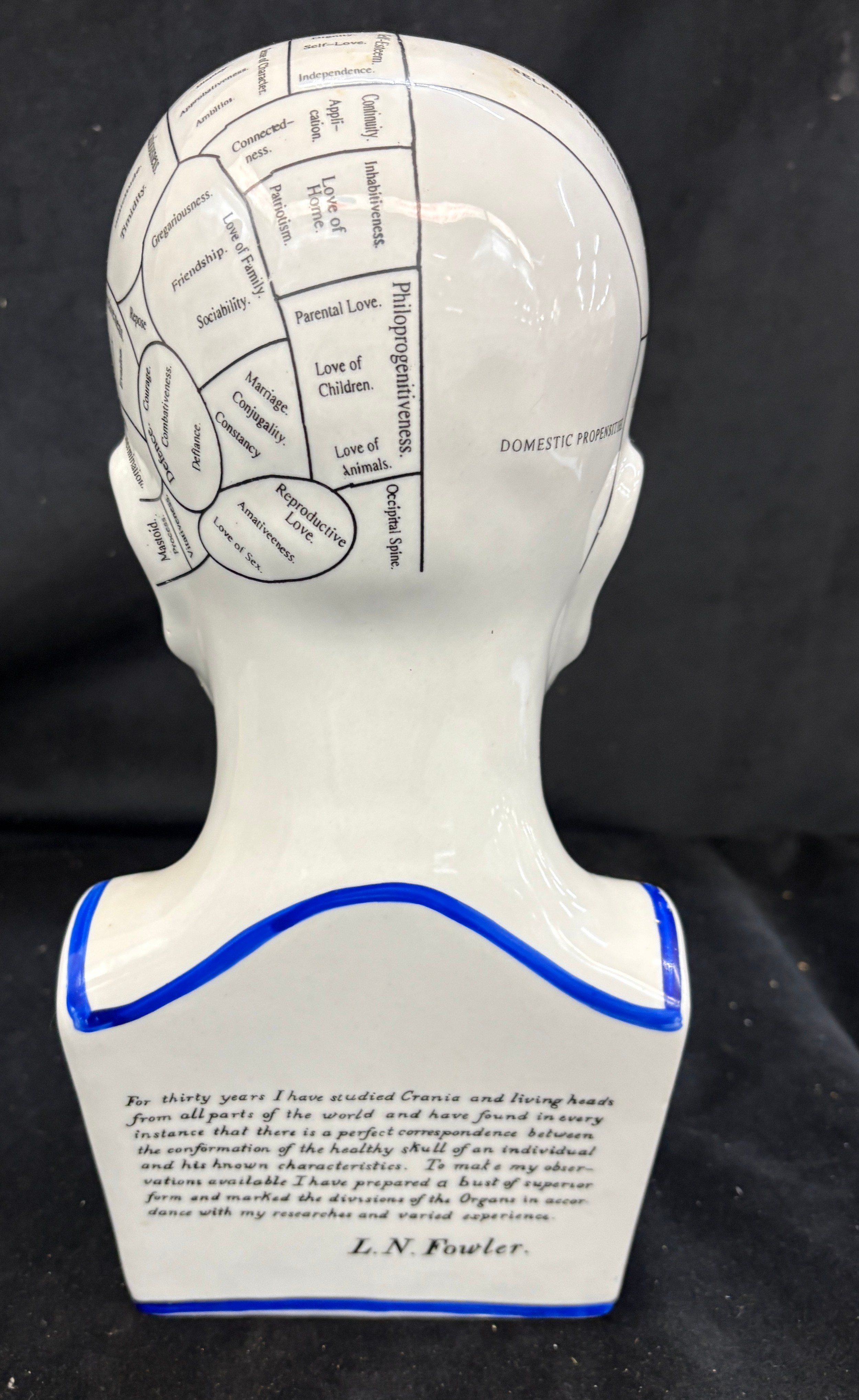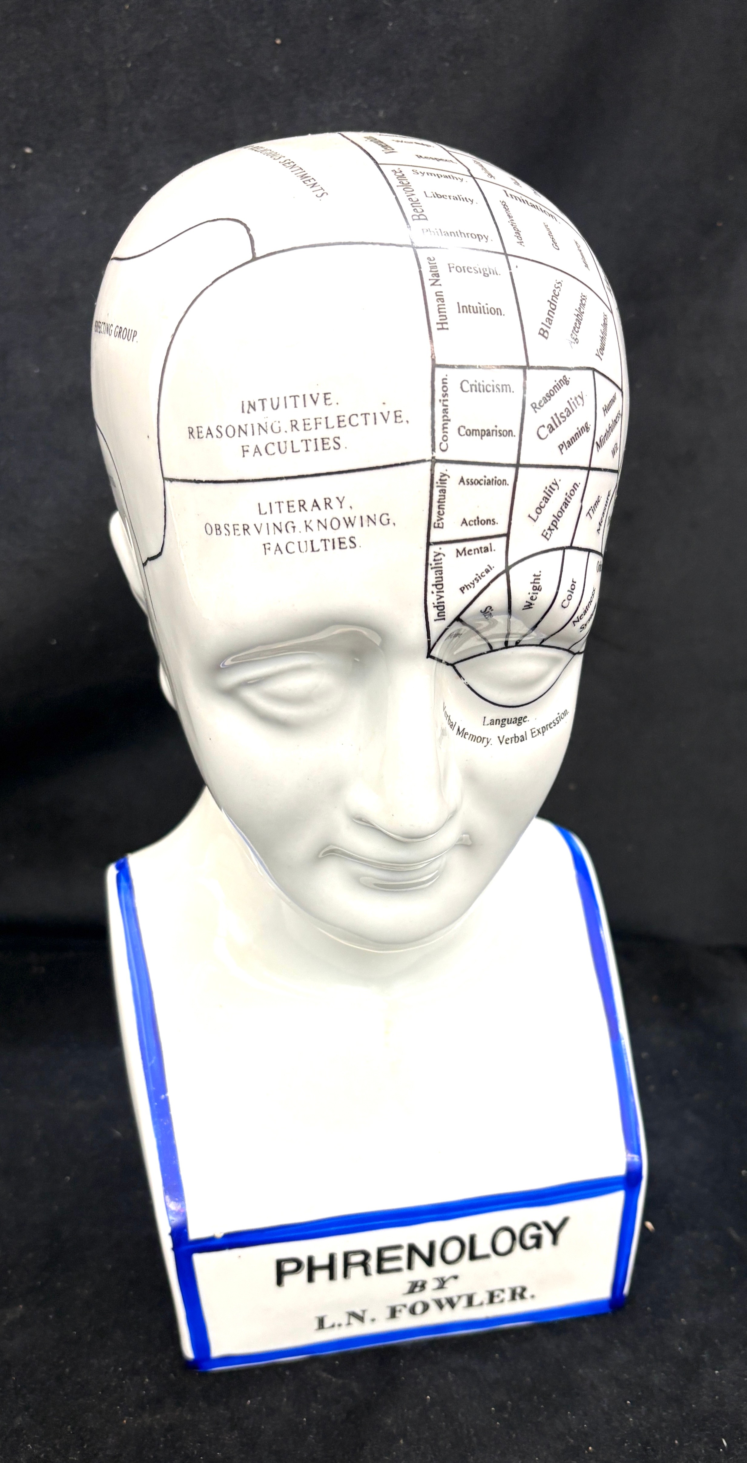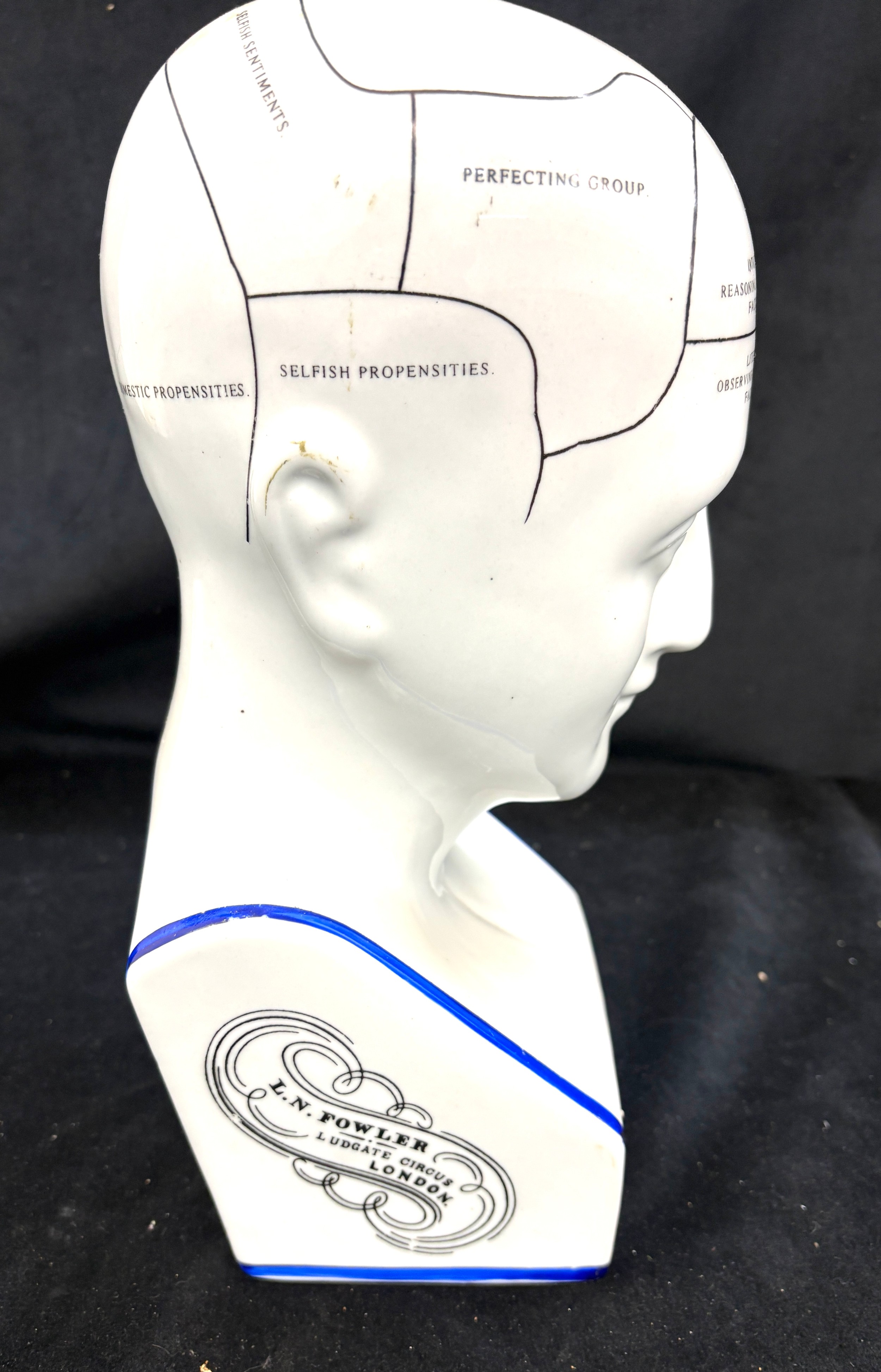 Phrenology head by L N Fowler, approximate height 12.5 inches