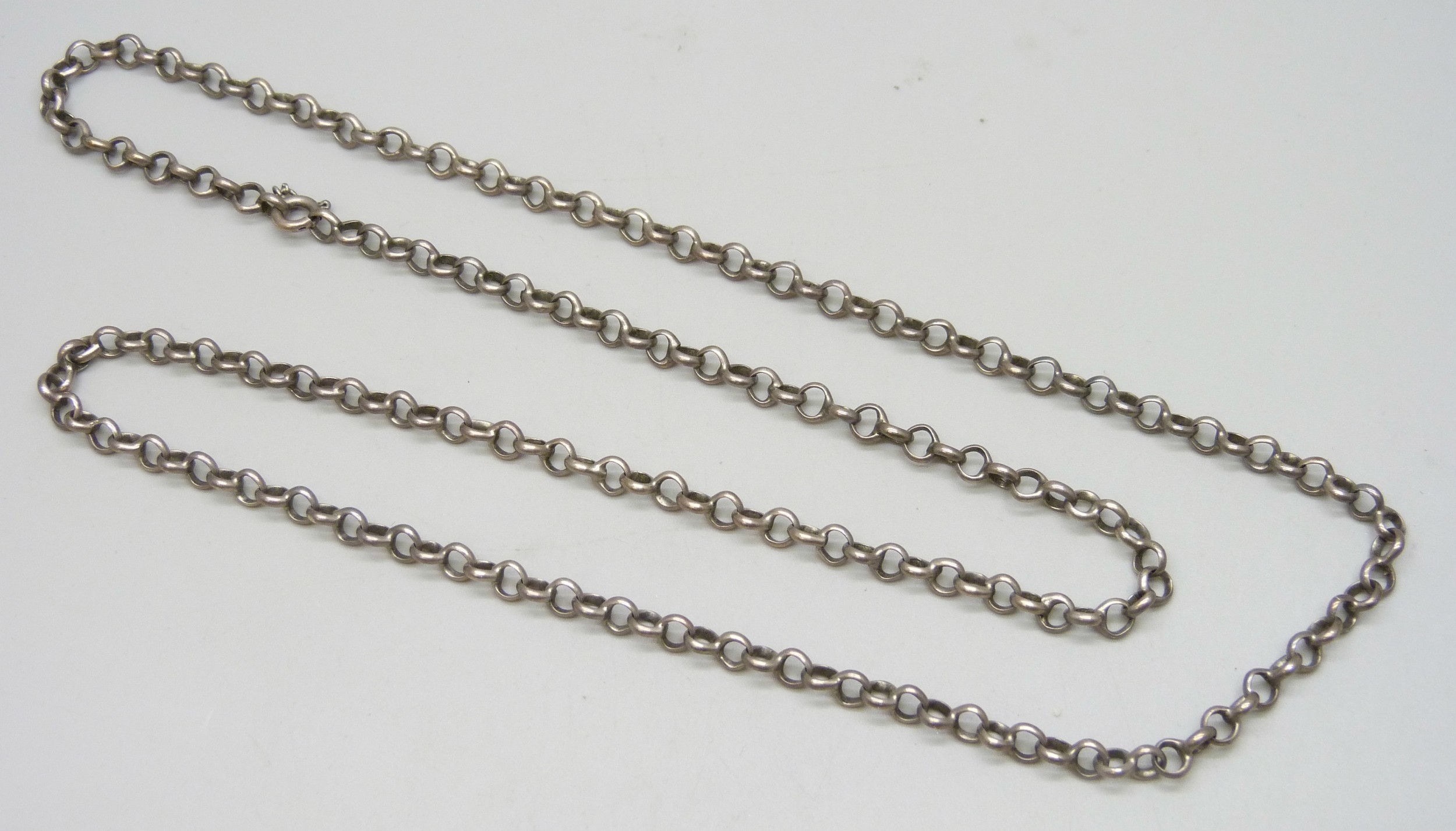 A long silver belcher chain necklace, 25g, 71cm, clasp a/f