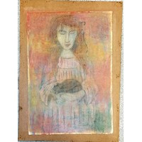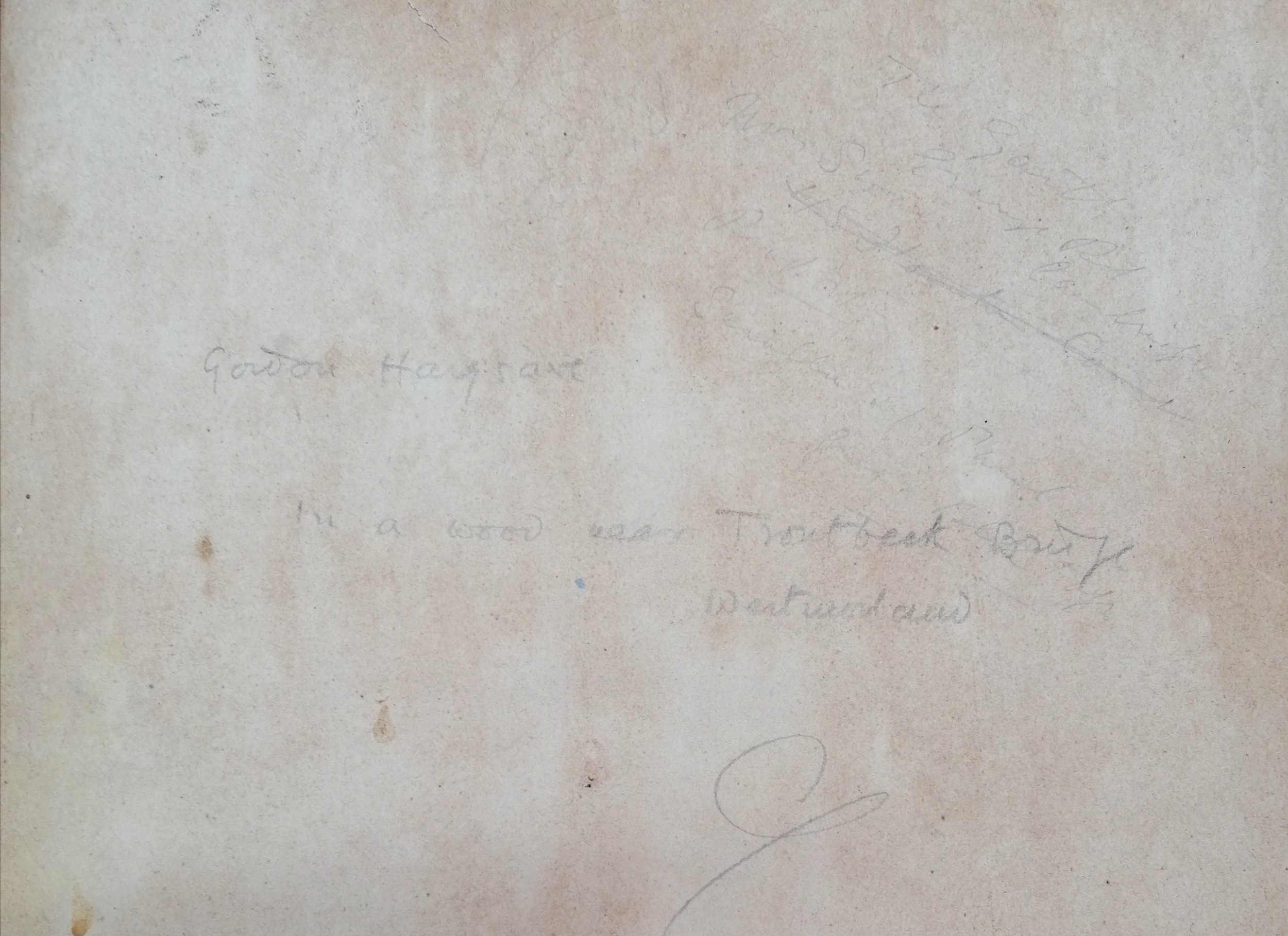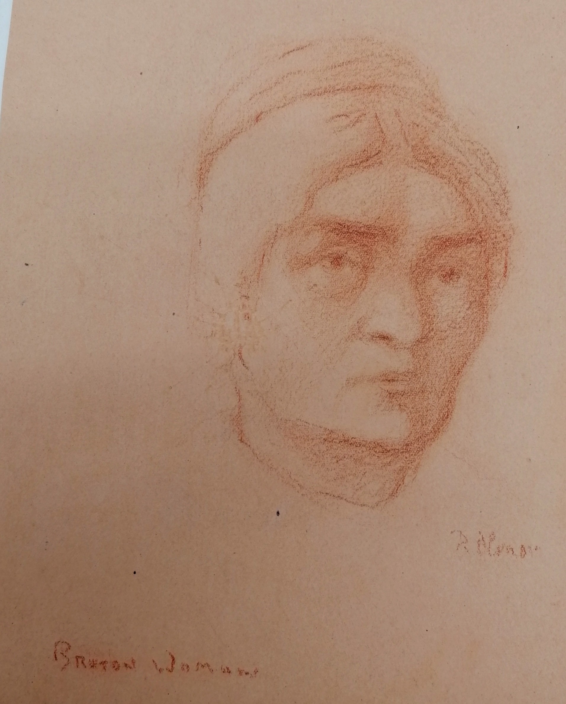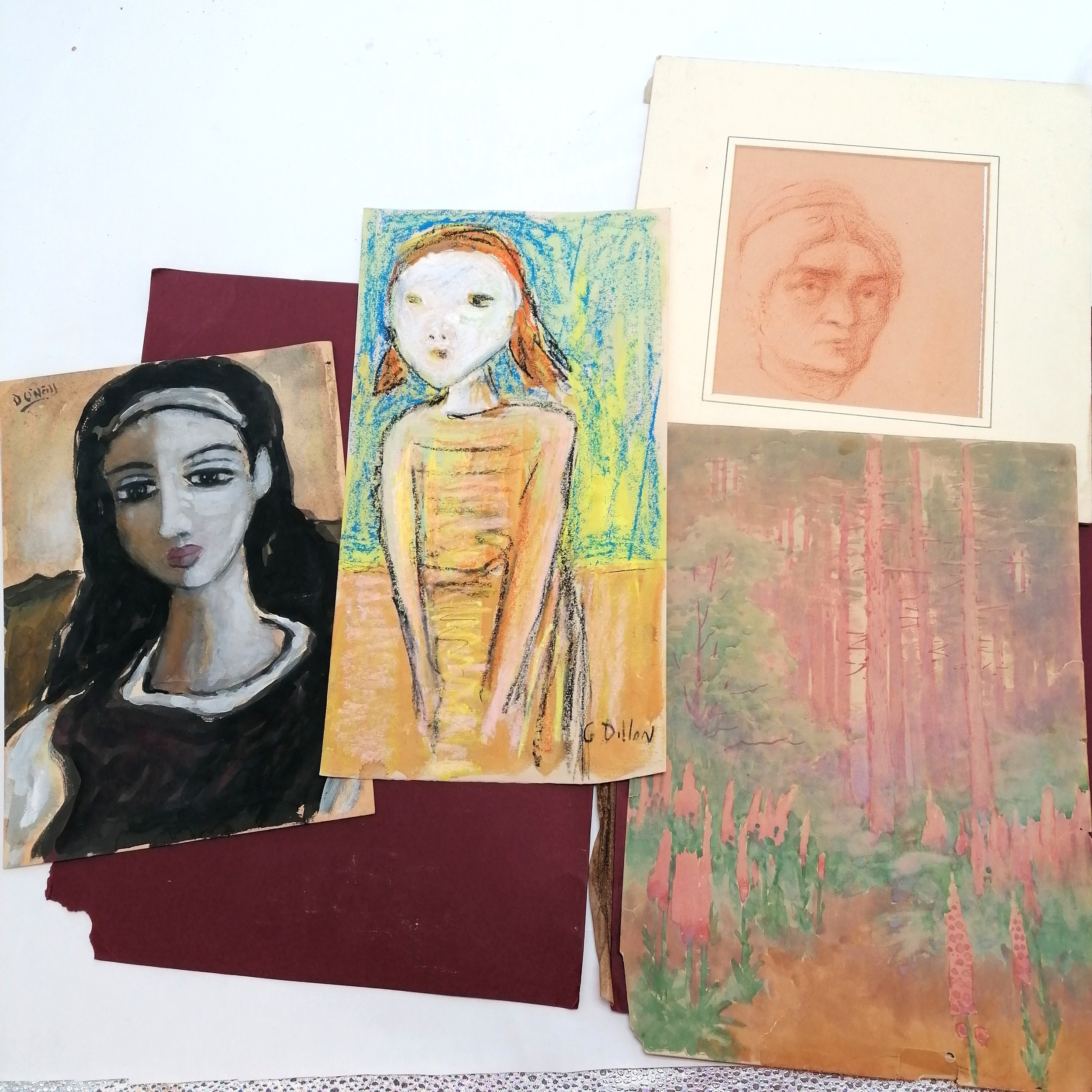 Folder (30.5cm x 42.5cm) containing 4 works of art inc D O'Neill, G Dillon, In a wood near Troutbeck Bridge Westmorland Gordon Hargrave & Breton woman