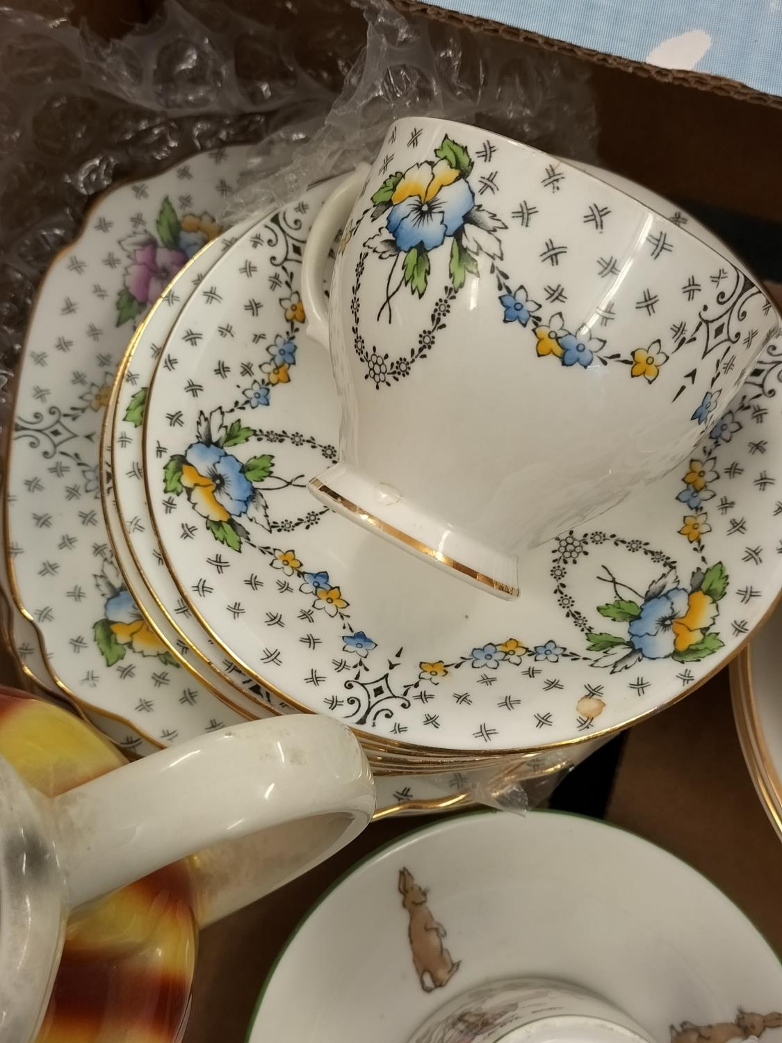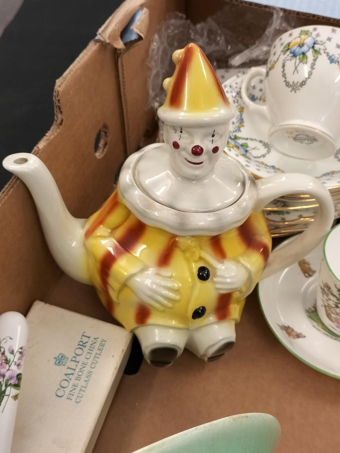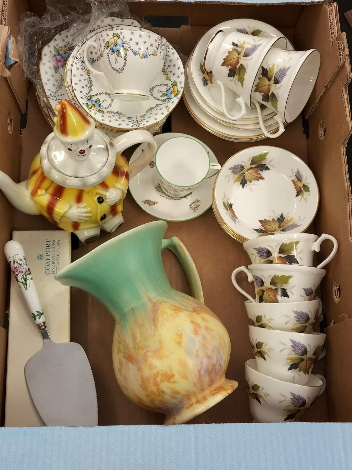 Box of Mixed Pottery to include Cups, Saucers, Vase, Teapot, etc.