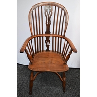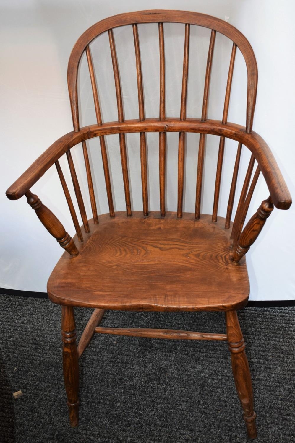 A Country House Windsor elbow chair, turned arm posts, saddle seat, H-stretcher, 88cm high