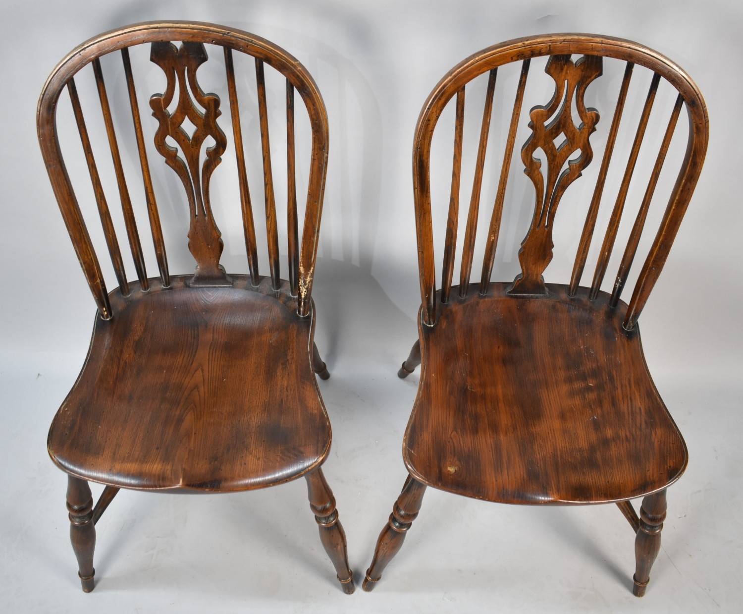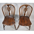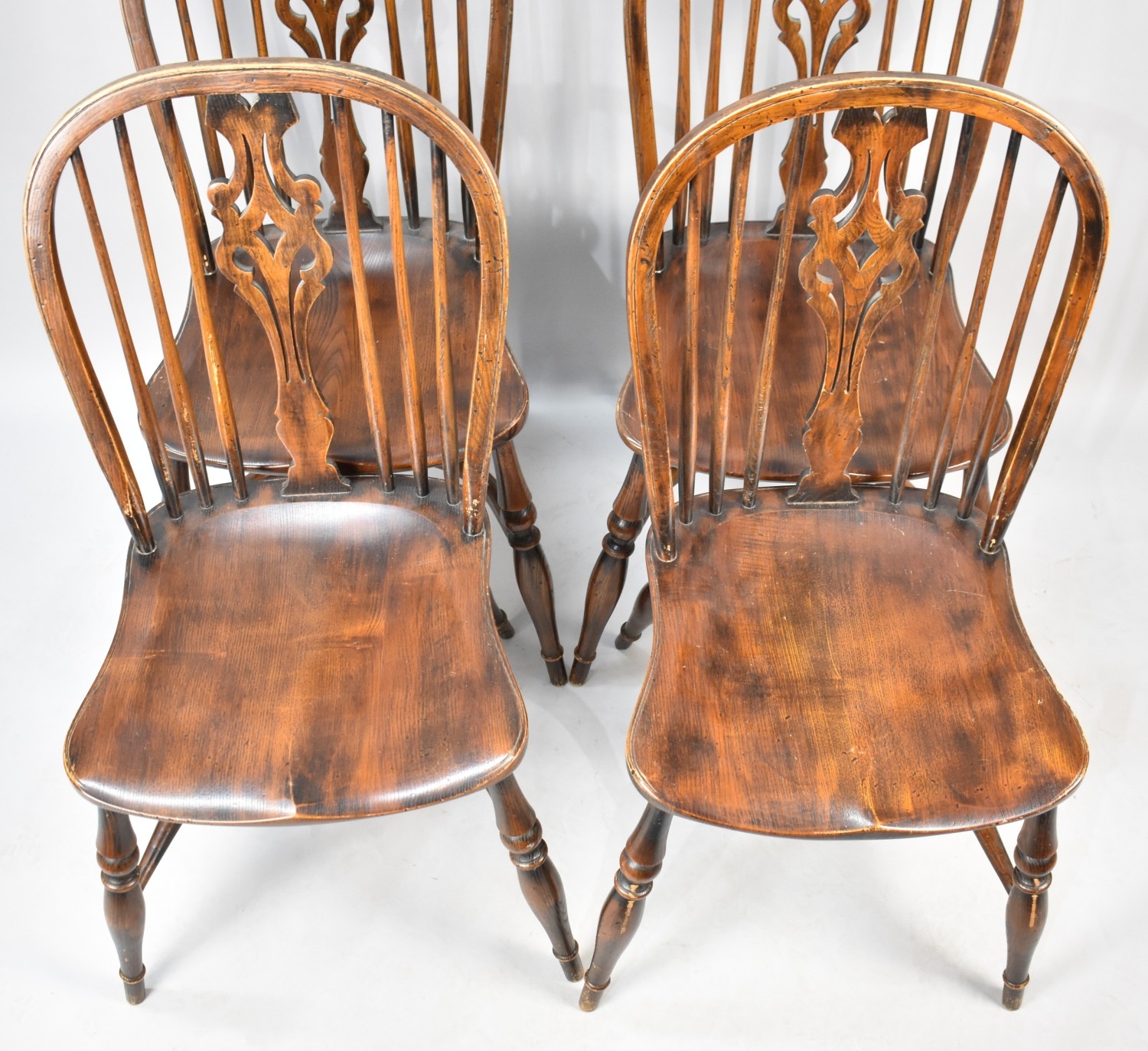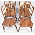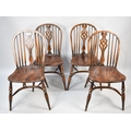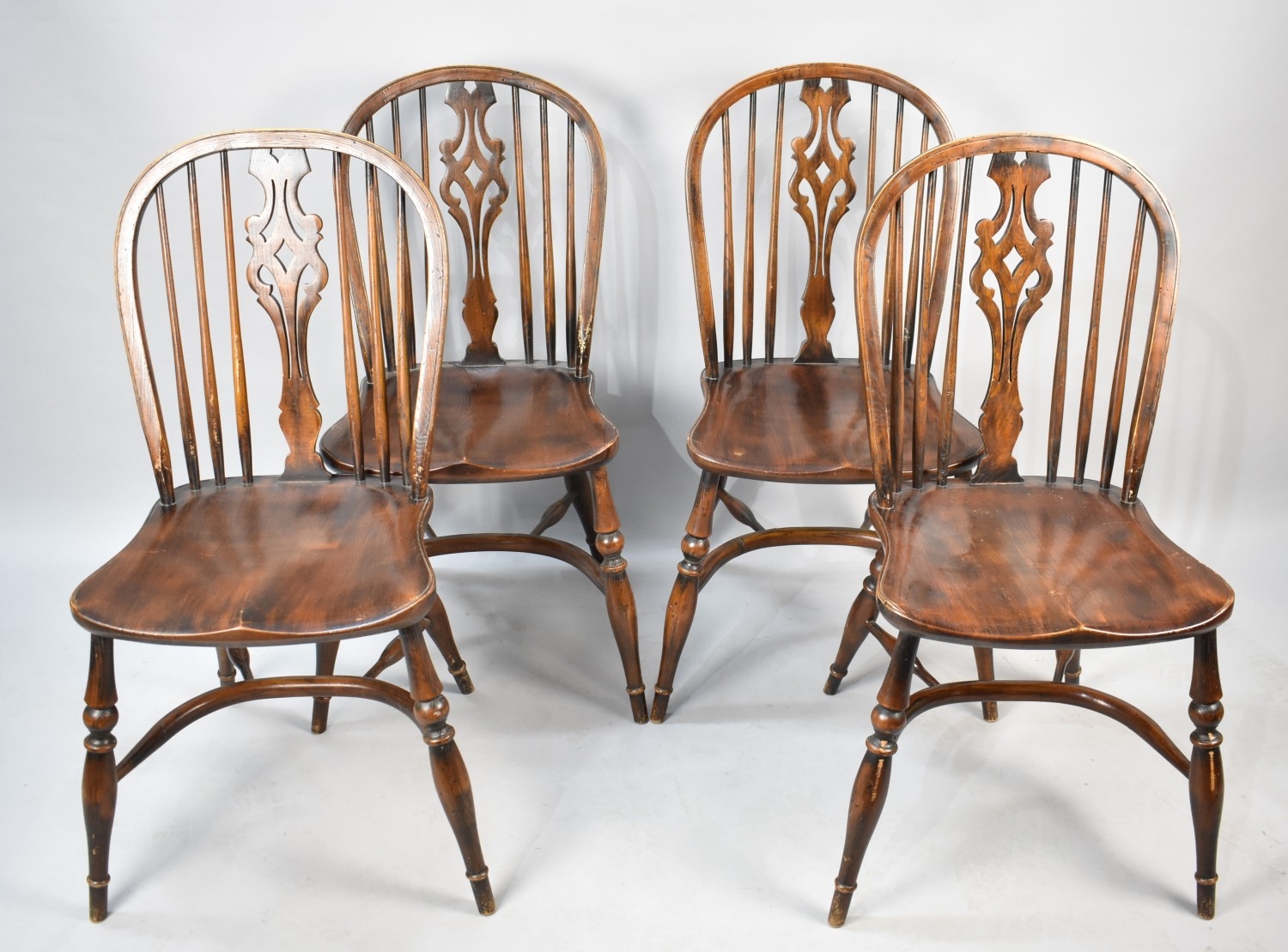 A Set of Four Elm Seated Spindle Back Dining Chairs with Pierced Splats