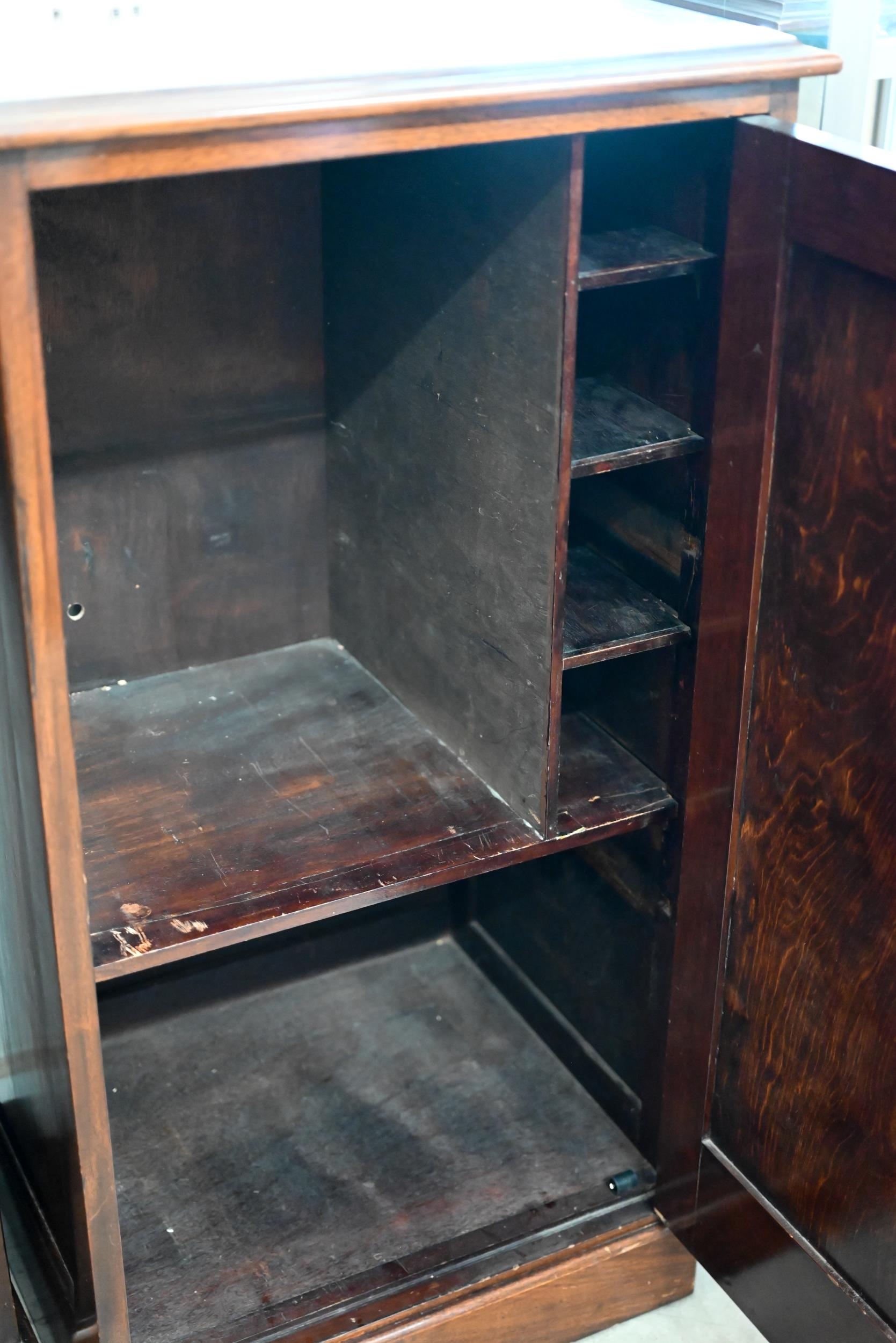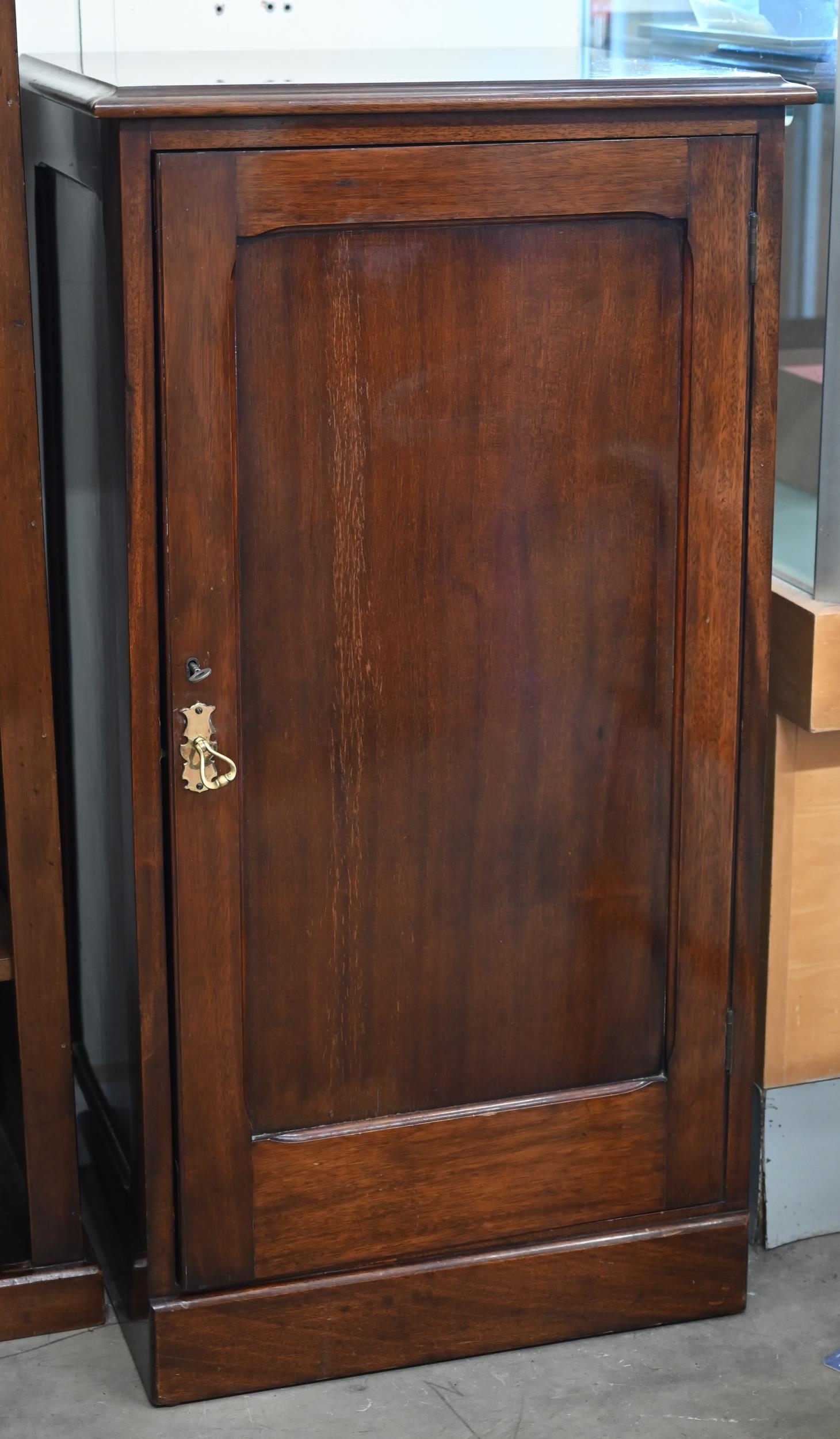 A 20th century mahogany side cabinet with single panelled doors, 55 x 45 x 102 cm high