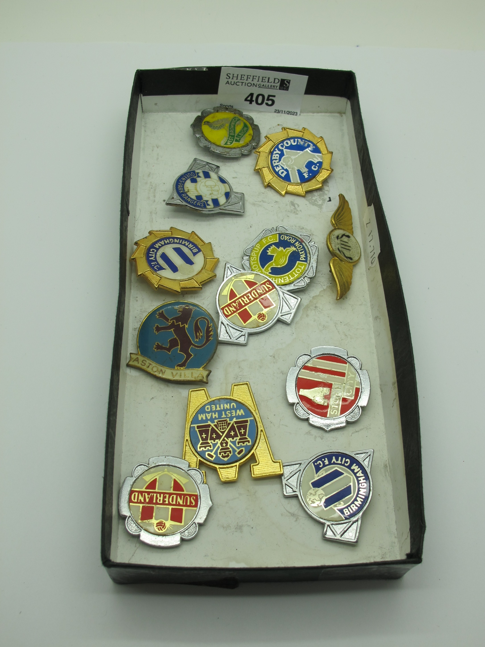 1970s Lapel Badges, Sunderland, Tottenham, West Ham, Birmingham, Aston Villa, etc (12).