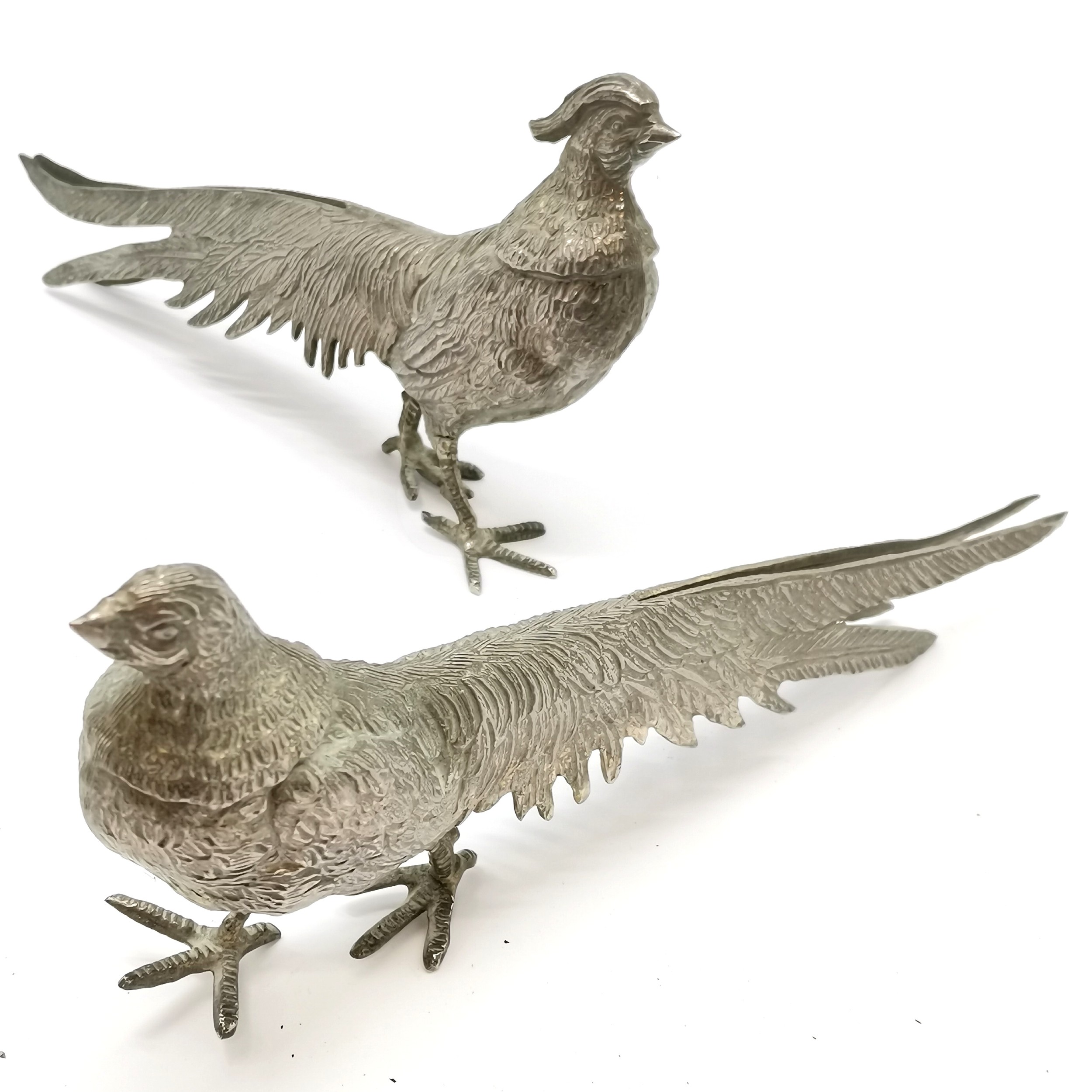 Pair of nickel pheasant table decorations - 28cm