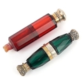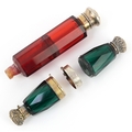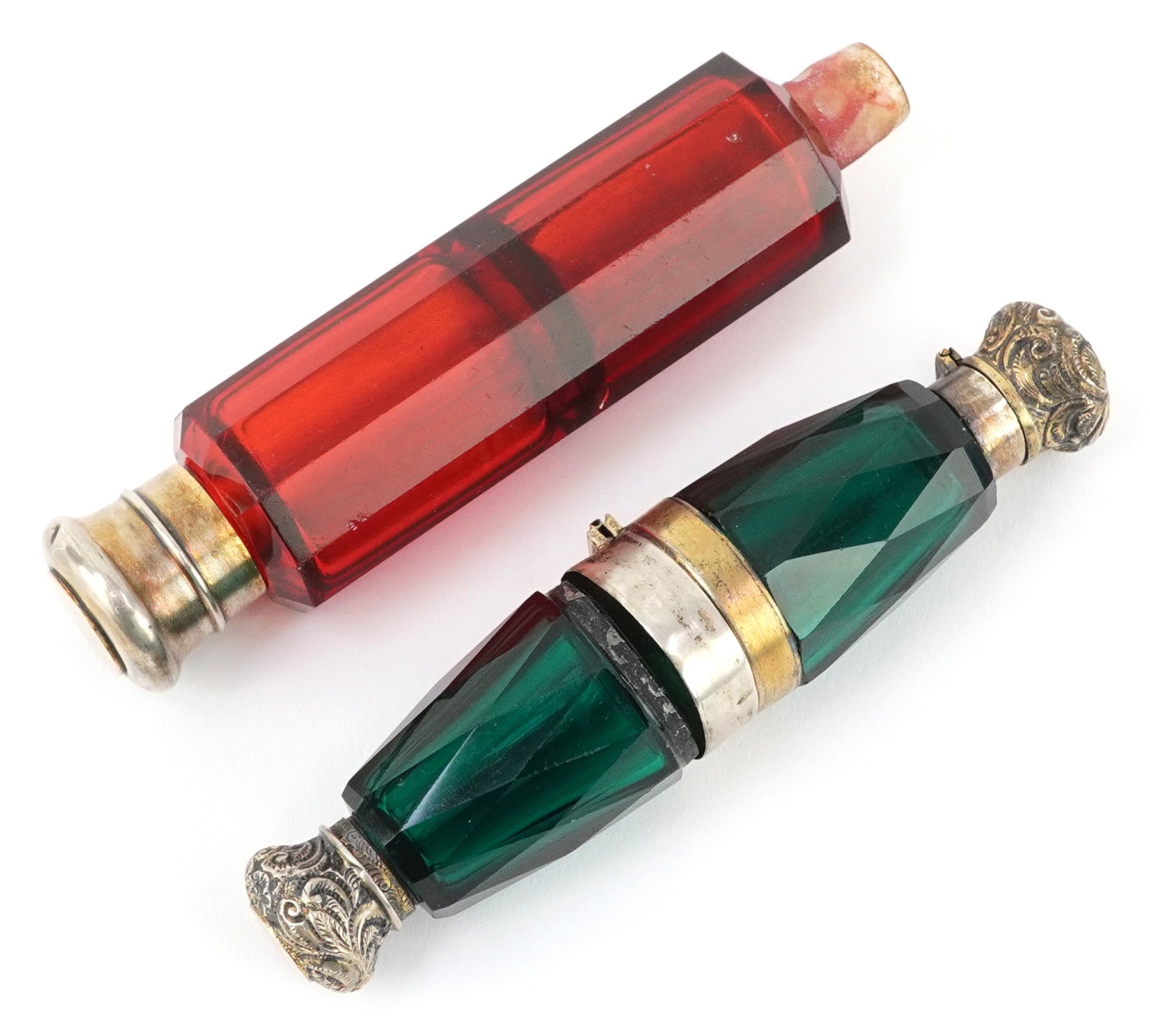 Two Victorian double ended facetted glass scent bottles with...