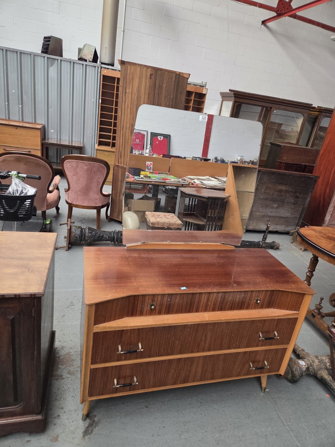 A mid century style single mirror dressing table