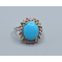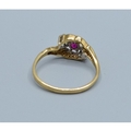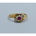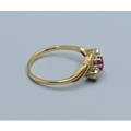 9ct gold ladies vintage 3 stone Ruby and Diamond ring in a sweep design hallmarked as Diamond size P