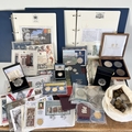 A large bulk lot of mixed world coins to include 30+ coin covers, approx. 5kg of world coins, commemorative crowns, a silver £1 coin and a folder of banknotes