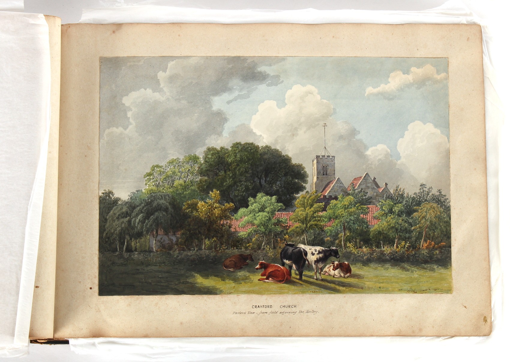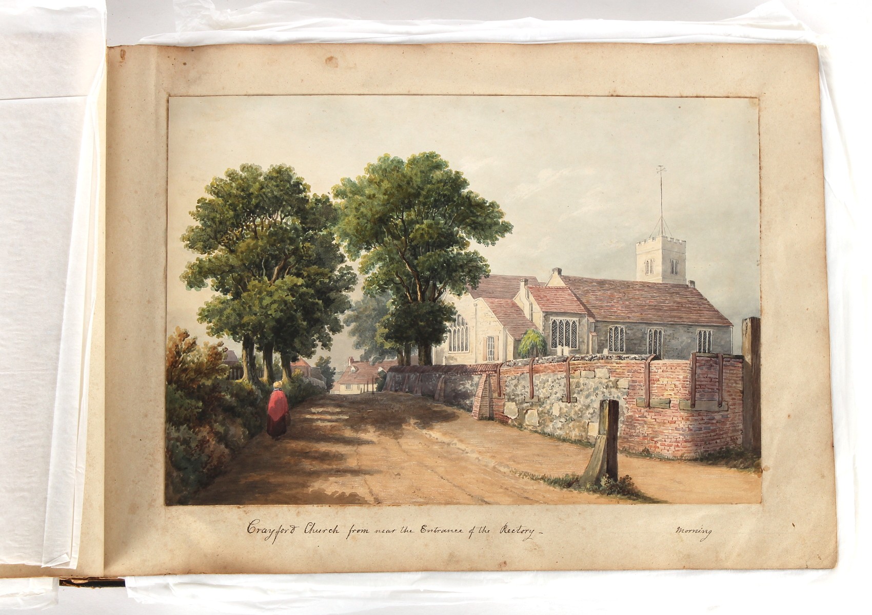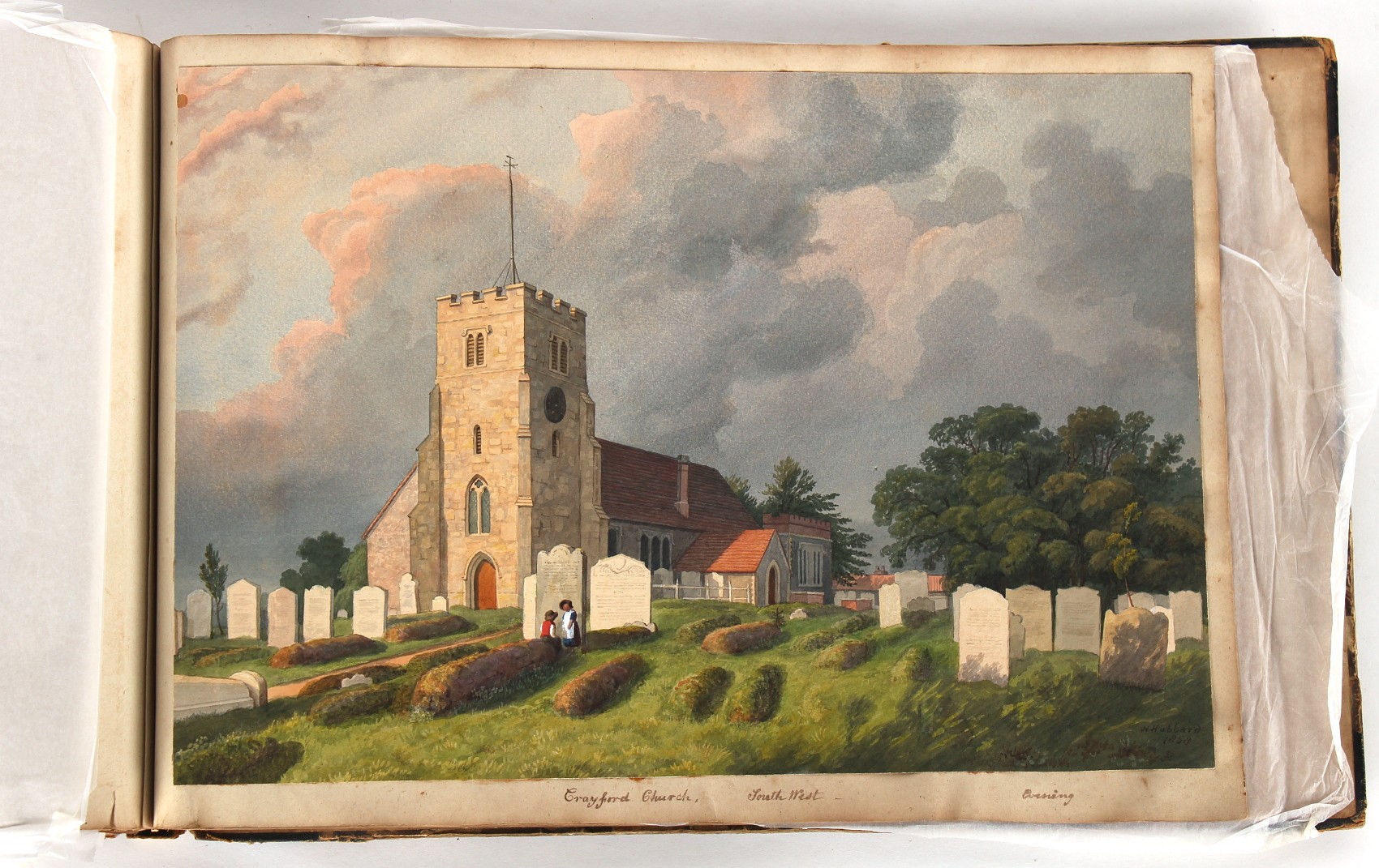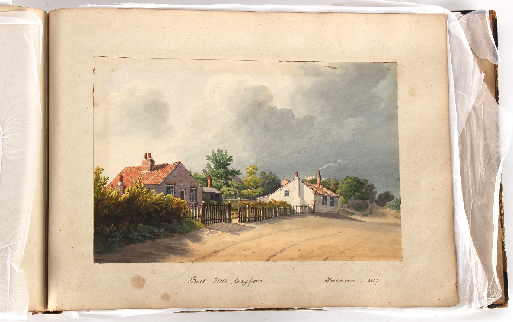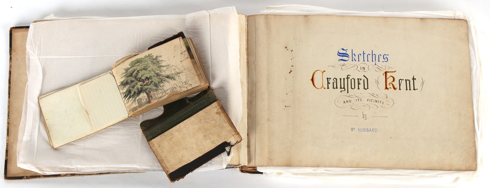 Property of a deceased estate - William Hubbard (19th century) - 'SKETCHES IN CRAYFORD, KENT, AND ITS VICINITY' - an album of thirty-five watercolours, each with manuscript title, each approximately 14 by 9.5ins. (35.5 by 24cms.), with later loose tissue guards, the album with presentation inscription on the front free endpaper to Mrs. Wm. Reader from the artist, in marbled boards; together with his sketch book of watercolours & drawings dating from 1849 to 1868, in tatty morocco covers (2). Provenance - Francis Woodland Reader (1864-1951), and thence by family descent.