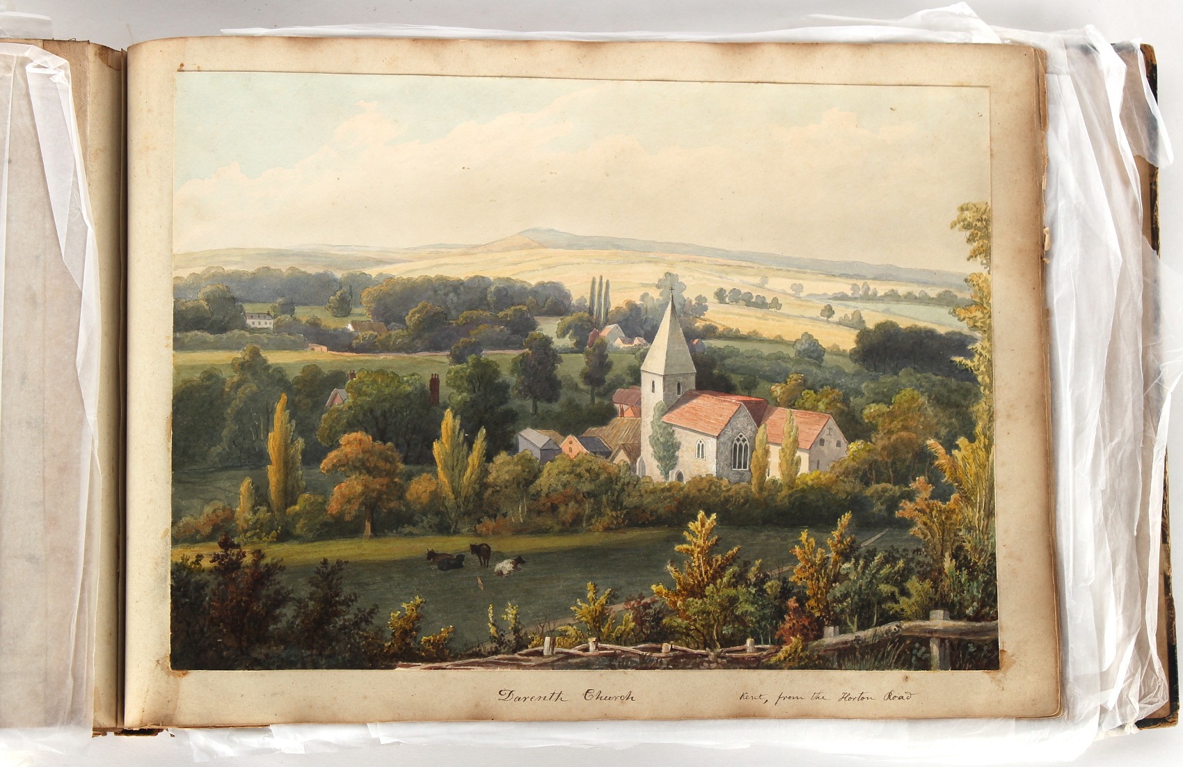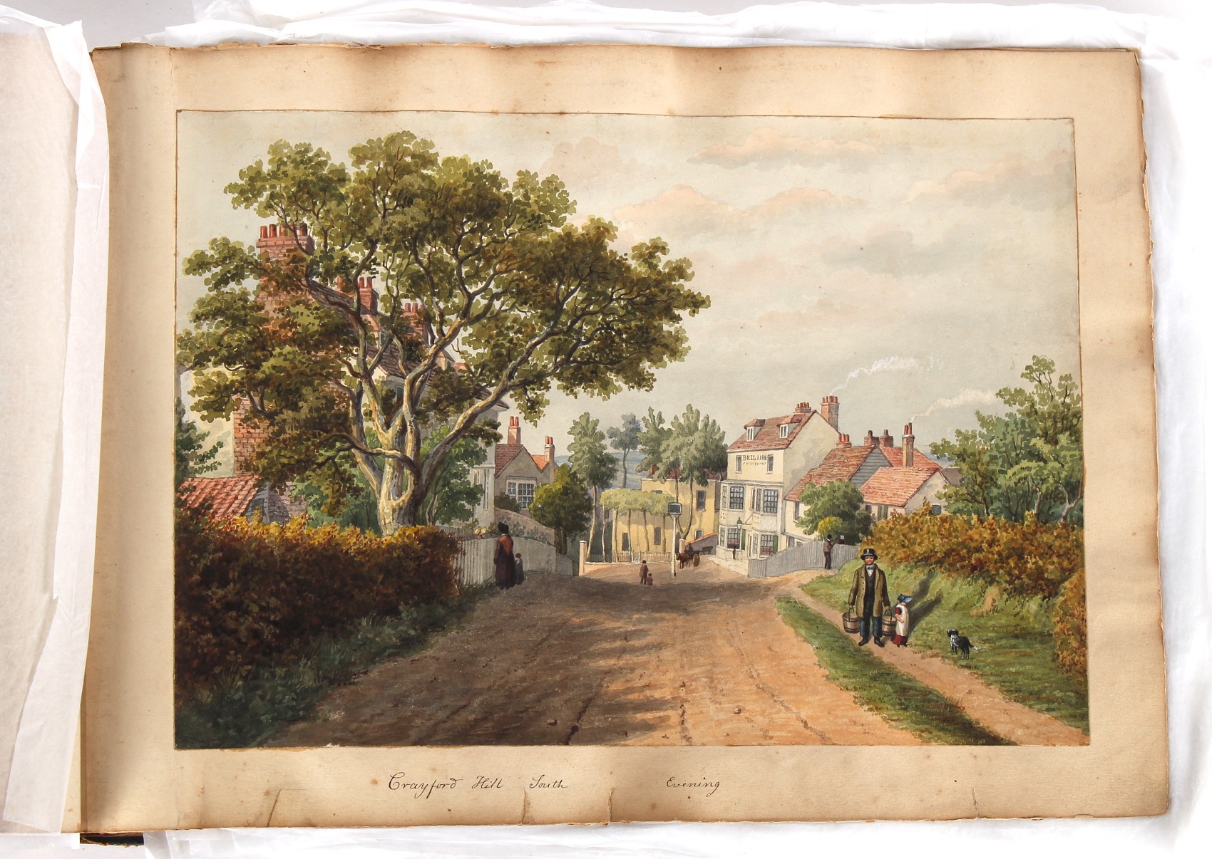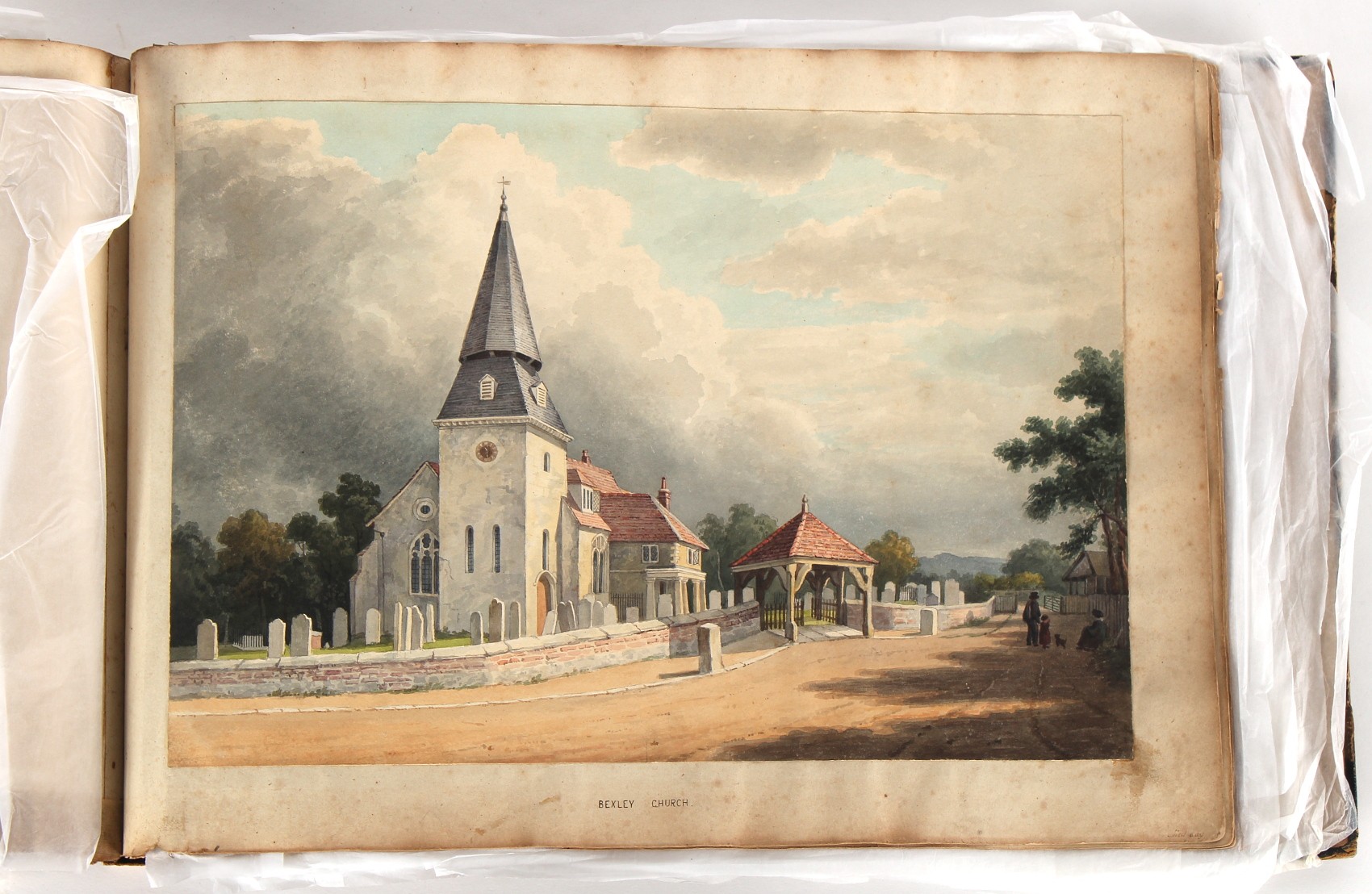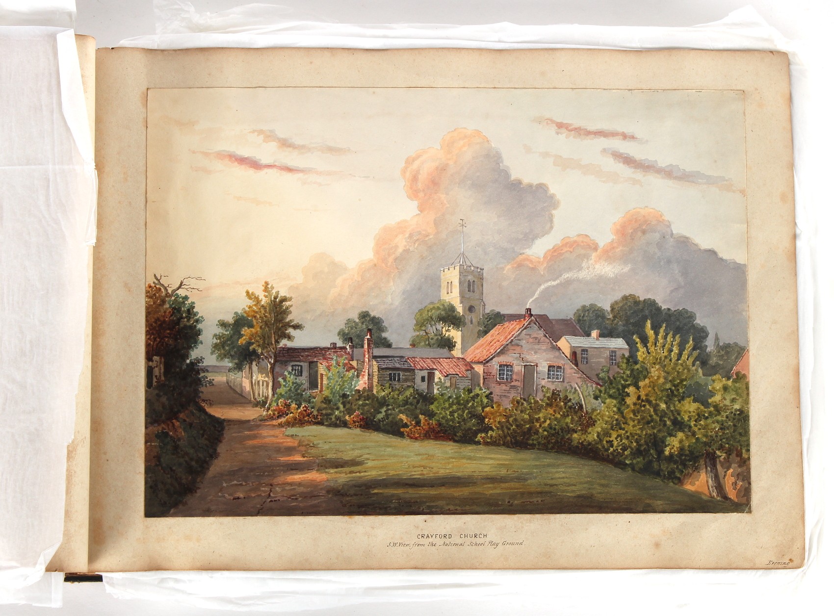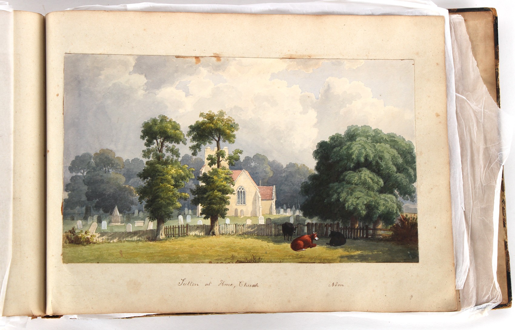 Property of a deceased estate - William Hubbard (19th century) - 'SKETCHES IN CRAYFORD, KENT, AND ITS VICINITY' - an album of thirty-five watercolours, each with manuscript title, each approximately 14 by 9.5ins. (35.5 by 24cms.), with later loose tissue guards, the album with presentation inscription on the front free endpaper to Mrs. Wm. Reader from the artist, in marbled boards; together with his sketch book of watercolours & drawings dating from 1849 to 1868, in tatty morocco covers (2). Provenance - Francis Woodland Reader (1864-1951), and thence by family descent.