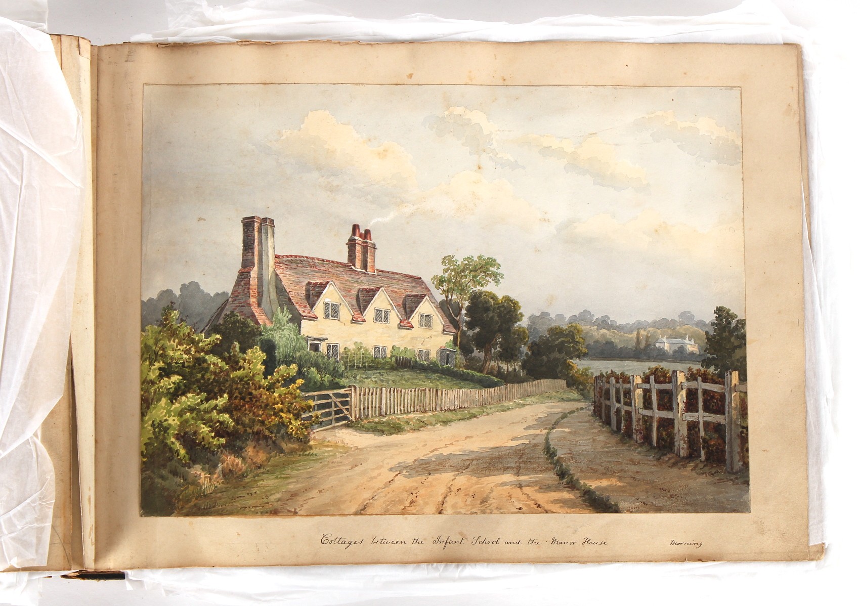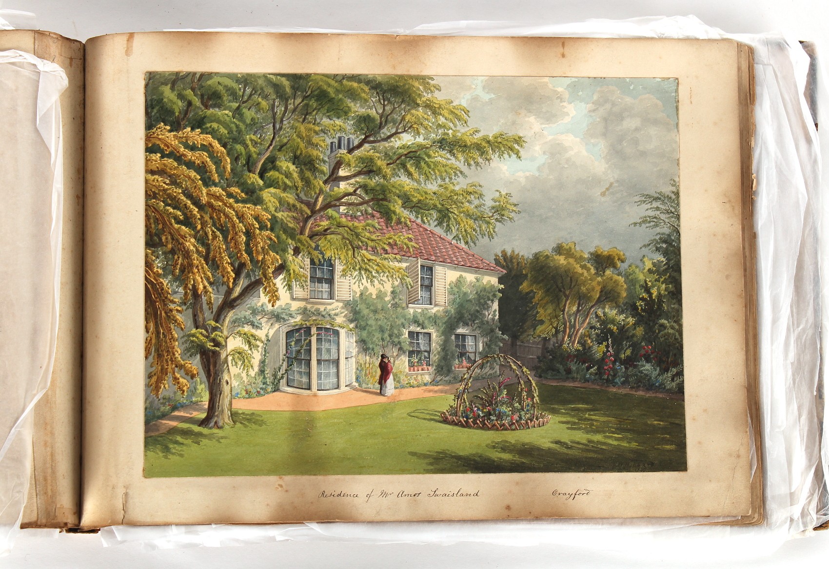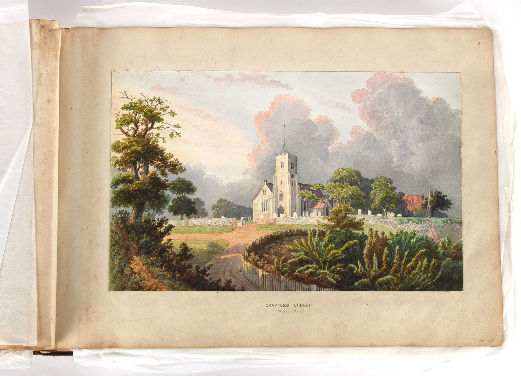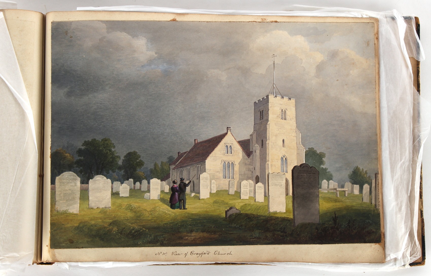 Property of a deceased estate - William Hubbard (19th century) - 'SKETCHES IN CRAYFORD, KENT, AND ITS VICINITY' - an album of thirty-five watercolours, each with manuscript title, each approximately 14 by 9.5ins. (35.5 by 24cms.), with later loose tissue guards, the album with presentation inscription on the front free endpaper to Mrs. Wm. Reader from the artist, in marbled boards; together with his sketch book of watercolours & drawings dating from 1849 to 1868, in tatty morocco covers (2). Provenance - Francis Woodland Reader (1864-1951), and thence by family descent.
