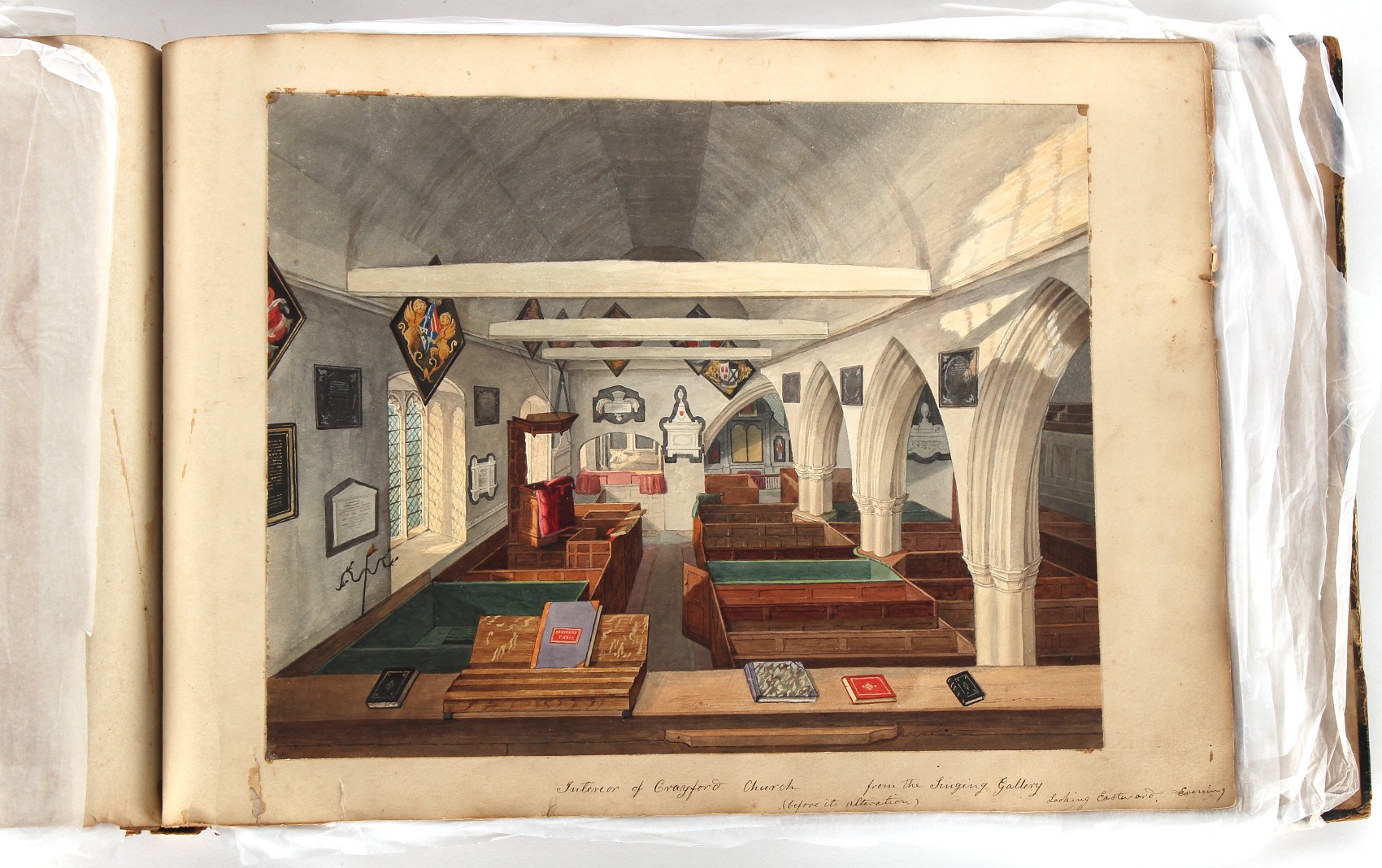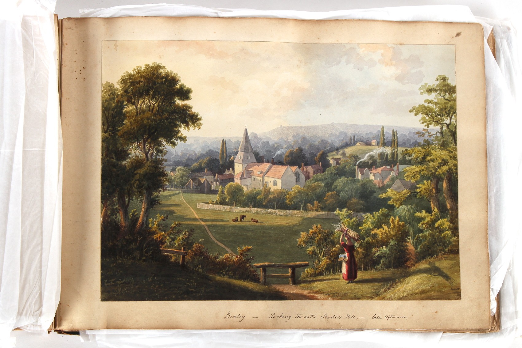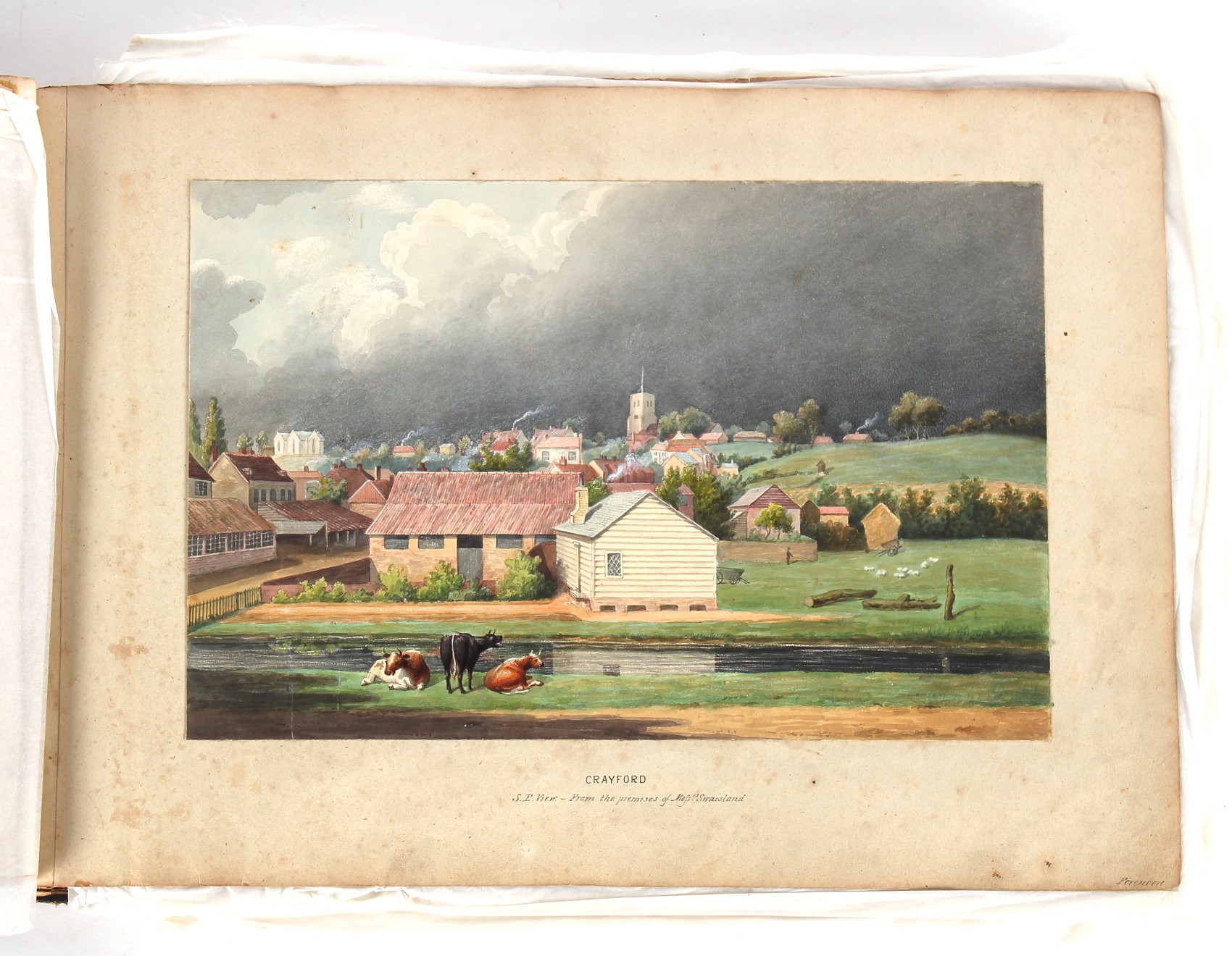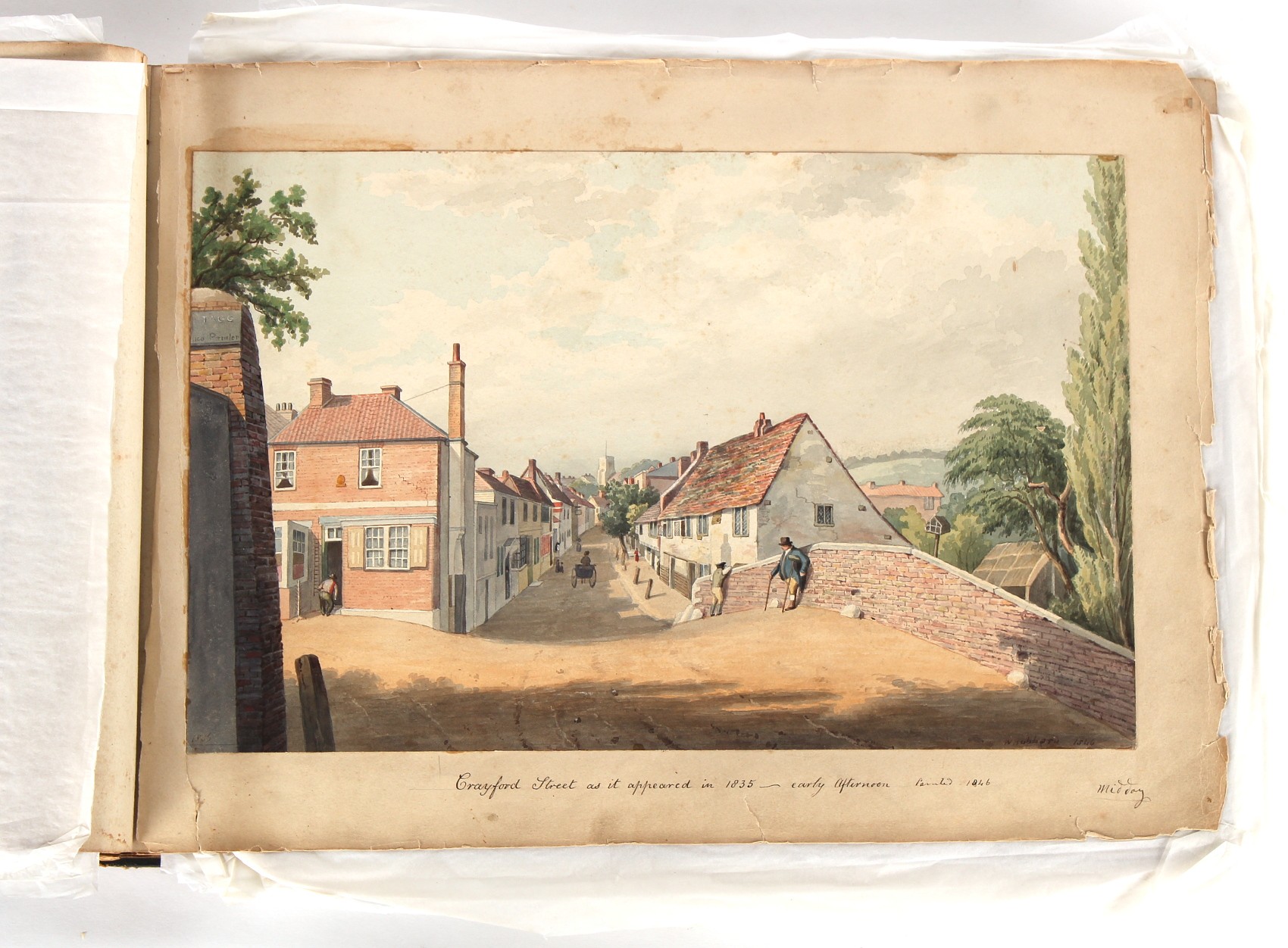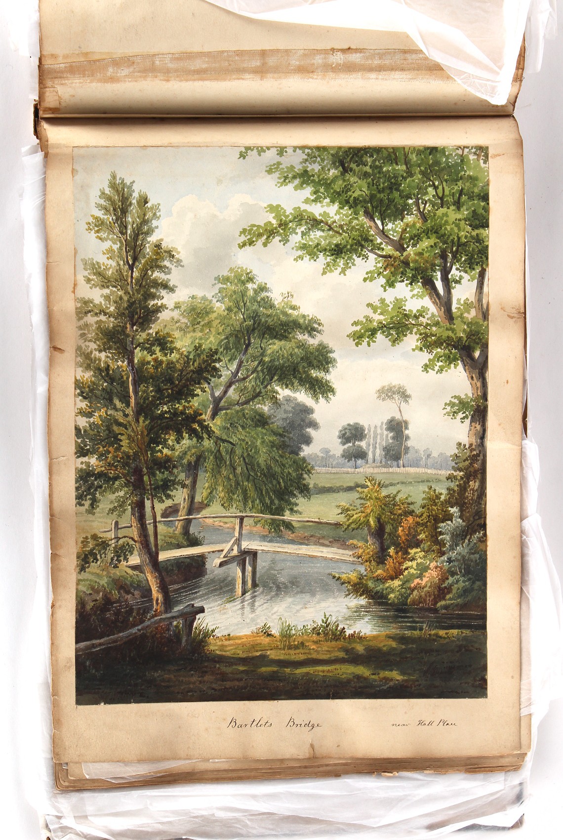 Property of a deceased estate - William Hubbard (19th century) - 'SKETCHES IN CRAYFORD, KENT, AND ITS VICINITY' - an album of thirty-five watercolours, each with manuscript title, each approximately 14 by 9.5ins. (35.5 by 24cms.), with later loose tissue guards, the album with presentation inscription on the front free endpaper to Mrs. Wm. Reader from the artist, in marbled boards; together with his sketch book of watercolours & drawings dating from 1849 to 1868, in tatty morocco covers (2). Provenance - Francis Woodland Reader (1864-1951), and thence by family descent.