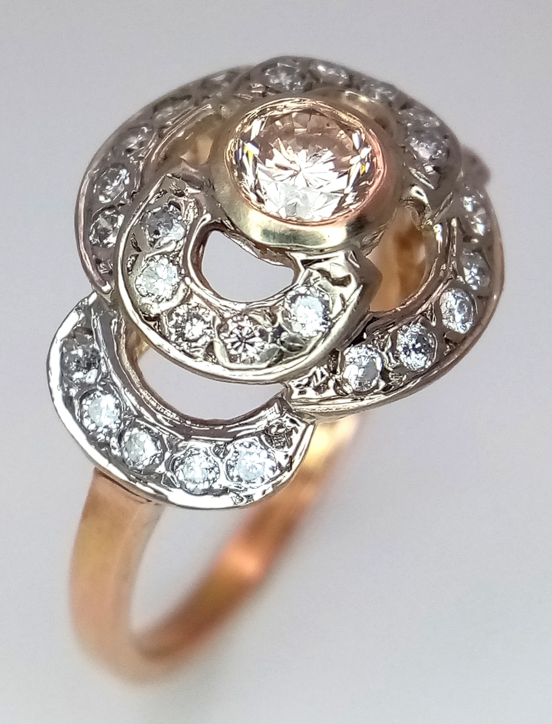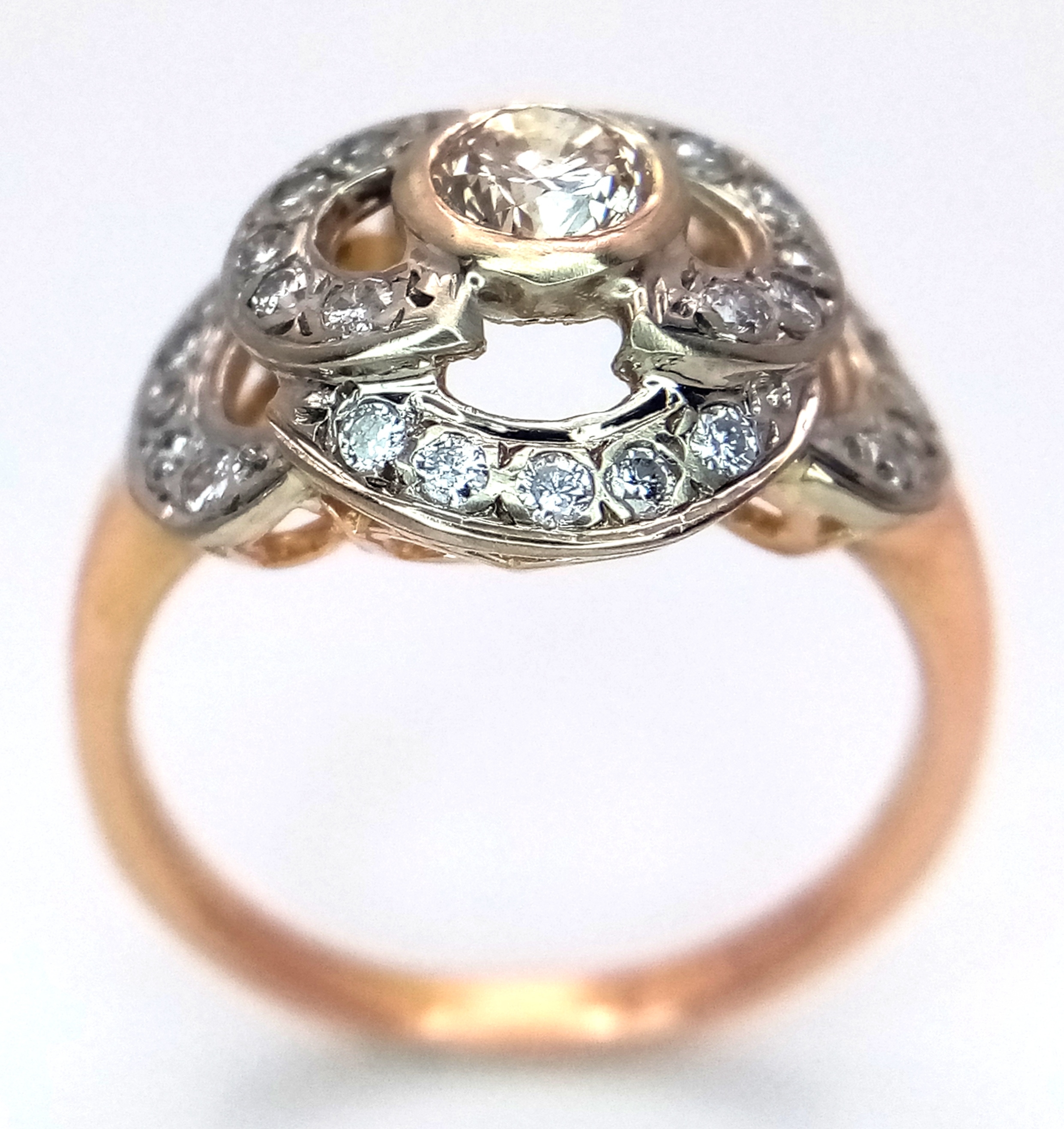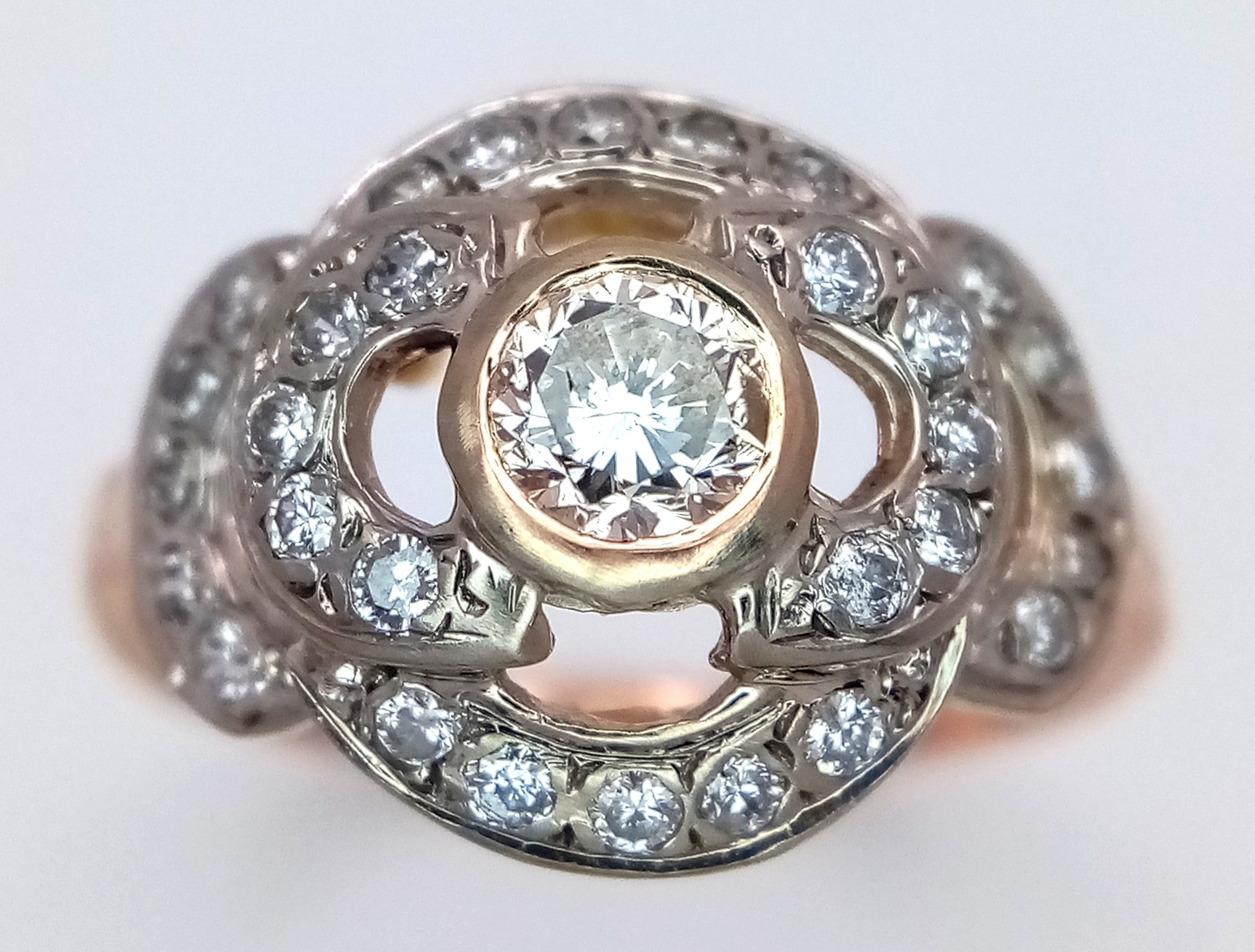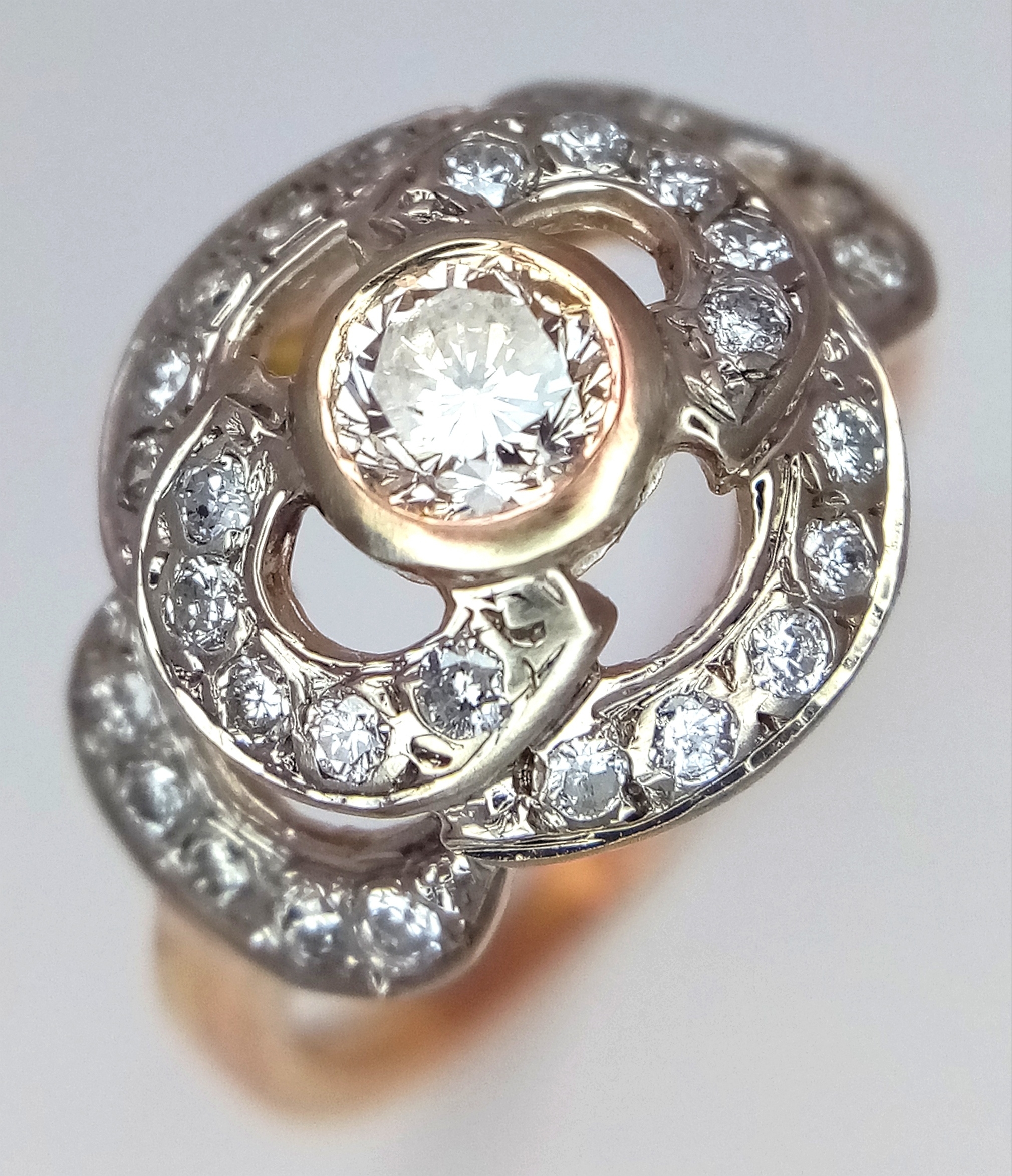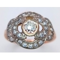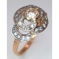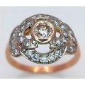 A Vintage 14K Yellow Gold Diamond Cluster Ring. Central 0.3ct round brilliant cut diamond with a thirty diamond surround. Size P. 4g total weight.