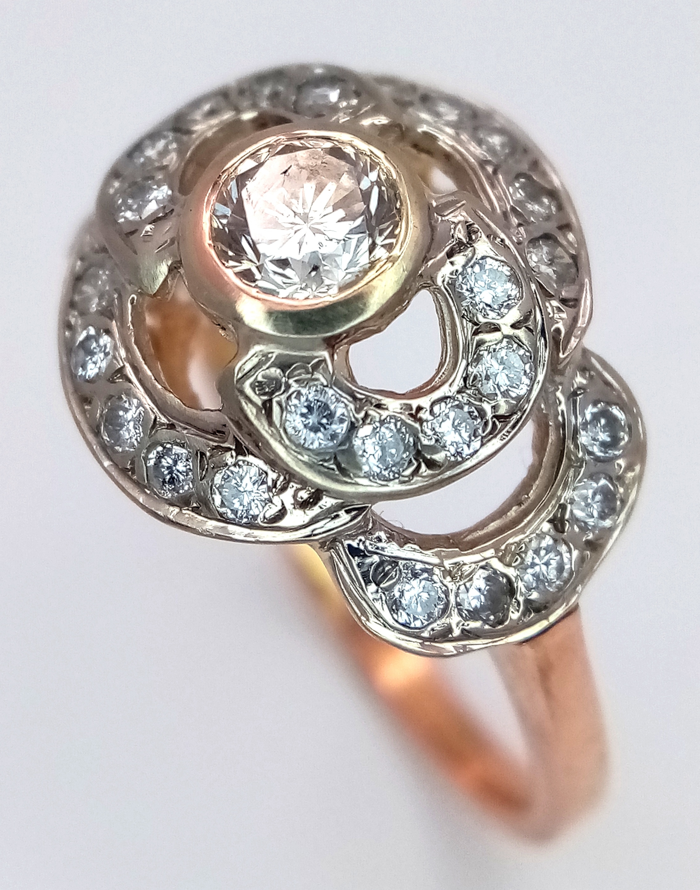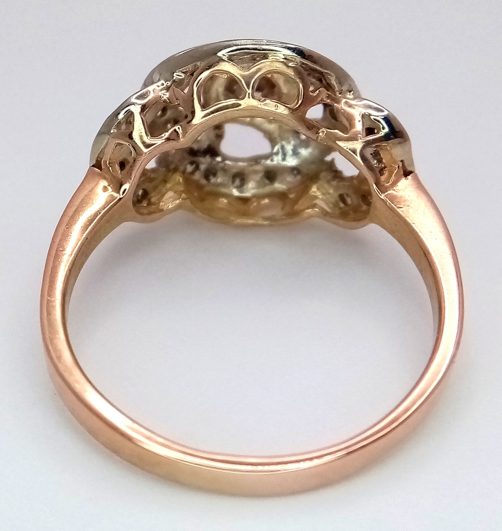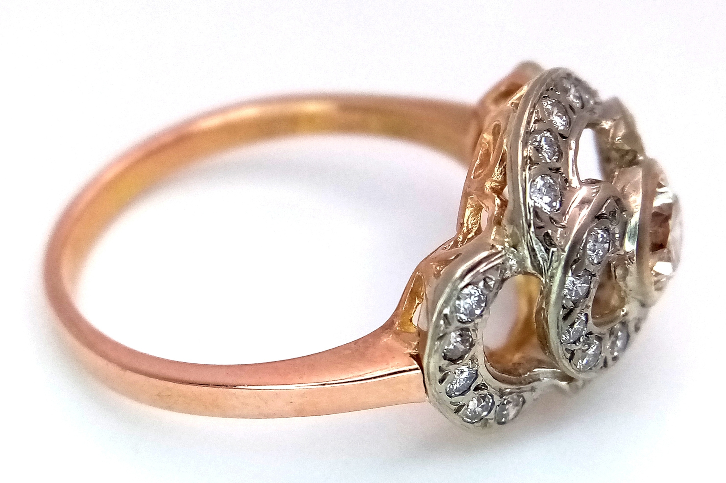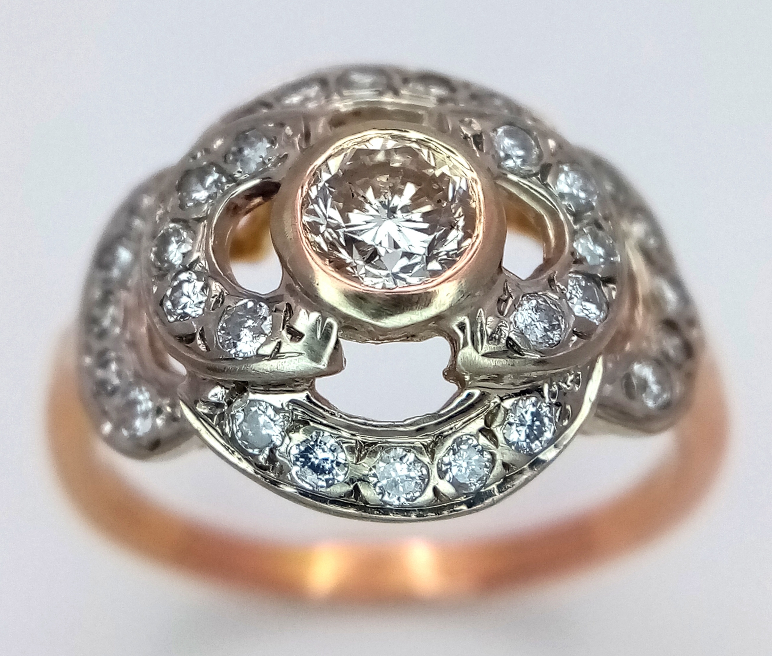 A Vintage 14K Yellow Gold Diamond Cluster Ring. Central 0.3ct round brilliant cut diamond with a thirty diamond surround. Size P. 4g total weight.