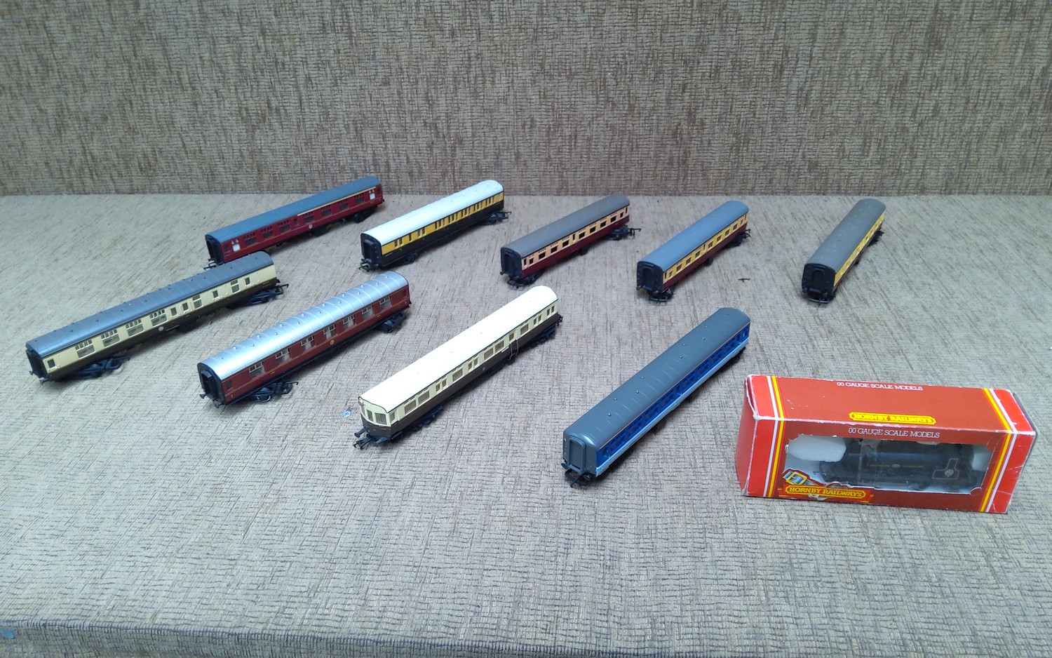 8 Hornby coaches and R.150 L&Y 0-4-0 ST Loco boxed.