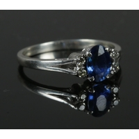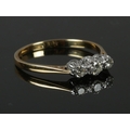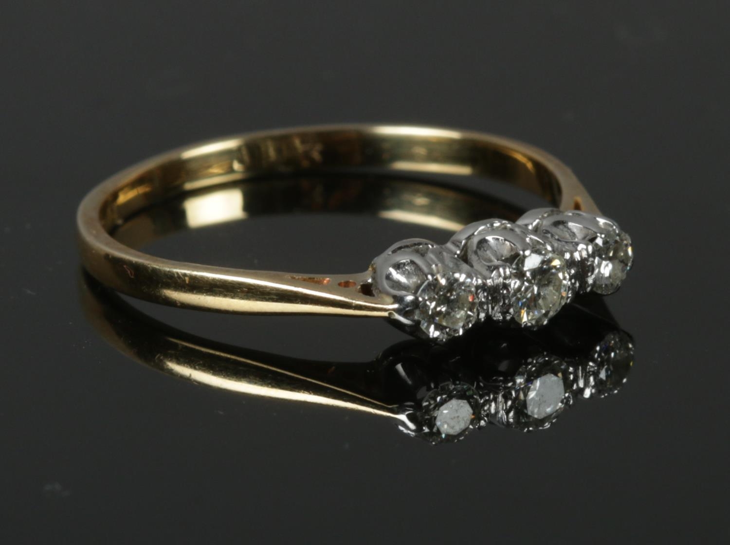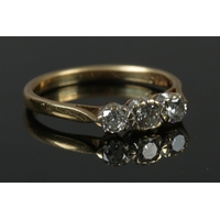 A vintage 18ct gold three stone diamond ring, size T. 2.74g.