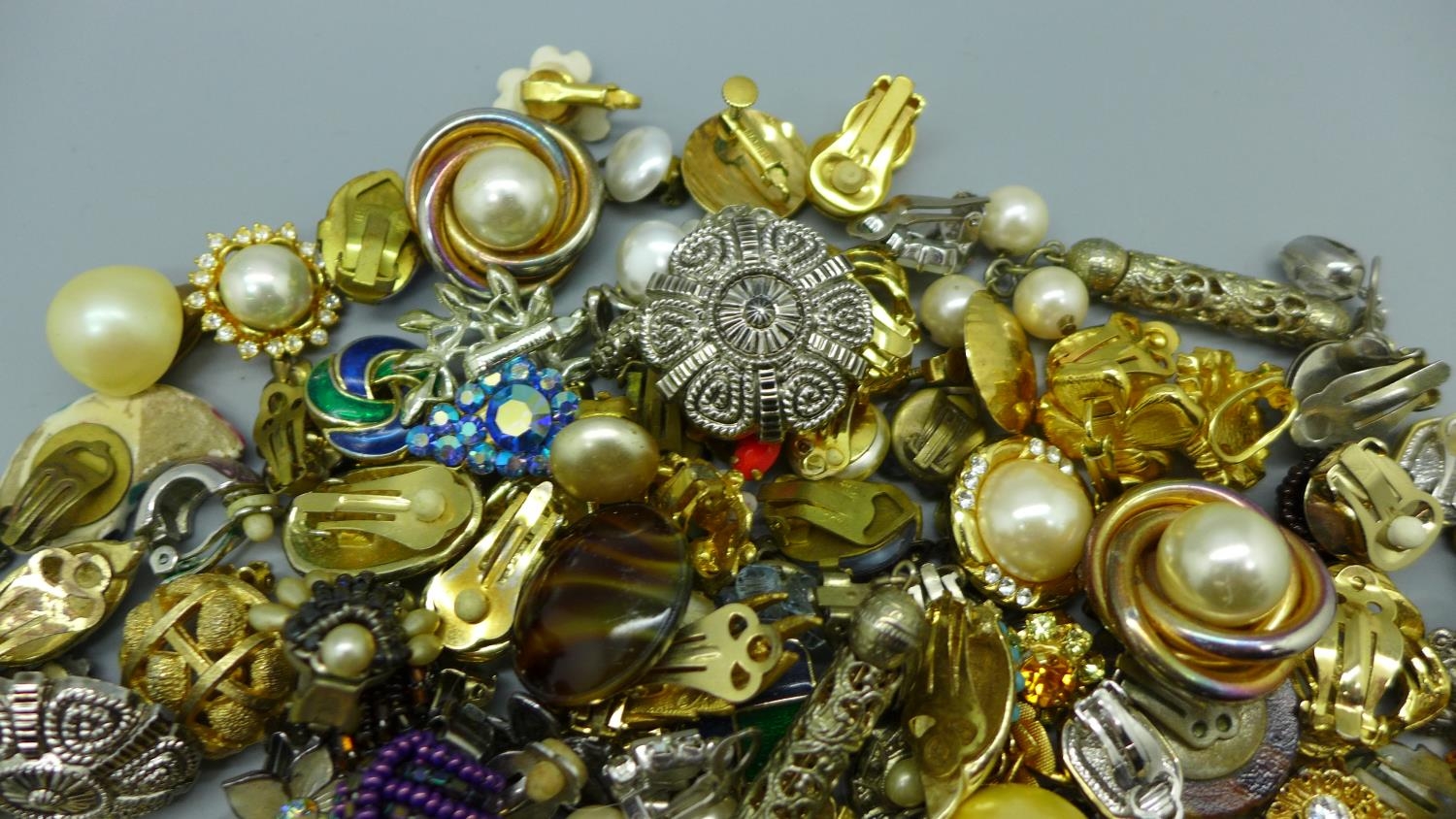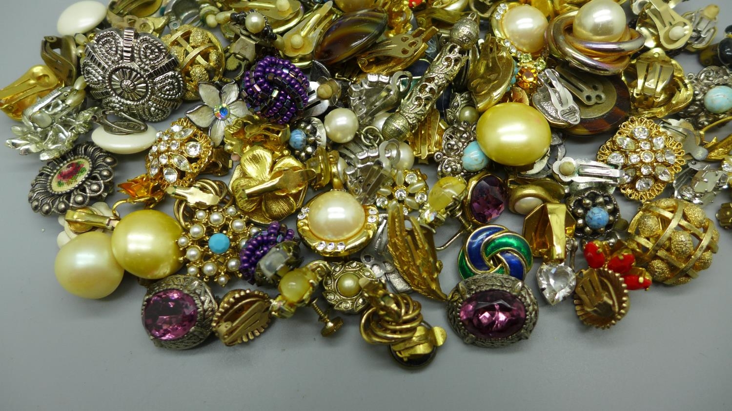 Over sixty pairs of vintage clip-on and screw-on earrings