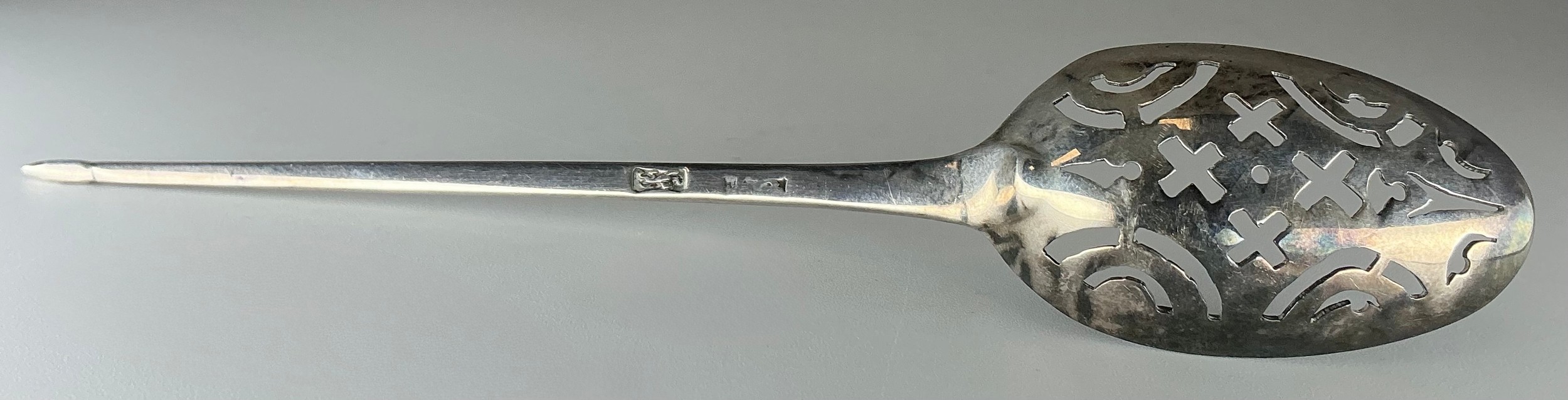 A George II silver mote spoon, 12cm long, c.1735